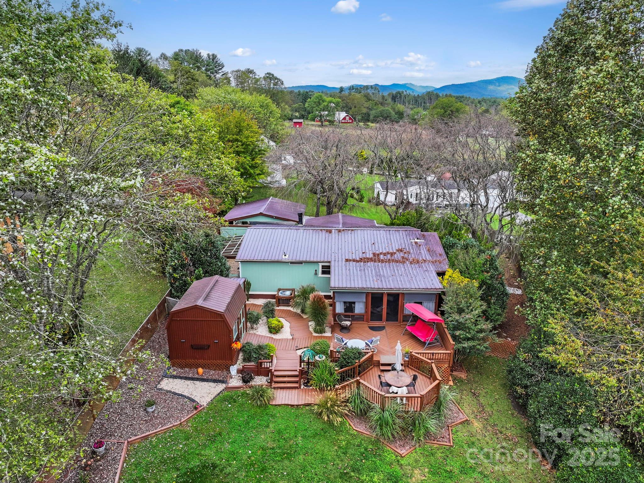 Welcome to this charming manufactured home nestled in the beautiful mountains of Fairview, NC. Enjoy serene mountain living with well-maintained landscaping and multiple outdoor spaces perfect for relaxation or entertaining. A spacious wrap-around porch greets you, while the screened-in sunroom and large back deck provide peaceful retreats with stunning views from both the front and back. The fenced-in backyard is ideal for pets or gardening, complete with a convenient storage building. Inside, you’ll find an updated kitchen and bathrooms, offering modern comfort while maintaining a cozy mountain feel. This home blends comfort, functionality, and breathtaking surroundings, making it a true retreat in the heart of Fairview.