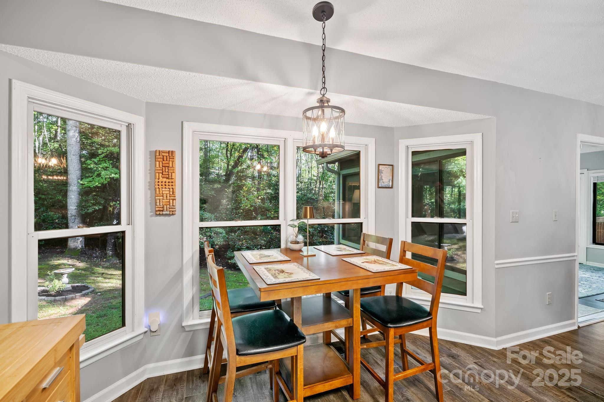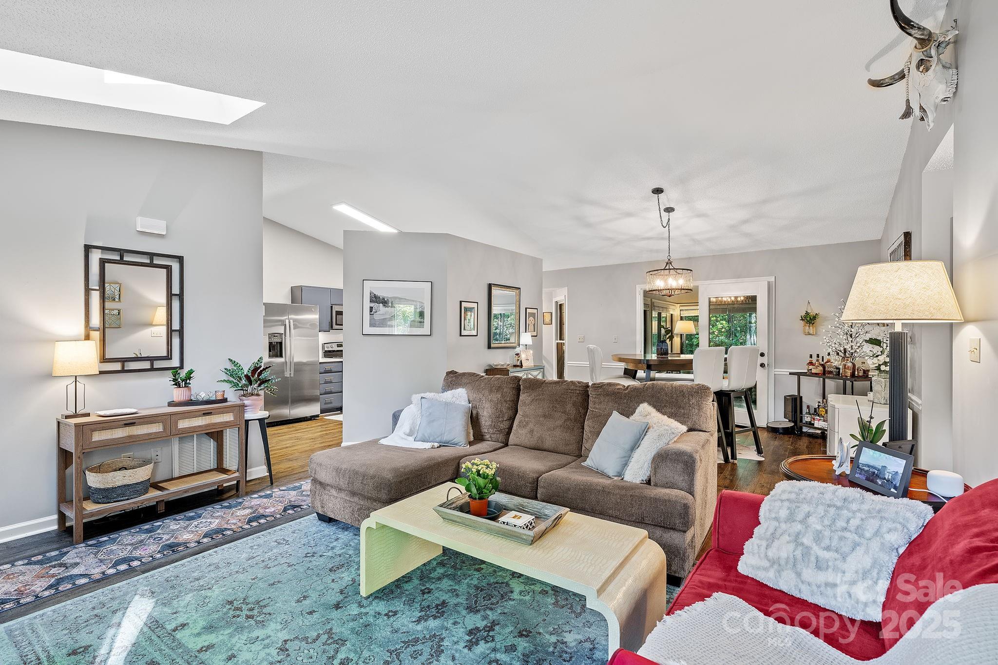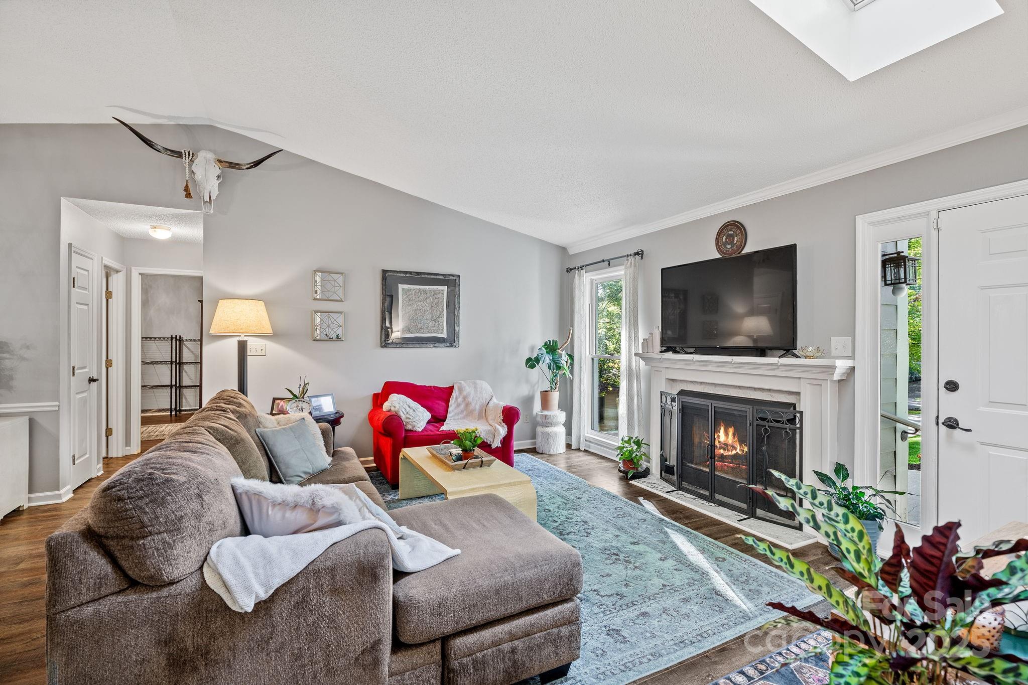 This immaculately maintained home enjoys an exceptional setting in The Village at Avery’s Creek, where tree-lined streets, natural beauty, and a welcoming spirit define the community. From the moment you arrive, the spacious, landscaped front yard and mature trees create a sense of calm and distinction. Inside, vaulted ceilings and natural light enhance the open floor plan. A cozy fireplace anchors the living room, while the sunroom provides a bright retreat to enjoy the seasons. The kitchen combines style and function with stainless steel appliances and a generous workspace, while the split-bedroom layout ensures both comfort and privacy. Every detail reflects the care this home has received, including a fully encapsulated crawl space. The rear of the property opens to wooded privacy, with an outdoor firepit that makes the space as inviting at night as it is by day Beyond the home, quiet streets and a picturesque community pond add to the everyday charm, while South Asheville’s shopping, dining, and the trails of Bent Creek and the Blue Ridge Parkway are just minutes away. Here, the setting is beautiful, the home is cared for, and the lifestyle is exactly what you’ve been waiting for.