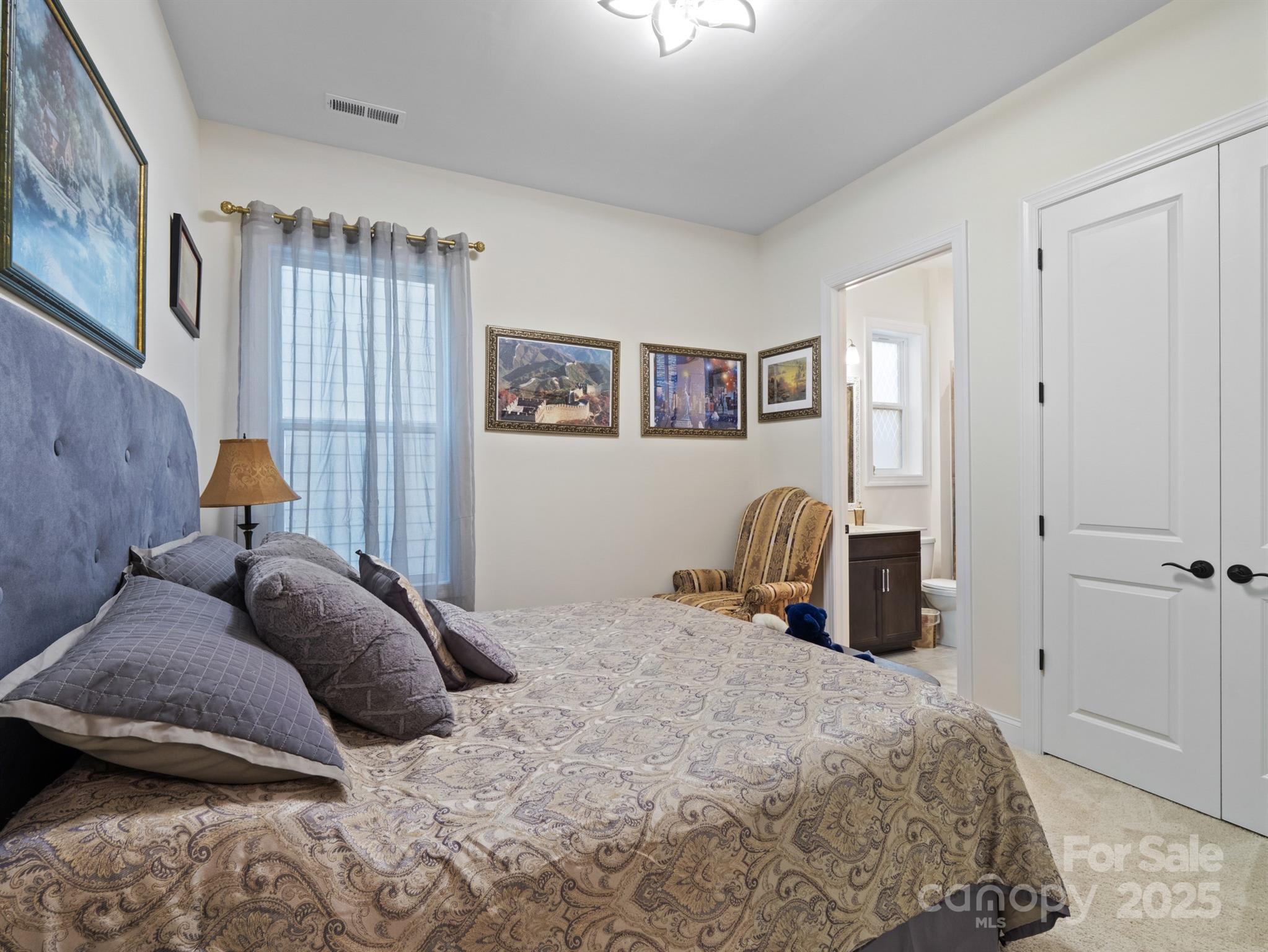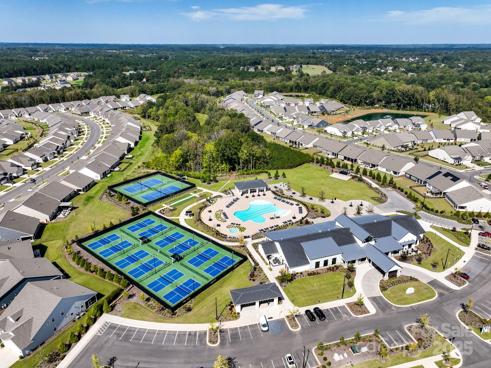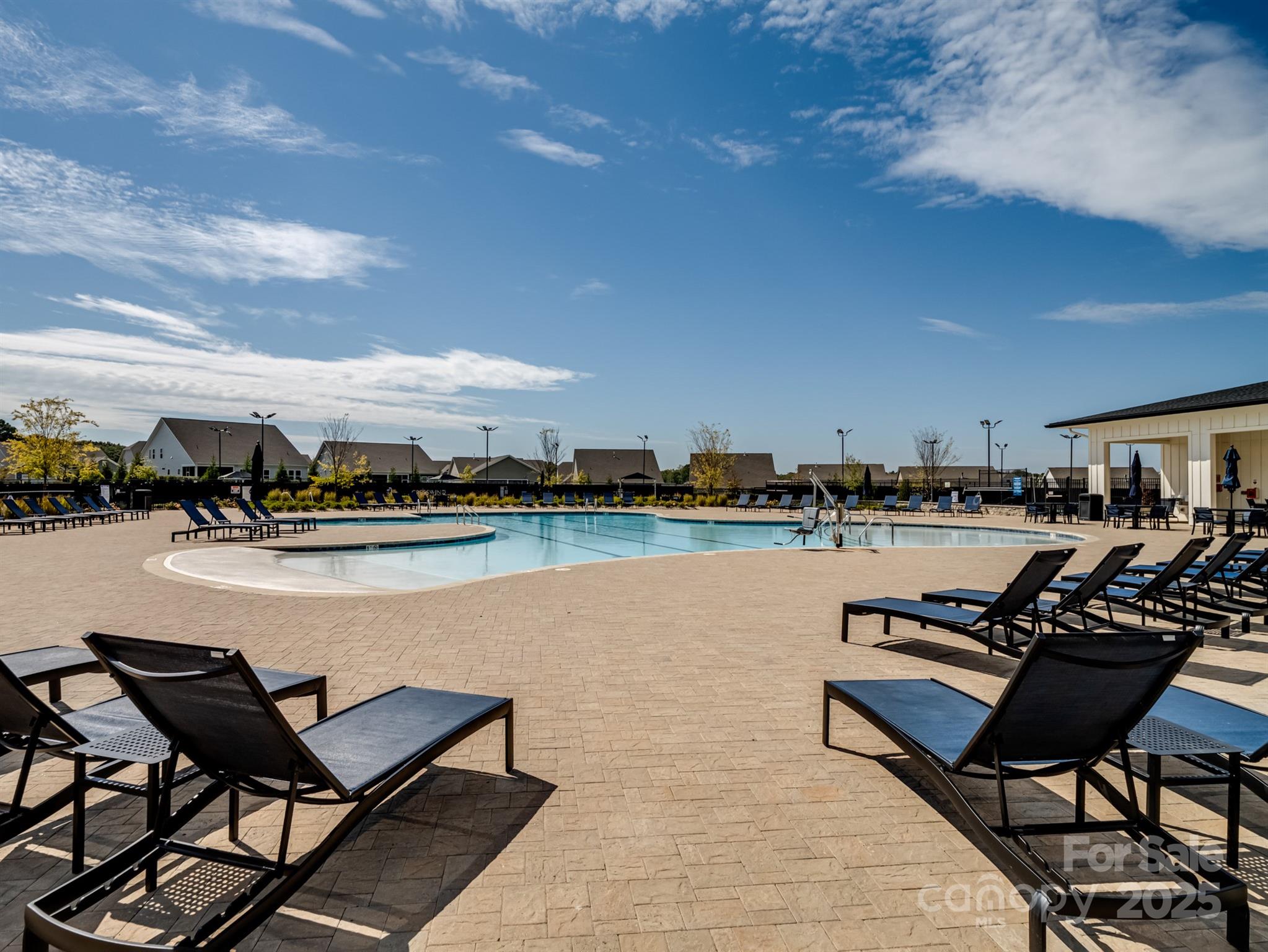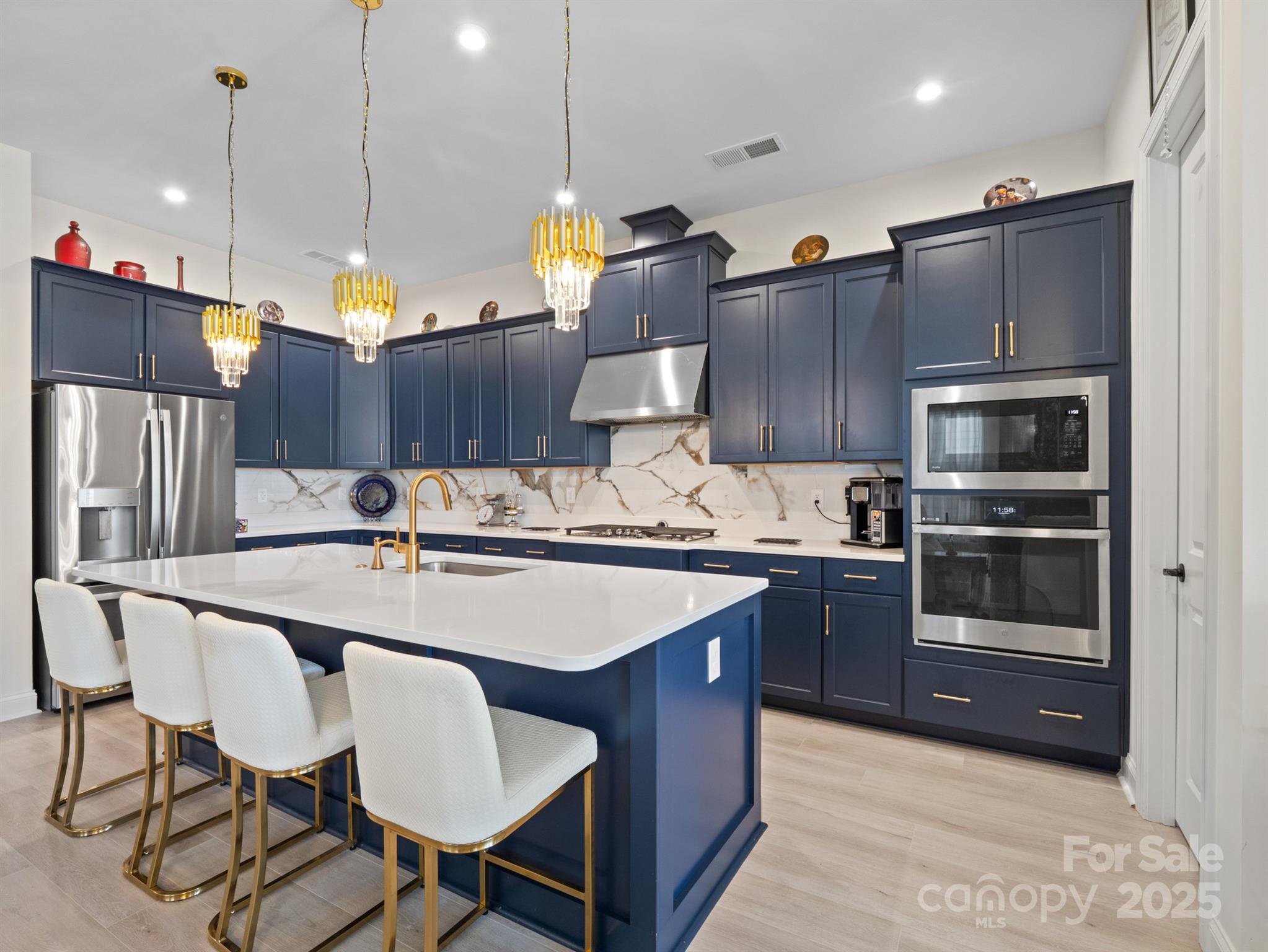 Beautiful and meticulously maintained, this stunning home offers designer finishes, spacious living areas, and access to resort-style amenities. A private office with elegant French doors provides the perfect space for working from home or quiet study. The chef’s kitchen is a true highlight, featuring a massive island with a one-bowl sink, 5-burner gas cooktop, wall oven, walk-in pantry, quartz countertops, and a porcelain marble backsplash—ideal for both everyday living and entertaining. Natural light pours into the sunroom, which extends off the living room to create a bright and airy space perfect for lounging or hosting guests. The primary bedroom suite is a peaceful retreat with dual vanities, a large tiled shower, and a custom closet organizer designed for optimal storage and convenience. Secondary bedrooms are spacious and thoughtfully designed. Bedroom 2 includes its own private bathroom, making it perfect for guests or as a mother-in-law suite. Bedroom 3 offers a generous walk-in closet, providing plenty of storage space. Throughout the home, stylish design elements such as tray ceiling accents, updated chandeliers, and 7.5 -inch luxury vinyl plank (LVP) flooring elevate the overall aesthetic. Large-format tile in wet areas adds both beauty and durability. The garage is equally impressive, featuring gleaming epoxy flooring and a utility sink for easy clean-up. This home is conveniently located near Village Commons, offering quick access to shopping, dining, and everyday essentials. As part of a vibrant community, residents can enjoy a full suite of resort-style amenities including a clubhouse, art studio, swimming pool, pickleball, bocce ball, and tennis courts. From its functional layout and thoughtful upgrades to its unbeatable location and lifestyle offerings, this home truly has it all. Don’t miss the opportunity to make it yours!