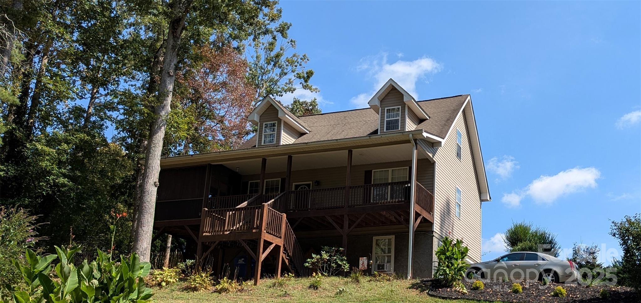 Beautiful Mountain Retreat-. Discover the perfect balance of modern comfort and mountain living in this rare find nestled within a friendly private community just 15 minutes from downtown Asheville. Set on almost an acre, this smart home offers room to breathe and space to gather, with a fully fenced in back yard and a storage building for your mower and other yard equipment. A welcoming front porch, private back deck suitable for a hot tub and screened in deck with TV- perfect for enjoying crisp mountain evenings with friends and family. Inside an open floor plan filled with natural light creates a warm and inviting atmosphere. The kitchen features new appliances within the last couple of years, including, a smart refrigerator, and a smart oven/range, along with a brand new garbage disposal. The HVAC system is also brand new, ensuring year round comfort. The master suite is on the main level with an ensuite bath and walk in closet. A convenient half bath with dual access from the laundry room and main living area. The second floor has two additional bedrooms with a full bath and walk in linen closet. The lower level offers an bonus room and an addition room that can be a bedroom or office with a full bath. - Ideal for a home business, guests, or recreation. Additional finished flex room off the garage. Smart garage door, smart thermostat and smart outdoor lights complete to complete this inviting modern mountain retreat. Schedule a showing today.