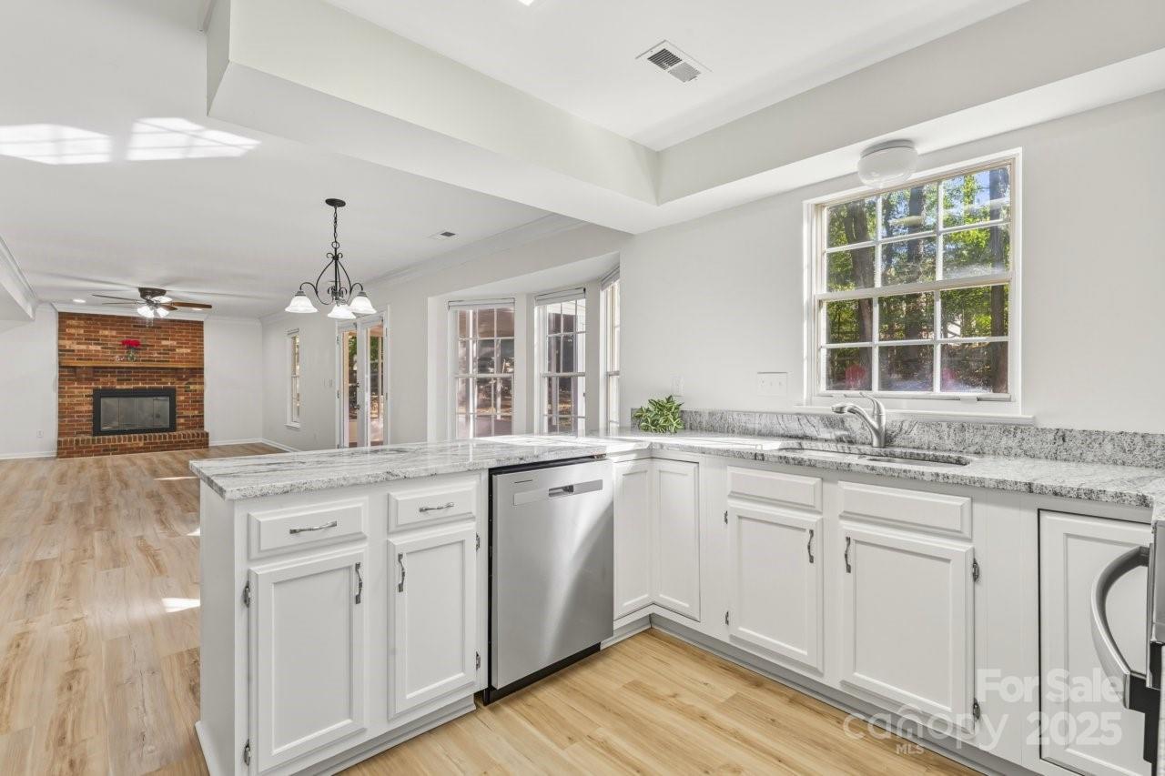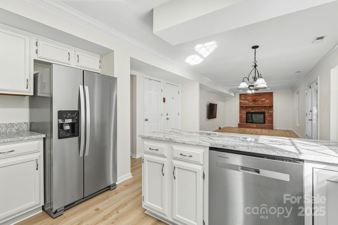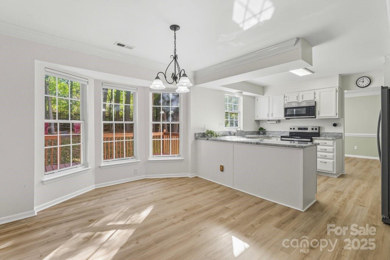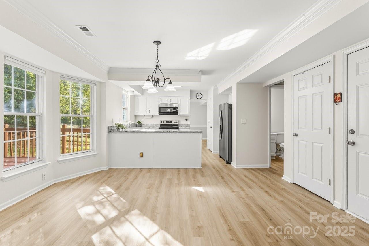 Fantastic 2 story home located in the desirable Winchester subdivision, it is KEY READY! It has been well maintained. It has a lovely screened in porch, 4 bedrooms and 2.5 baths with new LVP flooring and no carpet on the entire main floor. The kitchen has new granite counter tops and stainless steel appliances with white cabinets. The floor plan offers a living room, a dining room and a large family room with a gas logs fireplace. There is a screened-in porch with a beautiful new wood ceiling. It is spacious and perfect to enjoy a warm cup of coffee in the mornings. A wooded deck is right next to it and it's perfect for entertaining. Partially fenced backyard. 2-car garage attached. Roof was installed in 2024. All new carpet on the upper floor. Refrigerator, washer, dryer to convey. Located minutes from Uptown Charlotte, UNCC, Hwy I-85, I-77 & 485, walking distance to stores, gym, shops & restaurants. Winchester offers a super fun common area w/ large outdoor pool (with diving board), tennis and pickleball courts, playground & access to the relaxing Clark's Greenway. Take your morning walks in the greenway and listening to the peaceful sounds of the creek. Super relaxing! You will fall in love with this house and its surroundings.