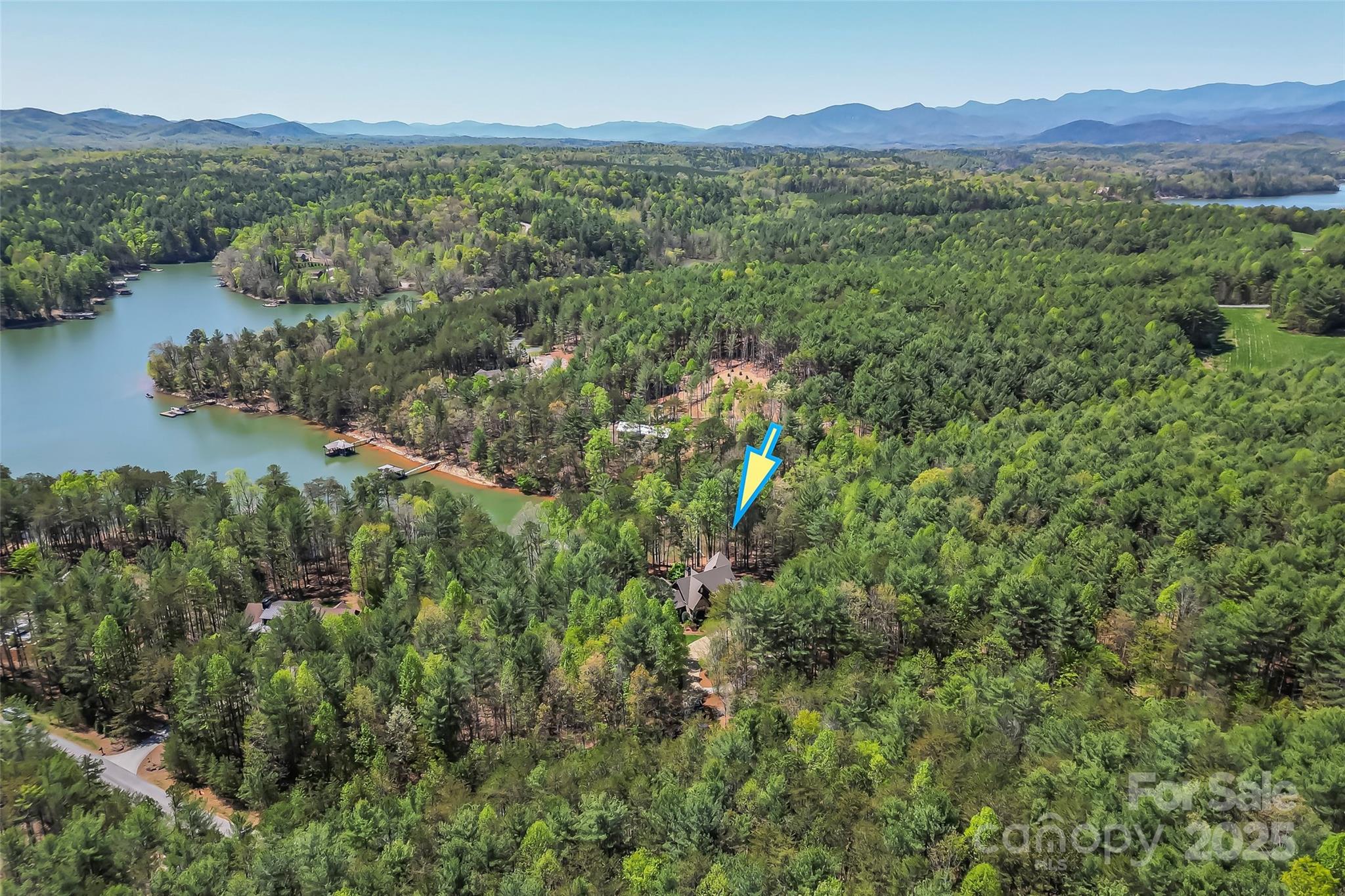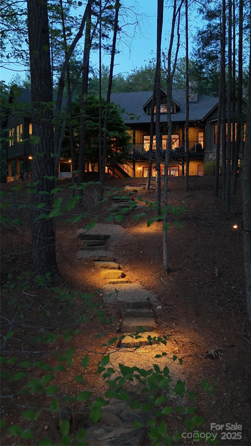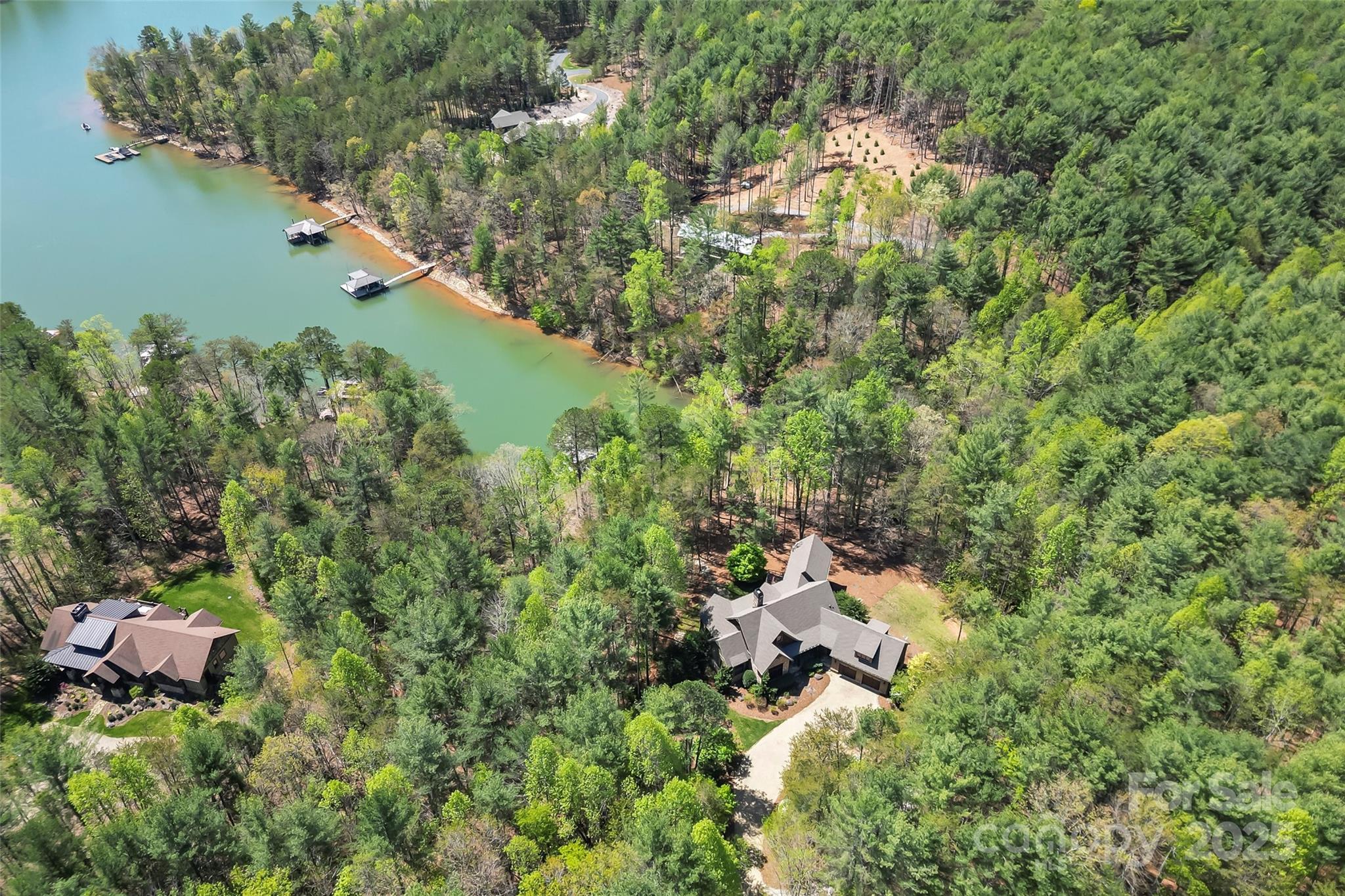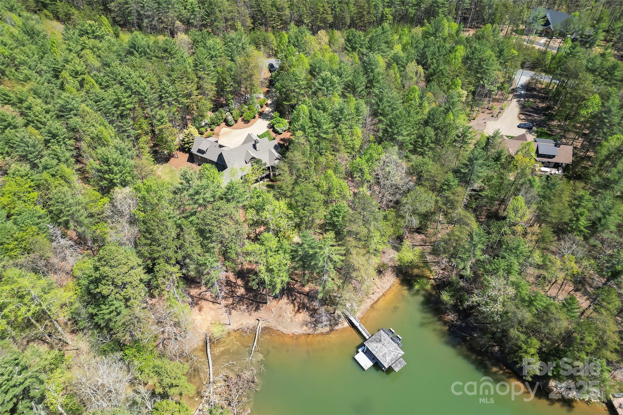Experience waterfront living at its finest in this exquisite 4-bedroom waterfront home nestled on over three acres with water views. The gourmet kitchen features a spacious island perfect for entertaining, opening to a sun-drenched waterfront sunroom with fireplace. Each ensuite bedroom offers a private sanctuary, complemented by a charming bunk room for additional guests. Entertaining is effortless with a full bar area with fireplace & separate video entertainment room. Covered & uncovered decks extend your living space outdoors, capturing the lake vistas. The gentle slope leads to a covered dock and sundeck offering immediate access to countless water adventures. Evenings are magical on the waterfront patio featuring a luxurious hot tub, outdoor television & fireplace. Two car garage and unfinished storage areas. This rare offering combines privacy, luxury, and the ultimate waterfront lifestyle with room to breathe and space to play. Camp Lake James is just a short boat ride away!