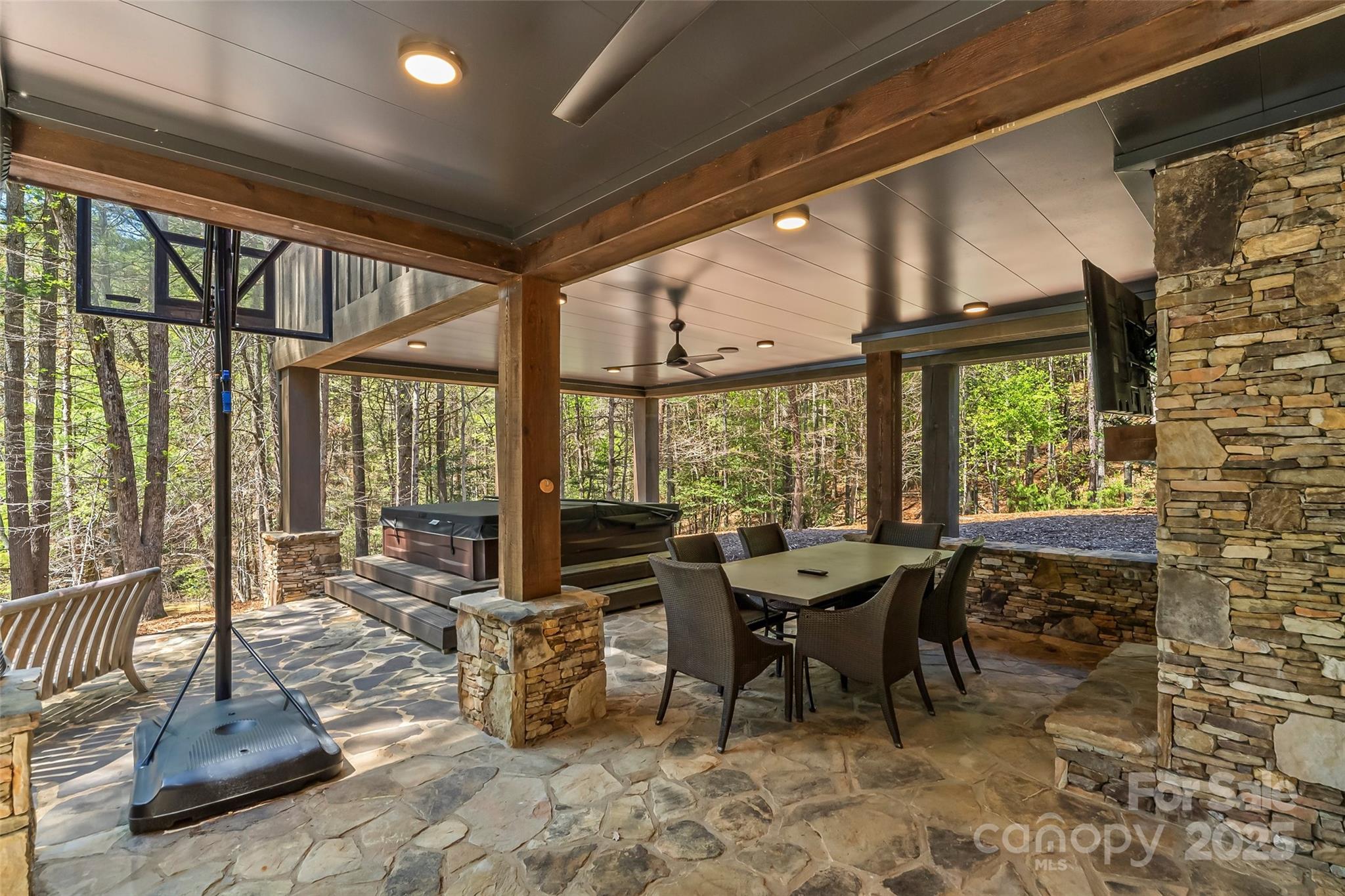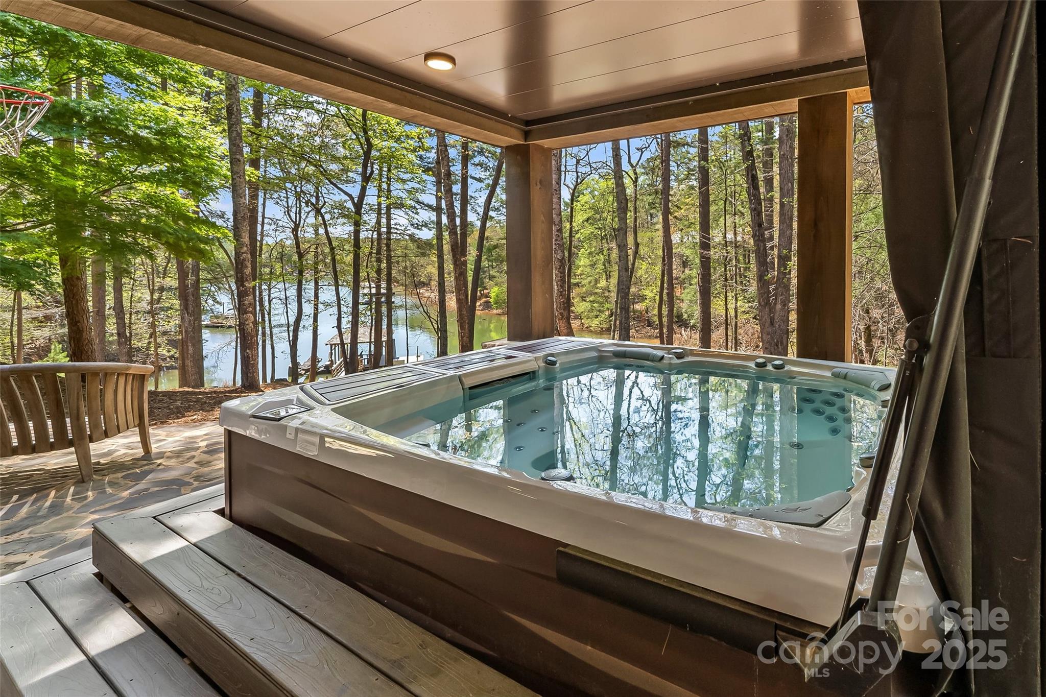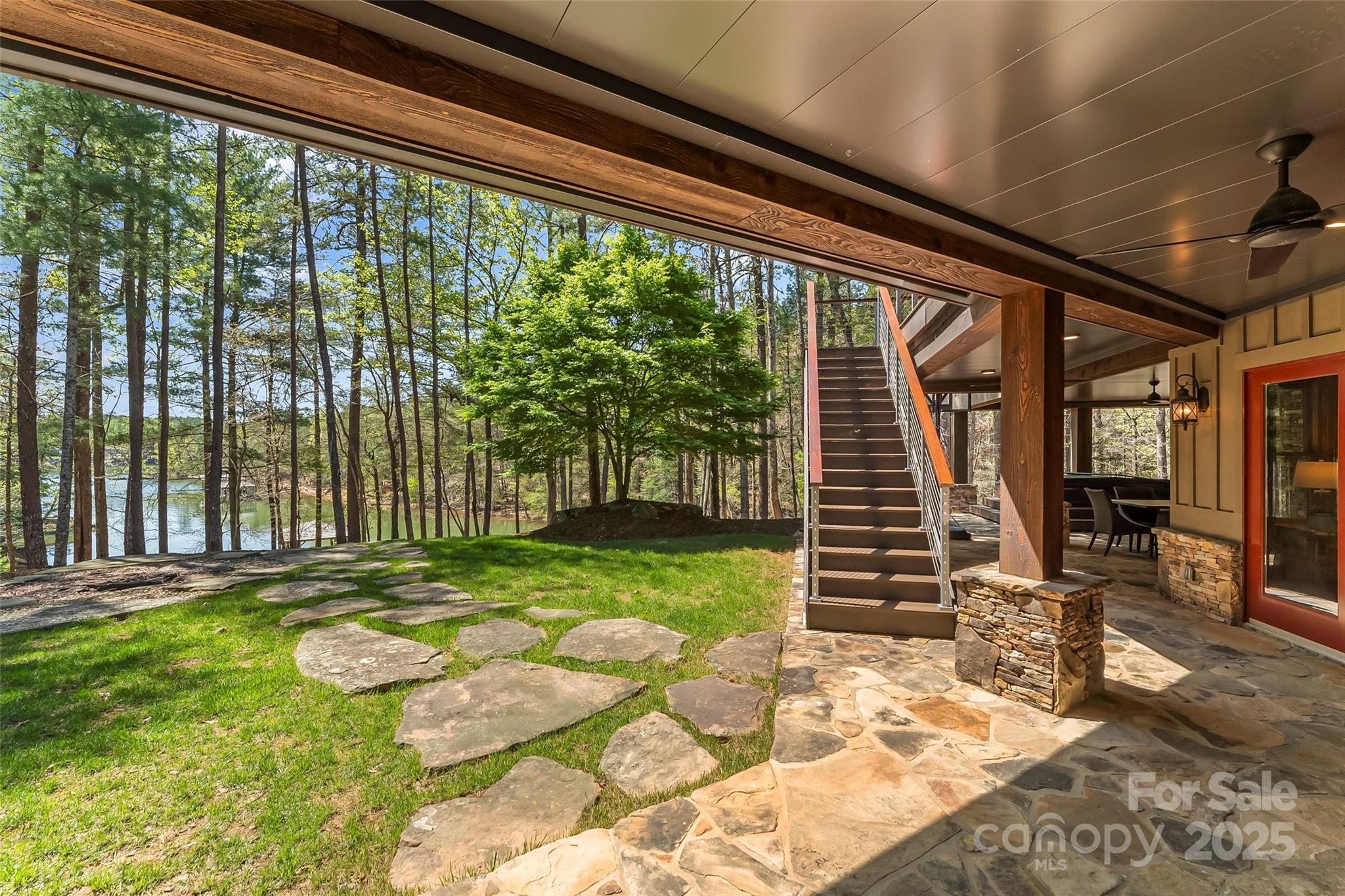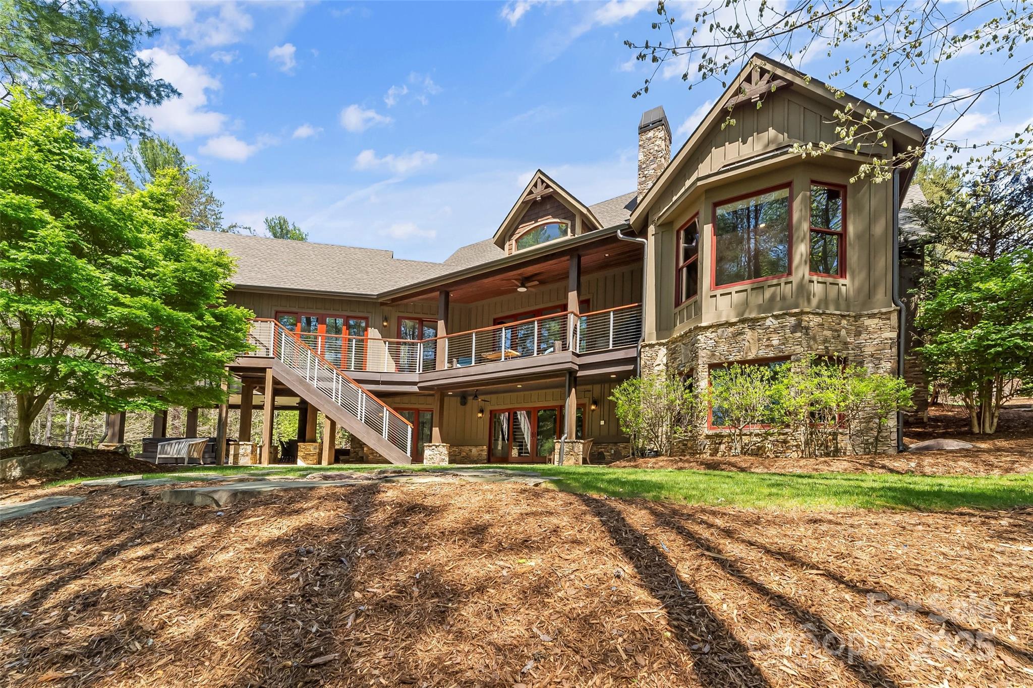 Experience waterfront living at its finest in this exquisite 4-bedroom waterfront home nestled on over three acres with water views. The gourmet kitchen features a spacious island perfect for entertaining, opening to a sun-drenched waterfront sunroom with fireplace. Each ensuite bedroom offers a private sanctuary, complemented by a charming bunk room for additional guests. Entertaining is effortless with a full bar area with fireplace & separate video entertainment room. Covered & uncovered decks extend your living space outdoors, capturing the lake vistas. The gentle slope leads to a covered dock and sundeck offering immediate access to countless water adventures. Evenings are magical on the waterfront patio featuring a luxurious hot tub, outdoor television & fireplace. Two car garage and unfinished storage areas. This rare offering combines privacy, luxury, and the ultimate waterfront lifestyle with room to breathe and space to play. Camp Lake James is just a short boat ride away!