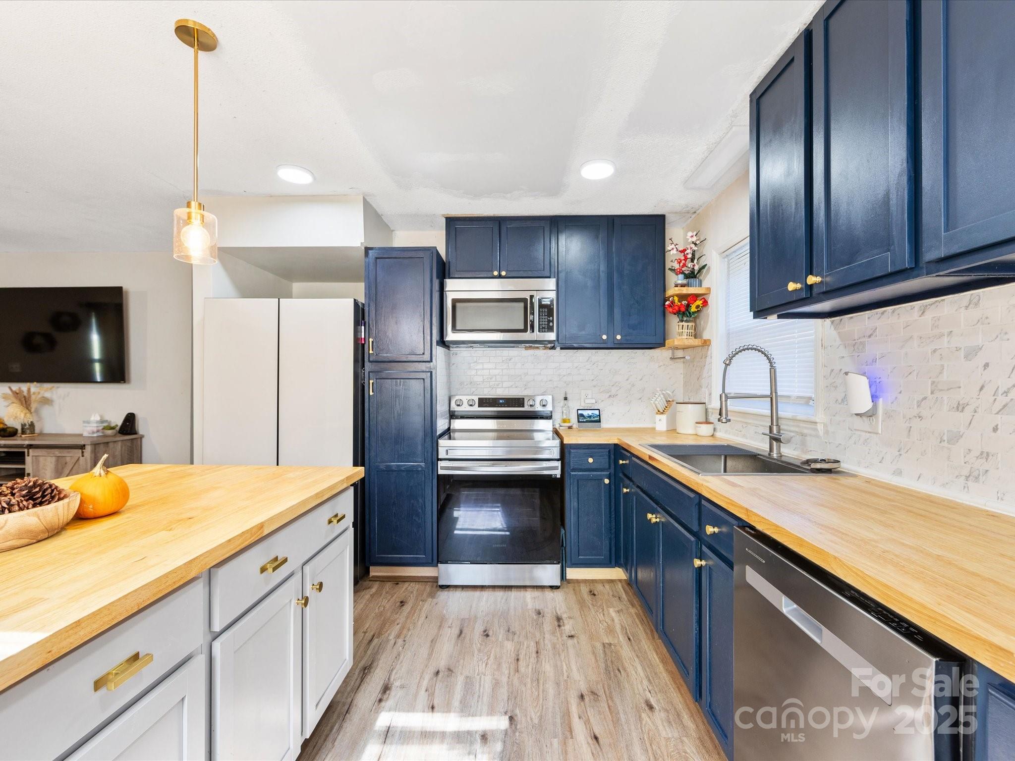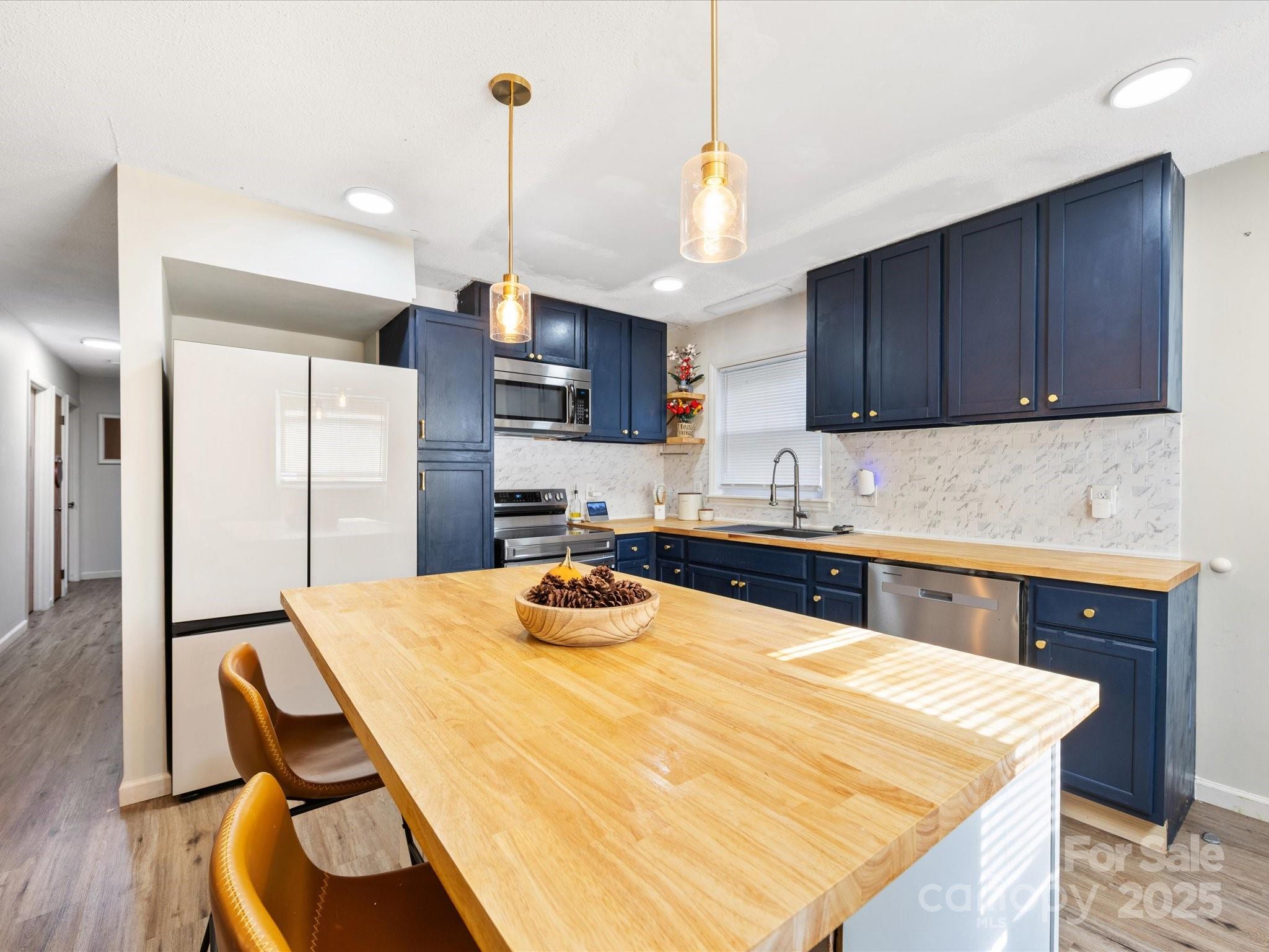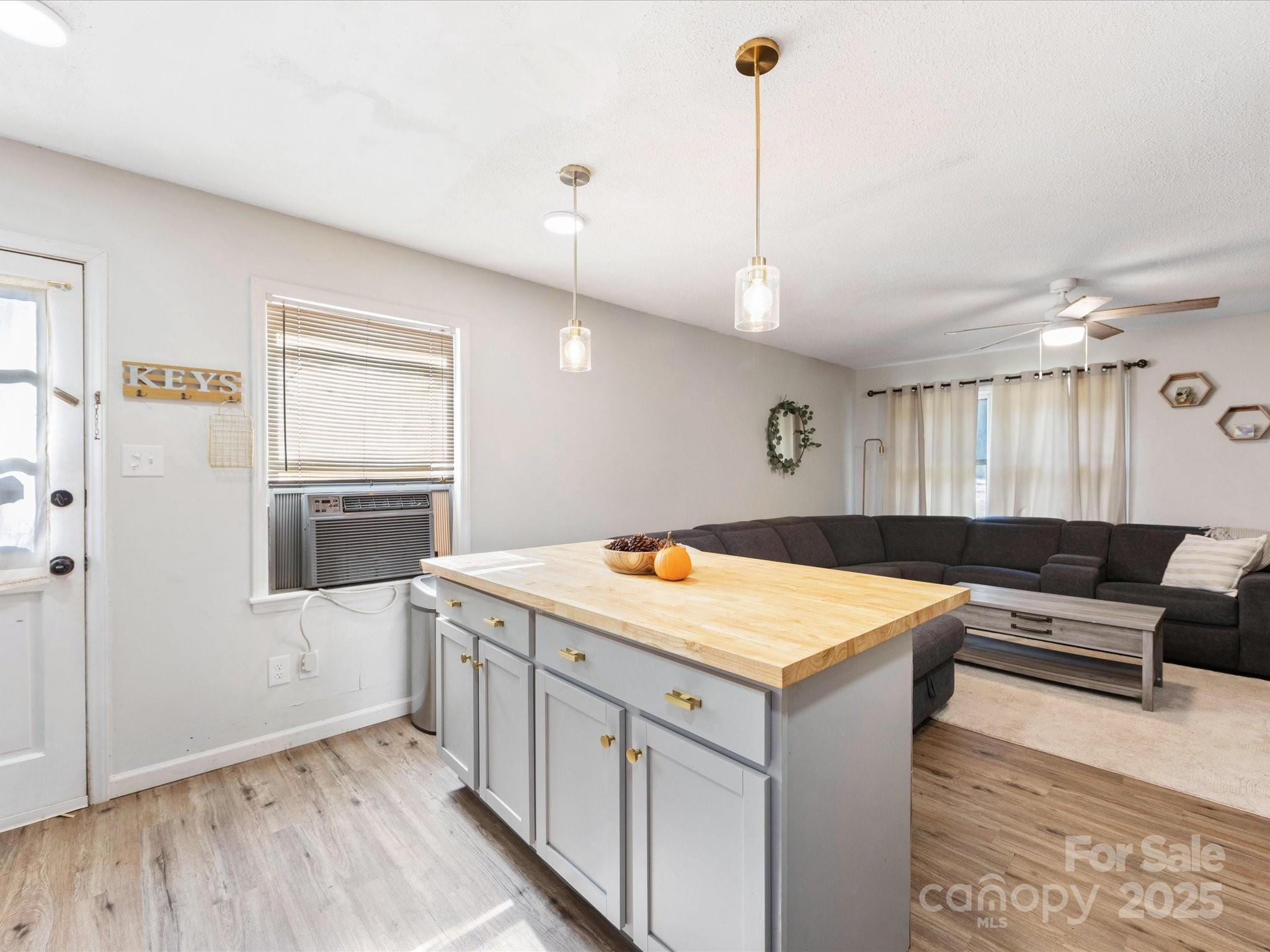 Charming brick ranch with 3 bedrooms and 1 bath on a spacious 0.5-acre lot. Open living/kitchen area features new cabinets, tile backsplash, butcher block counters, and a huge island with seating—perfect for gatherings. Durable vinyl plank floors run through main living areas and bedrooms. Bath includes a new white tub/shower combo and connects to both hall and primary. Thoughtful layout also features a laundry room with dual access from hall and bath. Seller is offering an $11,000 credit for new HVAC and ductwork. Triangular lot offers a large, sunny front/side yard for gardening, fire pit, or outdoor fun. Ideally located in Conover—minutes to 690-acre Riverbend Park with nearly 20 miles of trails and river access, and Conover Station, a community hub with library, café, and events—plus easy access to Rock Barn Country Club, Hickory’s shopping, dining, arts, and Lake Hickory recreation.