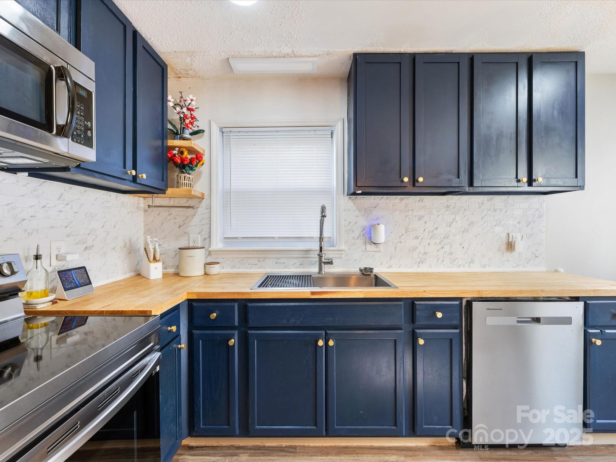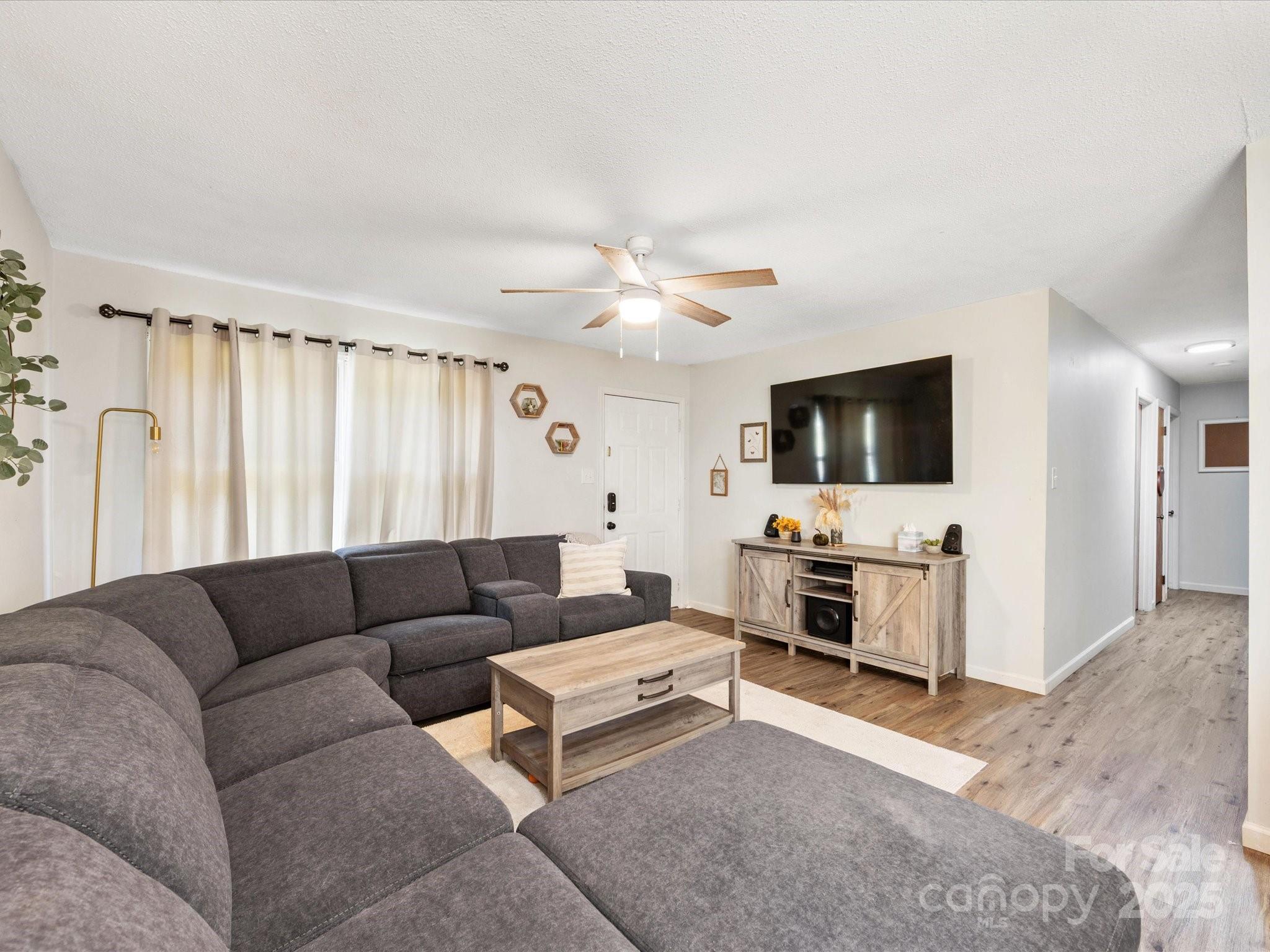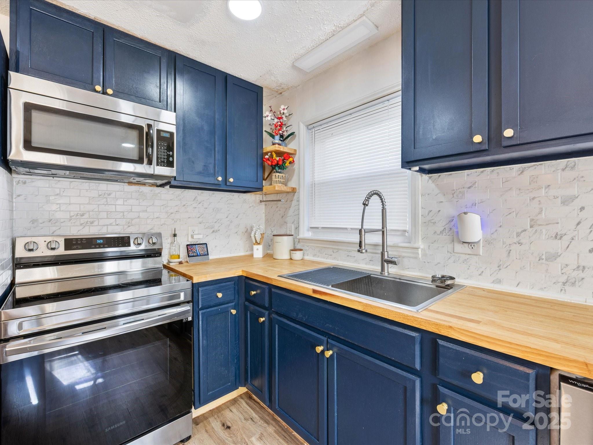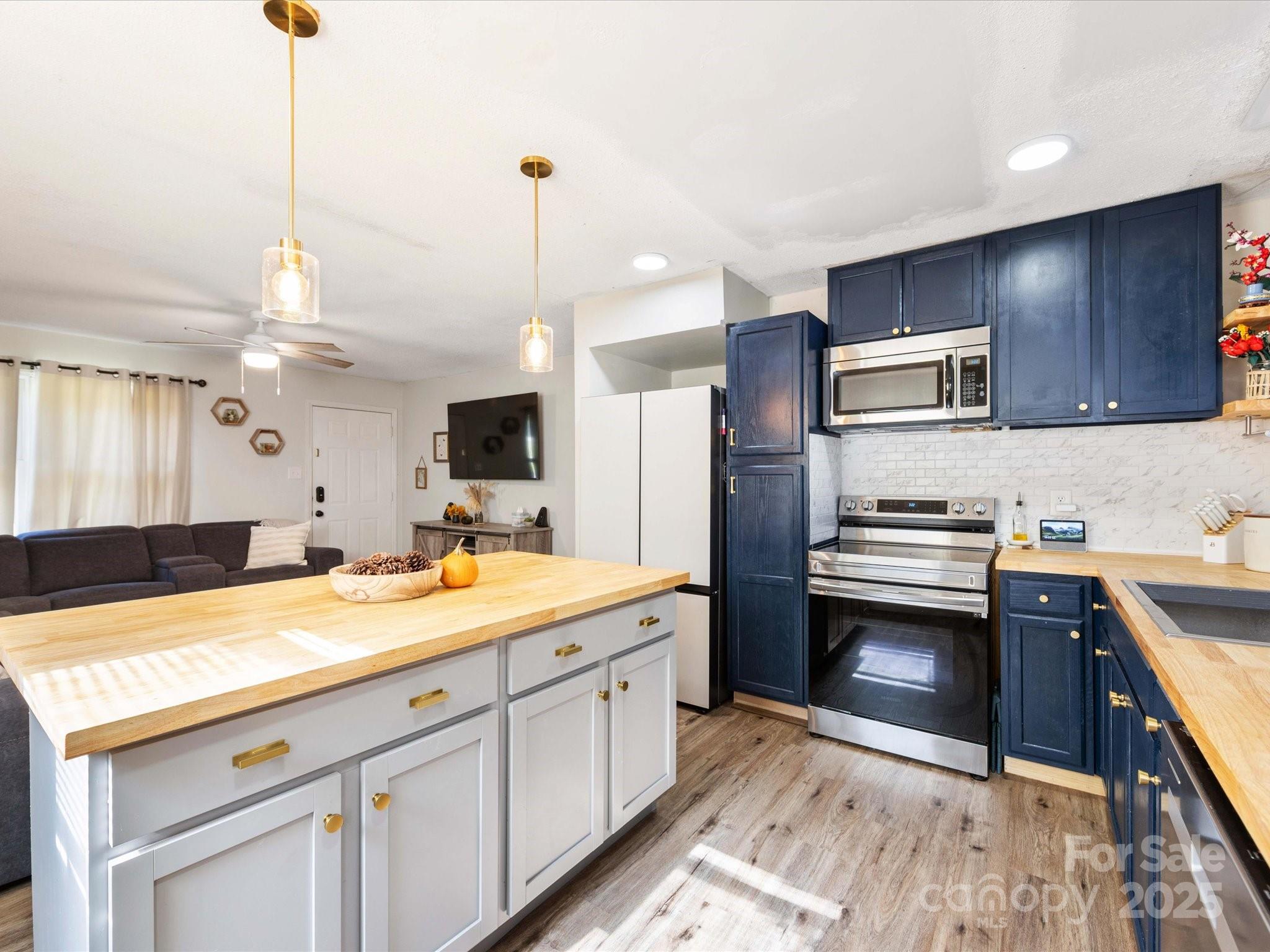 Charming brick ranch with 3 bedrooms and 1 bath on a spacious 0.5-acre lot. Open living/kitchen area features new cabinets, tile backsplash, butcher block counters, and a huge island with seating—perfect for gatherings. Durable vinyl plank floors run through main living areas and bedrooms. Bath includes a new white tub/shower combo and connects to both hall and primary. Thoughtful layout also features a laundry room with dual access from hall and bath. Seller is offering an $11,000 credit for new HVAC and ductwork. Triangular lot offers a large, sunny front/side yard for gardening, fire pit, or outdoor fun. Ideally located in Conover—minutes to 690-acre Riverbend Park with nearly 20 miles of trails and river access, and Conover Station, a community hub with library, café, and events—plus easy access to Rock Barn Country Club, Hickory’s shopping, dining, arts, and Lake Hickory recreation.