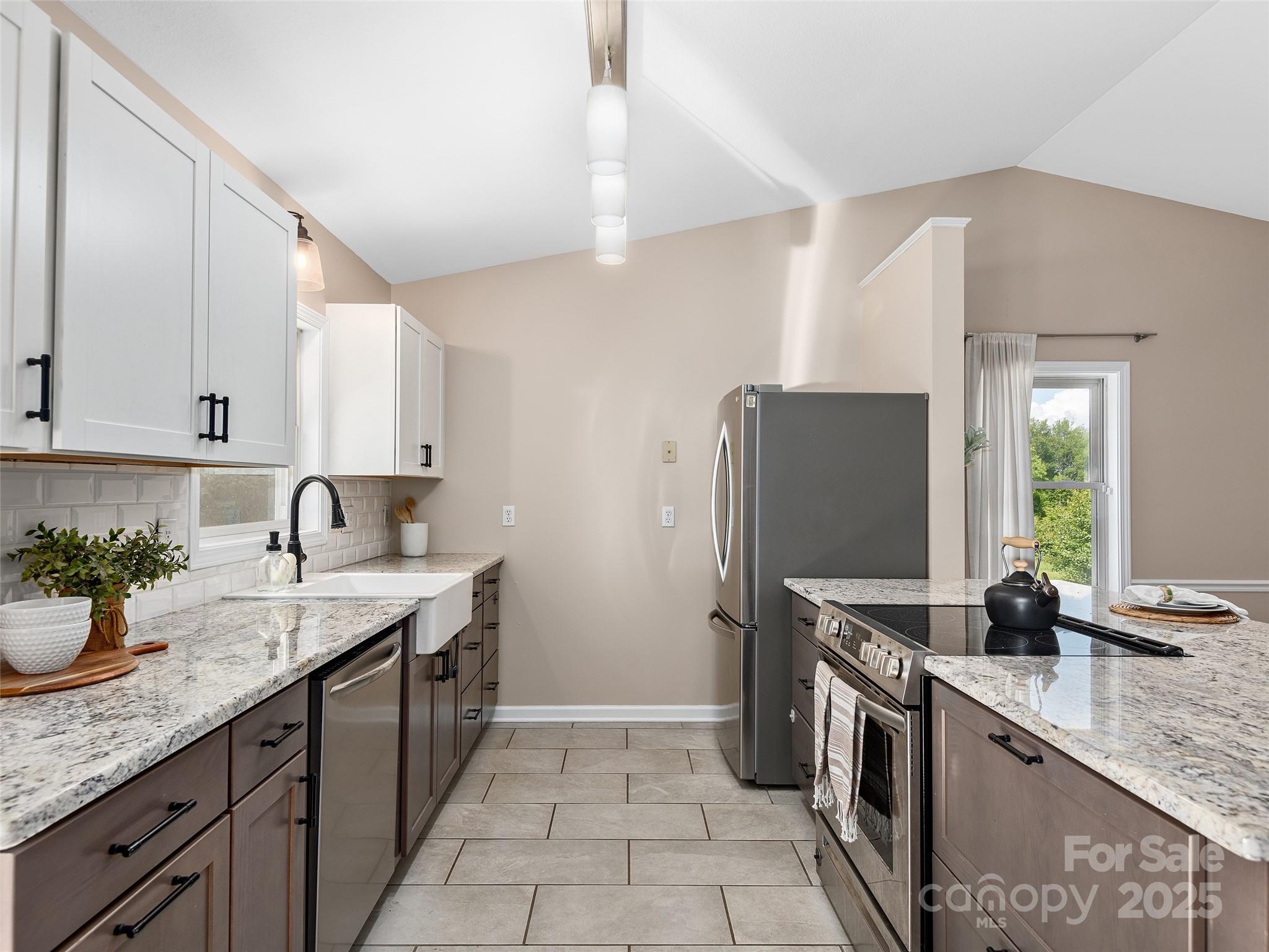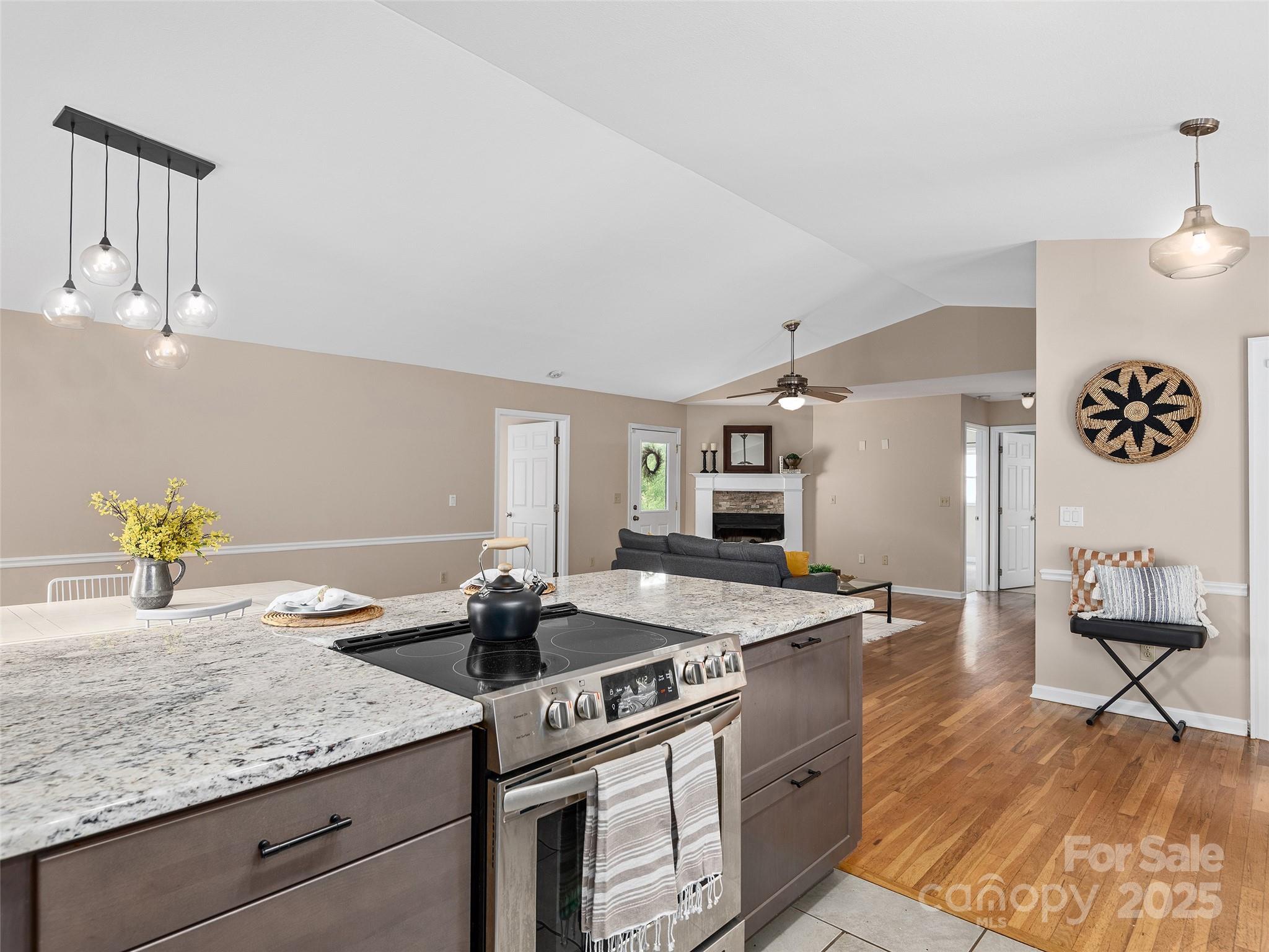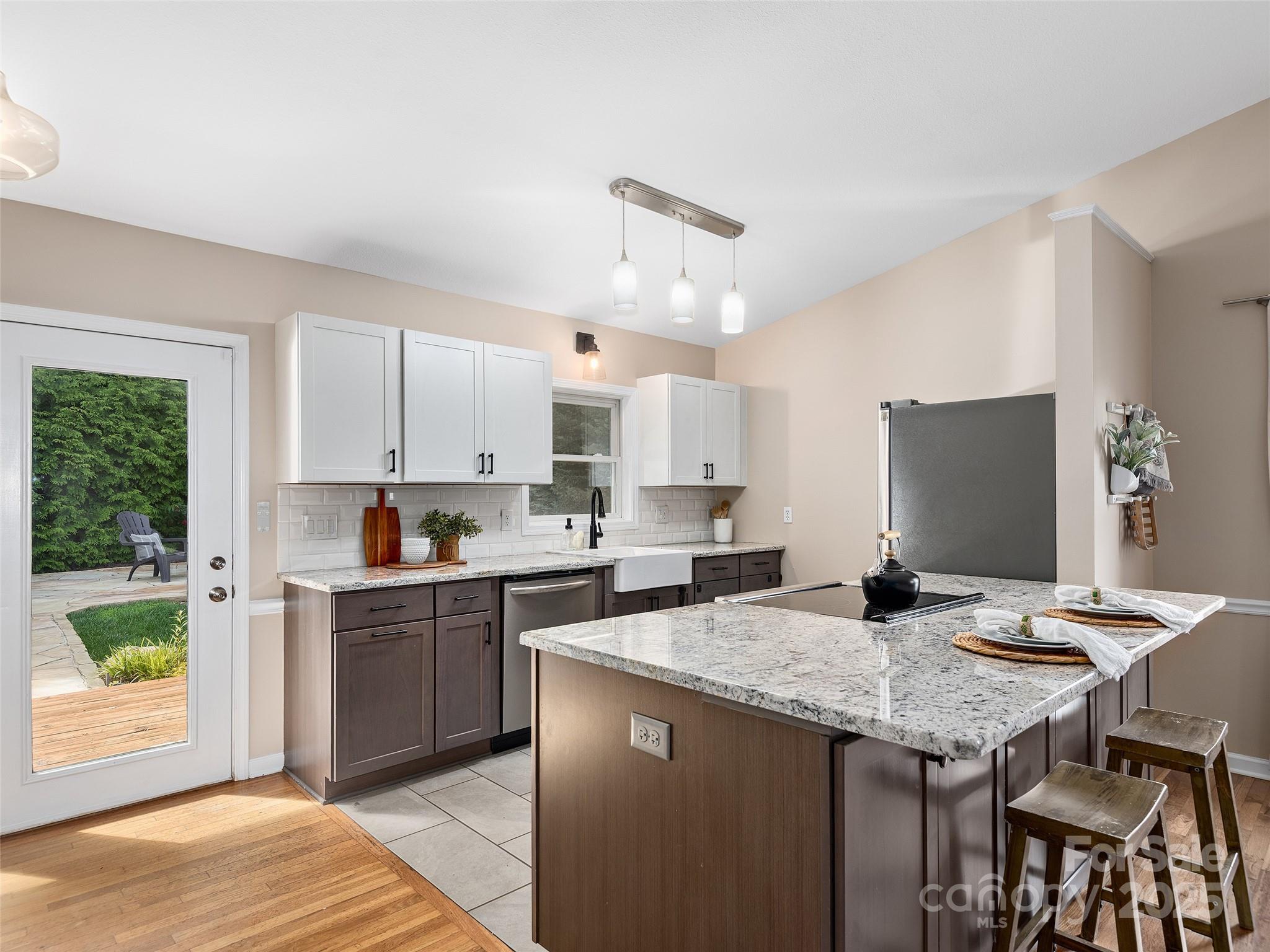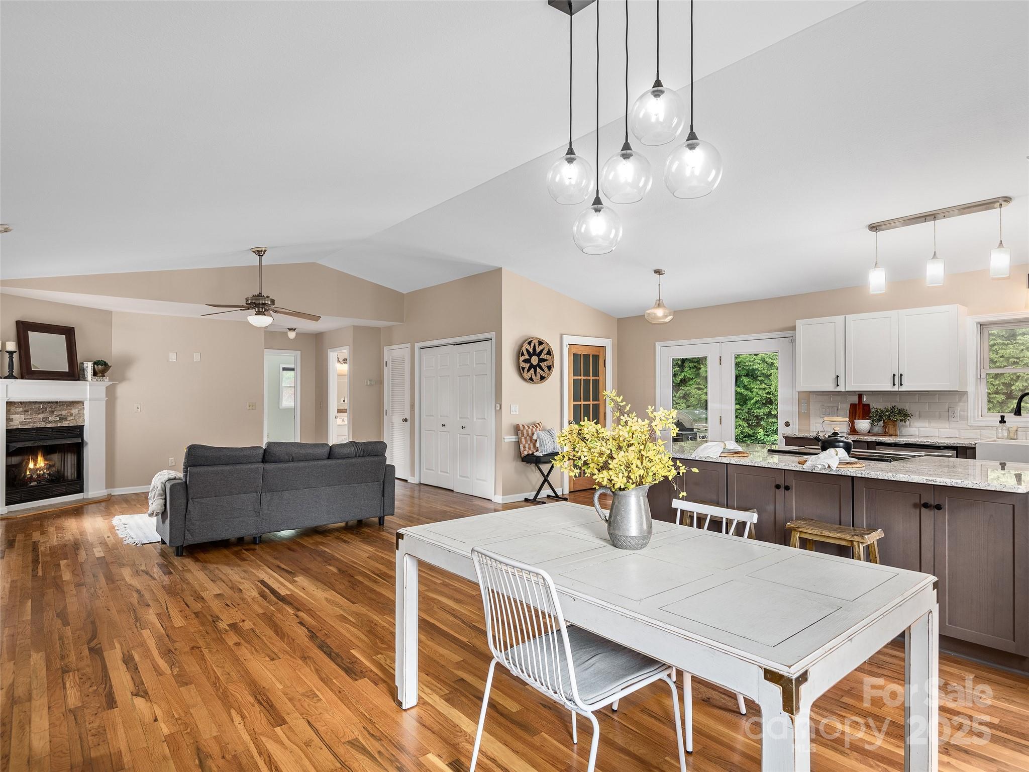 Perfect blend of comfort, style, and function in this inviting and updated 3BR/2BA home just minutes from downtown Waynesville. The spacious great room with a cozy fireplace flows effortlessly into the beautifully remodeled kitchen, featuring custom cabinetry, granite countertops, a farm-style sink, and a breakfast bar—ideal for entertaining or casual dining. The open floor plan creates a bright and welcoming atmosphere, while the primary suite offers a peaceful retreat with a walk-in closet and a modern bath showcasing a luxurious walk-in shower. Enjoy the convenience of main-level laundry and the versatility of a lower-level flex room, perfect for crafting, workouts, or a home office. Step outside to a private fenced backyard with a lovely stone patio—perfect for outdoor dining, relaxation, or gardening. The inviting front porch is the perfect place to start your day with morning coffee. Spectrum high-speed internet keeps you connected, and with an unbeatable location just 3.5 miles from Main Street Waynesville, you’ll enjoy the best of quiet living and town convenience. Ideal for a full-time residence or a second-home retreat!