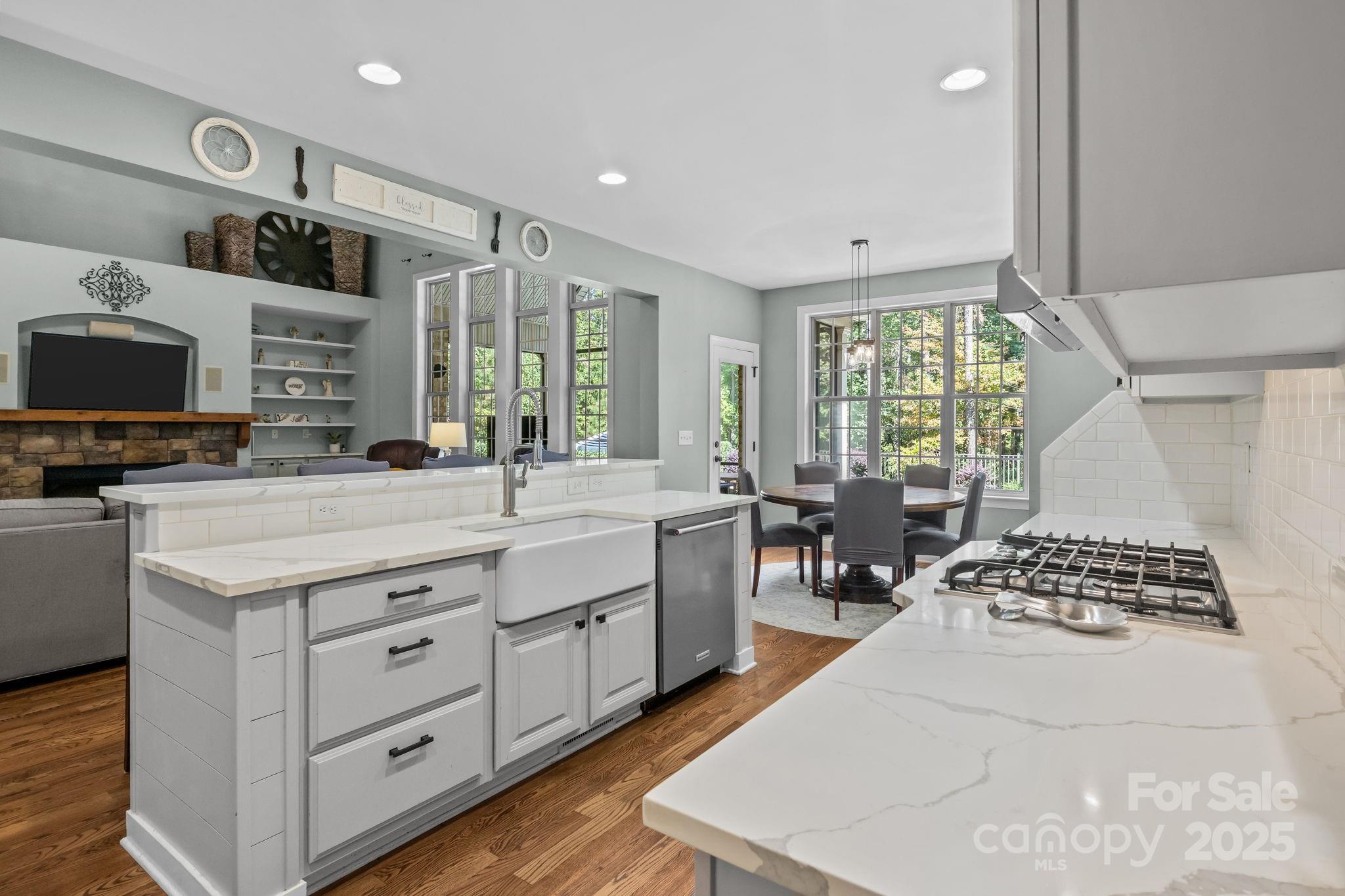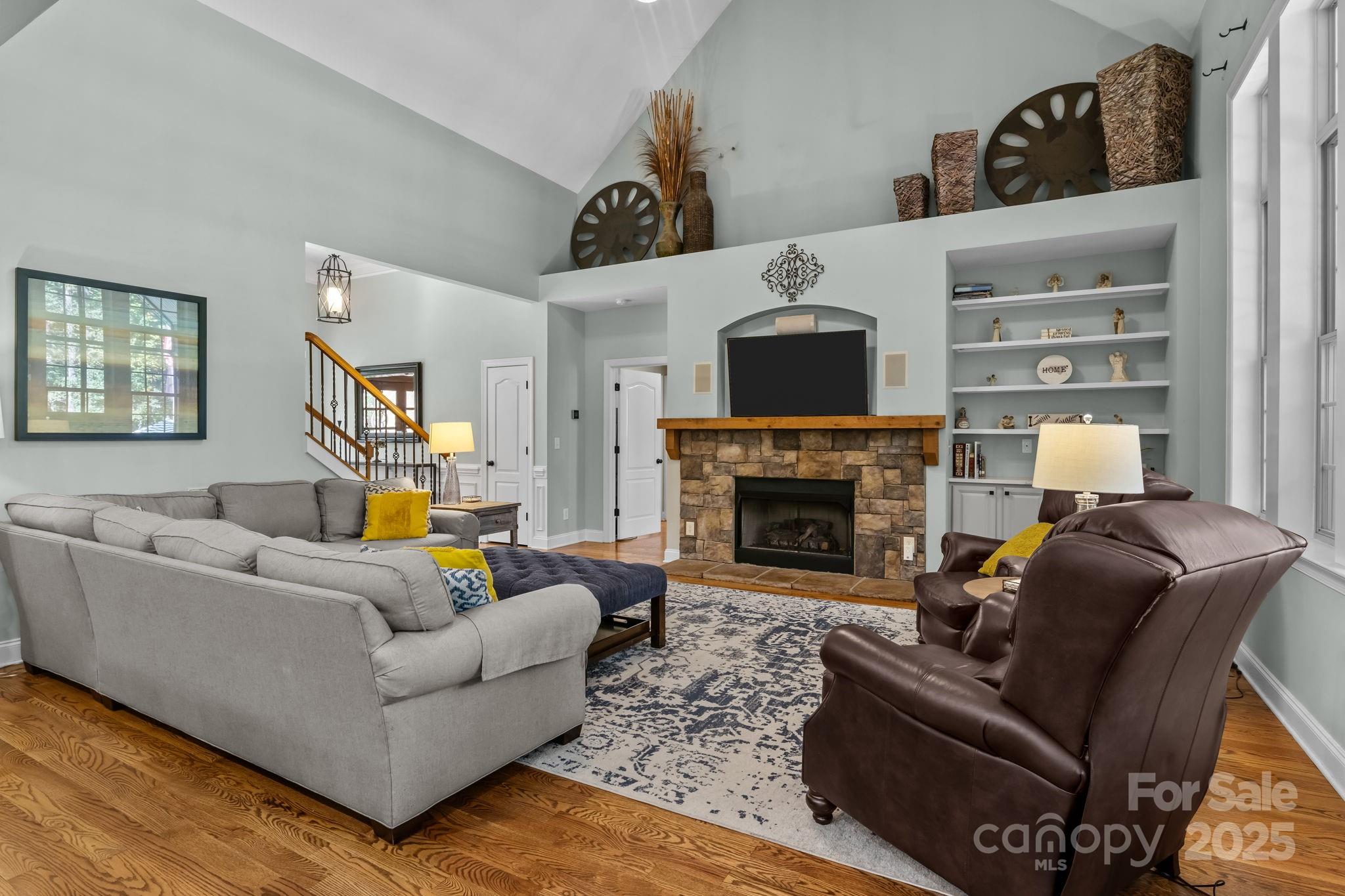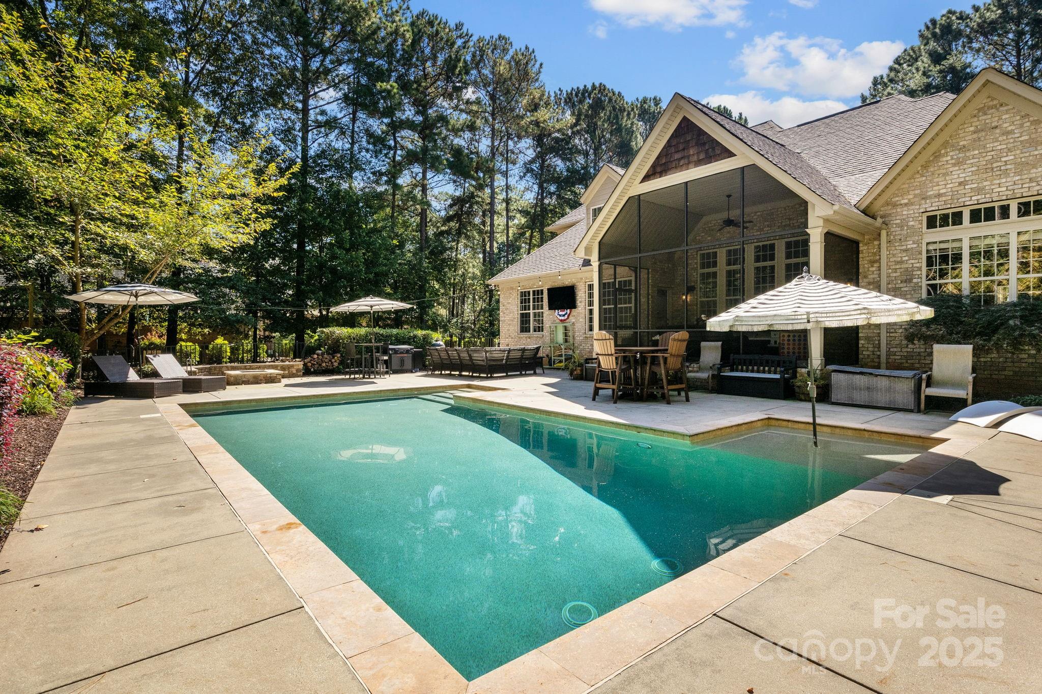 Welcome to this stunning custom stone and brick home, nestled on a spacious 1.3-acre lot in the coveted gated community of Pebble Bay. Designed with comfort and functionality in mind, this home offers a seamless open layout with custom details like vaulted ceilings, a stone fireplace and custom gunite saltwater pool. At the heart of the home you’ll find an updated kitchen with gas cook top, double ovens and a large kitchen island that flows seamlessly into the vaulted family room, complete with a cozy fireplace and beautiful built ins with floating shelves and views of the pool. The main level office can be utilized as a guest suite and offers privacy from the main living area. The luxurious main level primary suite leads to a beautifully updated bath with stand alone tub, new tile flooring and shower. Upstairs, you’ll find three generously sized bedrooms, a full bath, and a large loft sitting area that overlooks the family room below, creating an open and inviting atmosphere. Outdoor living is equally impressive with a spacious screened porch, perfect for year-round enjoyment, leading to a private backyard oasis. The in-ground saltwater heated pool, fire pit, and abundant space for entertaining make this home ideal for gatherings with family and friends.This property combines privacy, elegance, and modern updates—all within a sought-after Lake Norman community. Don’t miss the opportunity to make this Pebble Bay beauty your new home.