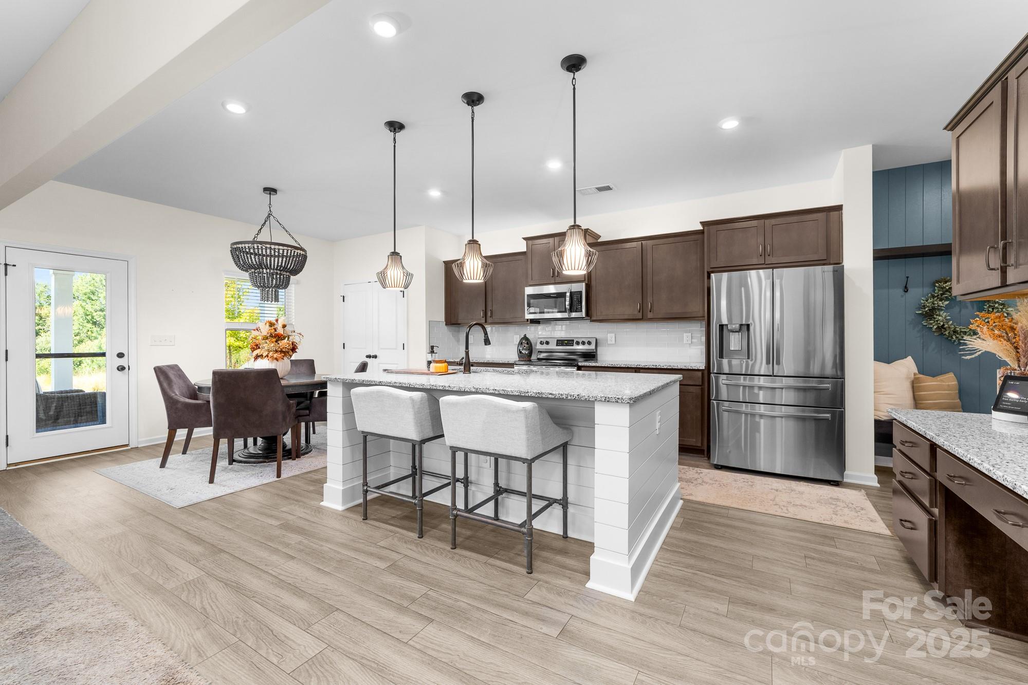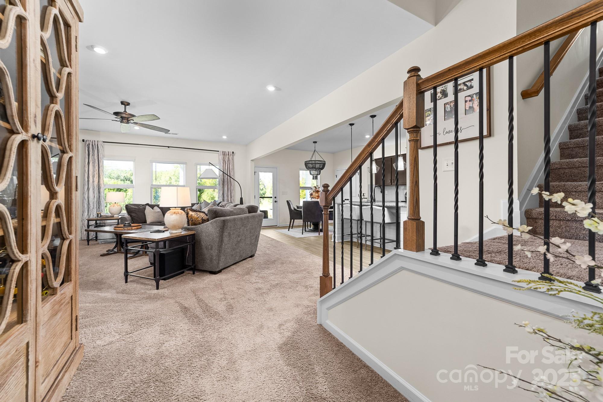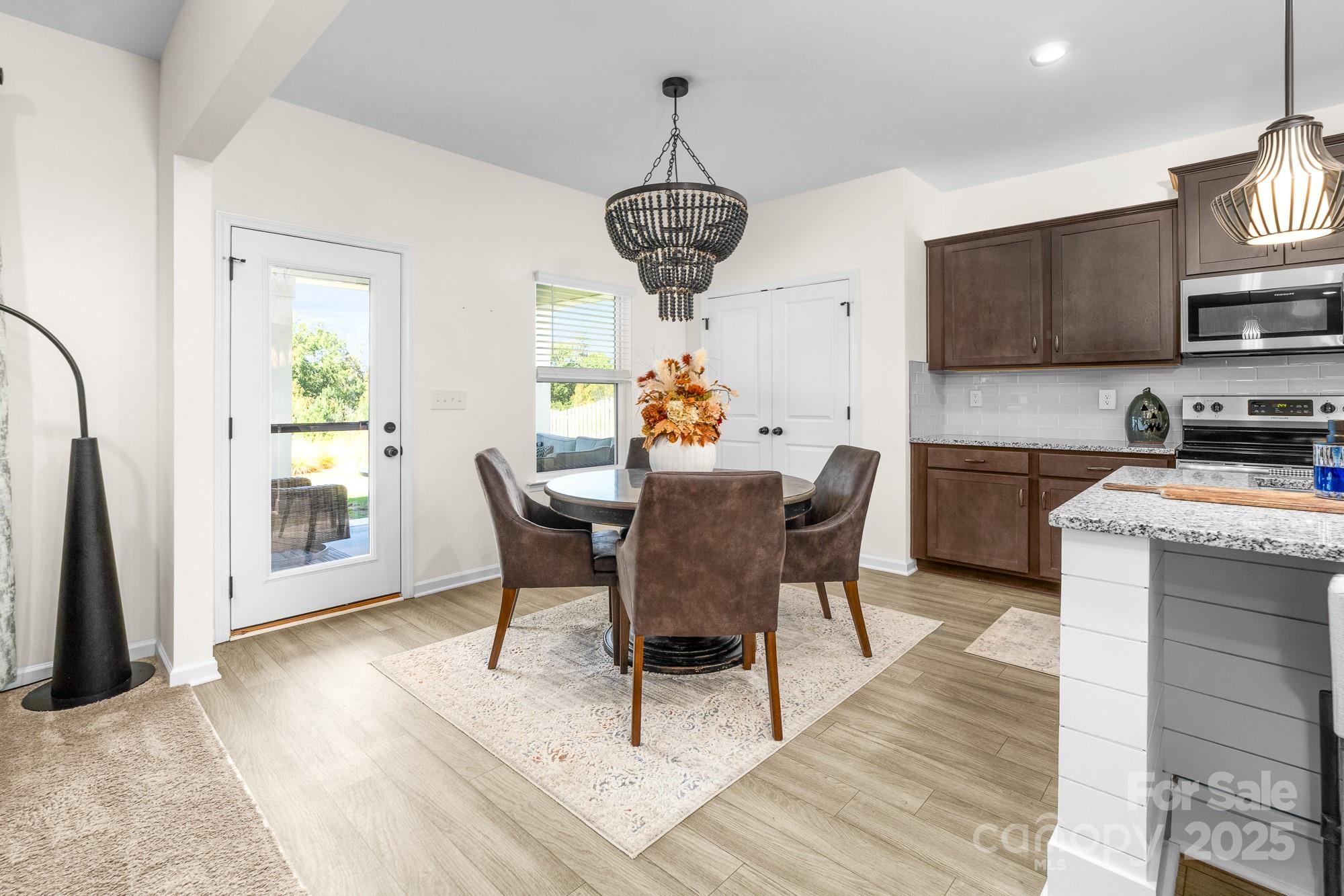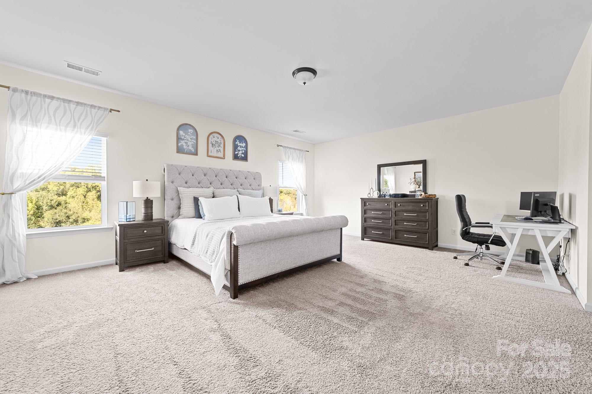 Welcome to this beautifully maintained 4-bedroom, 2.5-bath home in one of Huntersville’s most desirable communities. With a spacious layout, thoughtful upgrades, and a prime location, this home effortlessly combines comfort and convenience. Step inside to an open-concept living and dining area flooded with natural light, perfect for entertaining or relaxing. The cozy family room boasts a stunning baton wall and offers ample space to accommodate a large sofa—creating the perfect spot for family movie nights or quiet evenings. The kitchen impresses with generous cabinetry and workspace, making meal prep effortless as well as two pantry closets providing exceptional storage for your culinary essentials. Upstairs, the serene primary suite includes a private bath and walk-in closet, while three additional bedrooms provide flexibility and ample closet space. Enjoy the convenience of a second-floor laundry room for easy day-to-day living. Step outside to your backyard retreat: a covered patio overlooking a peaceful wooded field where breathtaking sunsets paint the sky each evening. Whether you’re savoring your morning coffee or hosting friends at dusk, this serene view is truly enchanting. The pristine epoxy-coated garage is ideal for hobbies, workouts, or game nights. **Prime Location Perks: *Less than 2 miles from the new Lake Norman Charter Elementary West (Spring 2026) and Phoenix Montessori *Minutes from Birkdale Village shopping, dining, and entertainment *Close to Lake Norman for boating, fishing, and lakeside fun *Easy access to top-rated restaurants and local parks *Just 20 minutes to Charlotte Douglas Airport and Uptown Charlotte **This home is a rare find—offering style, tranquility, and unmatched convenience. Schedule your showing today!