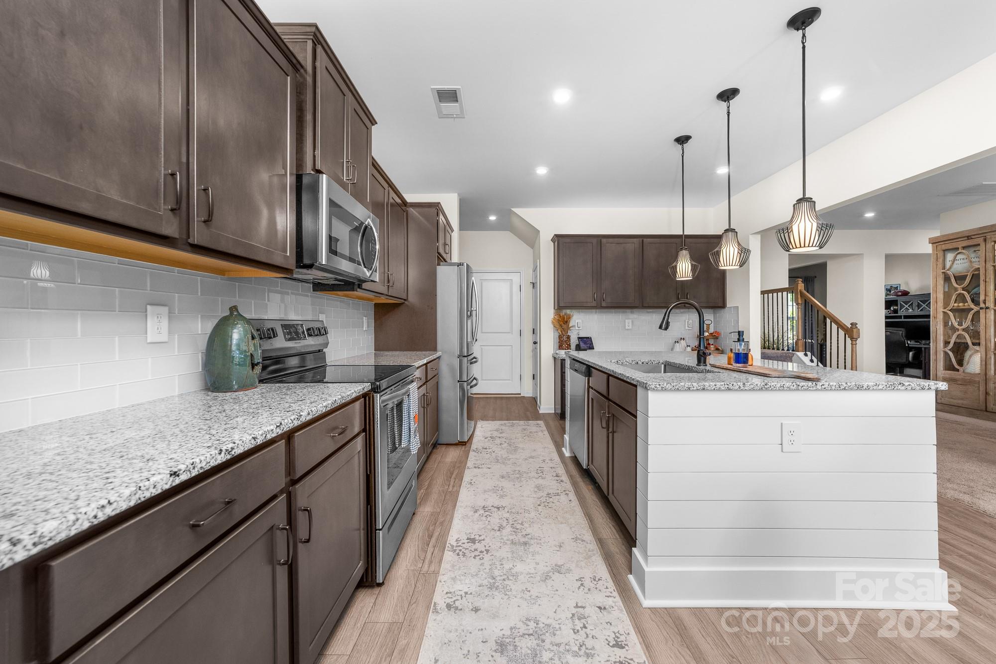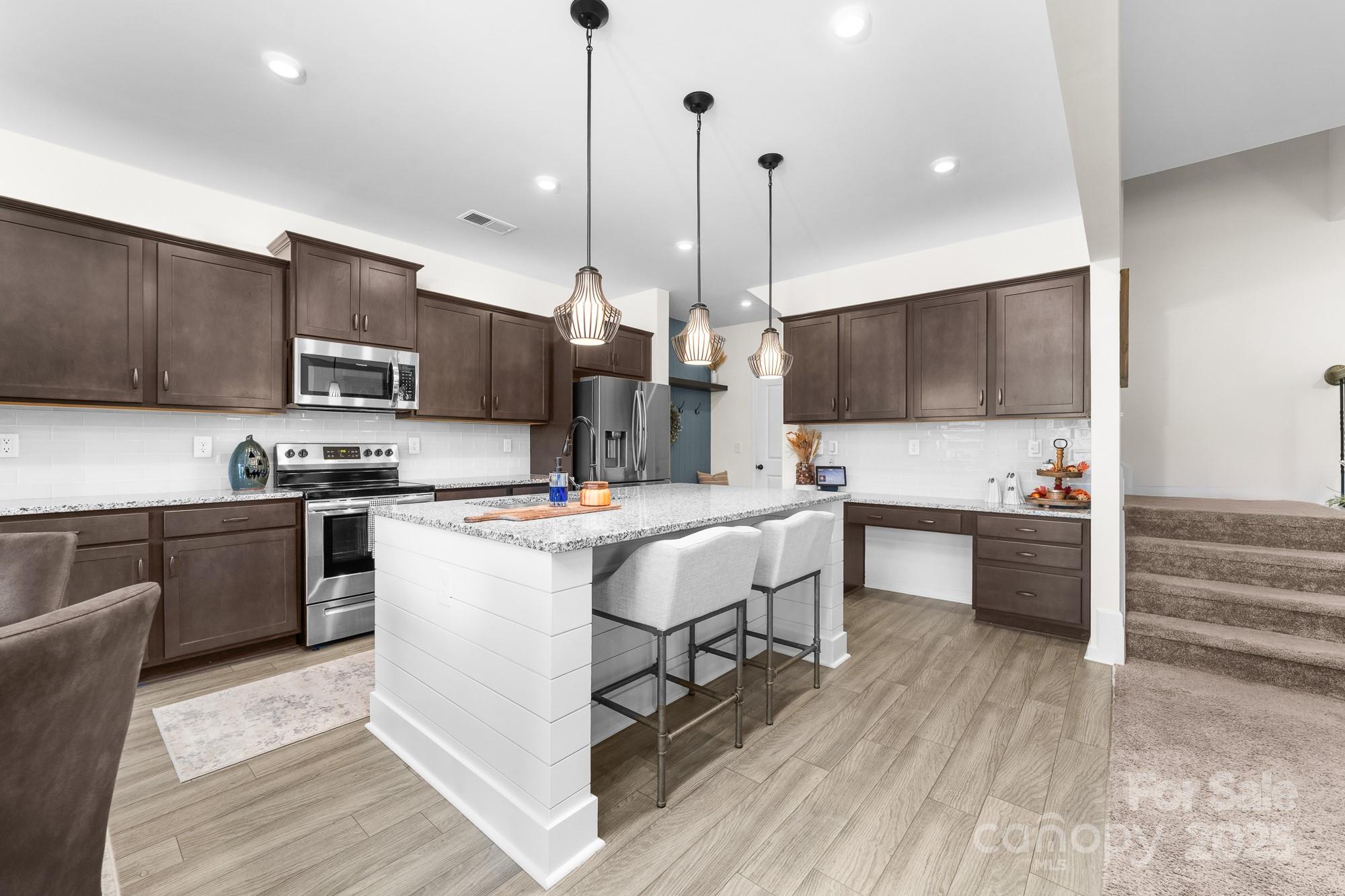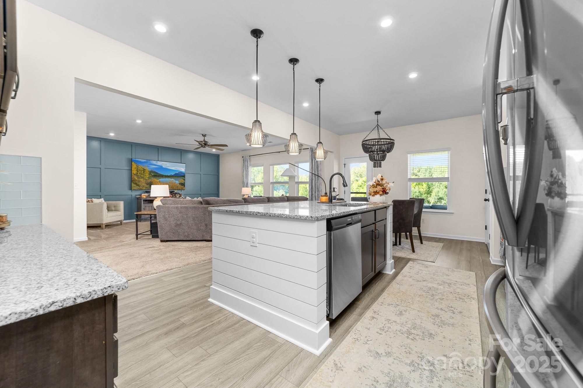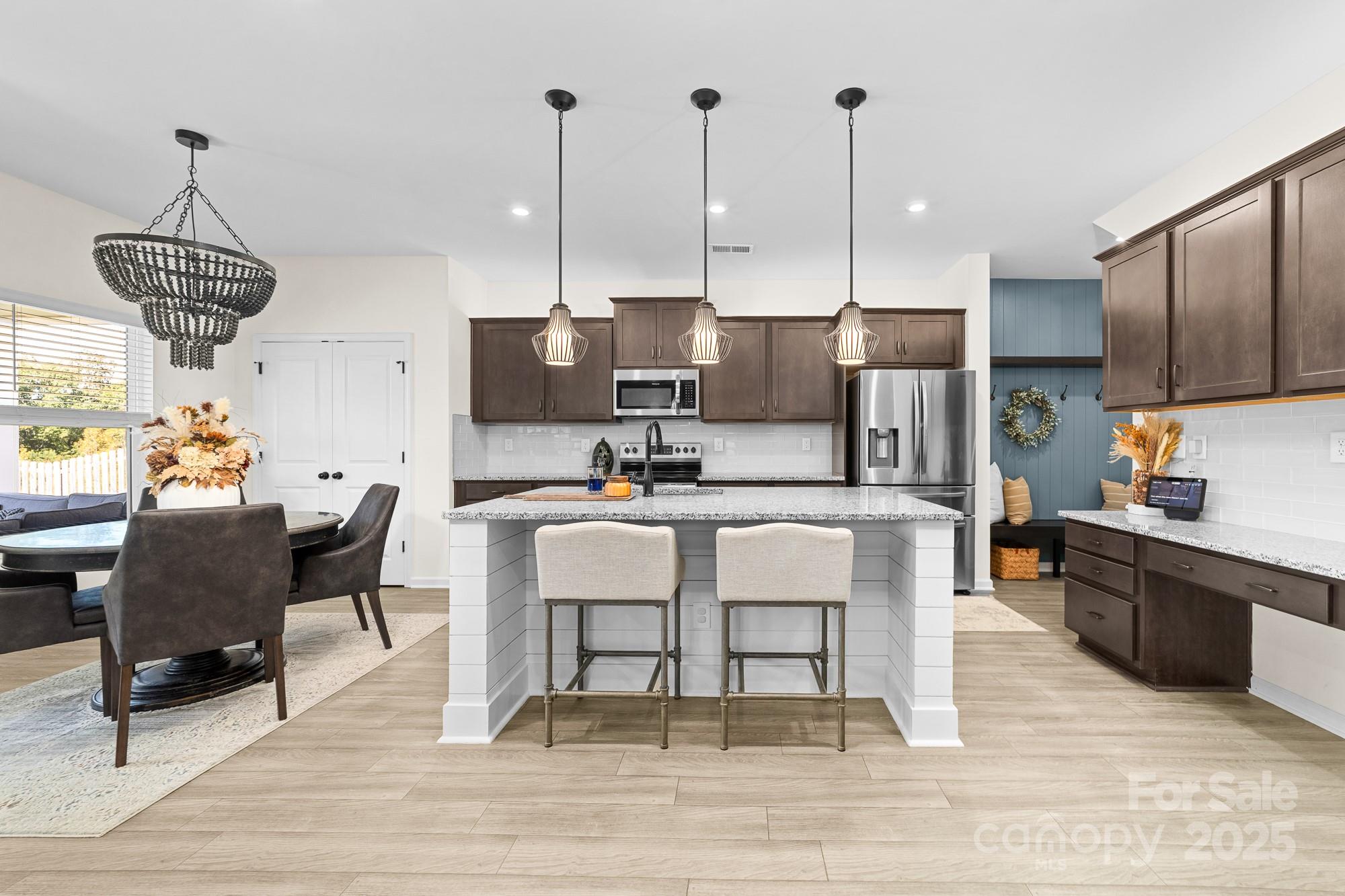 Welcome to this beautifully maintained 4-bedroom, 2.5-bath home in one of Huntersville’s most desirable communities. With a spacious layout, thoughtful upgrades, and a prime location, this home effortlessly combines comfort and convenience. Step inside to an open-concept living and dining area flooded with natural light, perfect for entertaining or relaxing. The cozy family room boasts a stunning baton wall and offers ample space to accommodate a large sofa—creating the perfect spot for family movie nights or quiet evenings. The kitchen impresses with generous cabinetry and workspace, making meal prep effortless as well as two pantry closets providing exceptional storage for your culinary essentials. Upstairs, the serene primary suite includes a private bath and walk-in closet, while three additional bedrooms provide flexibility and ample closet space. Enjoy the convenience of a second-floor laundry room for easy day-to-day living. Step outside to your backyard retreat: a covered patio overlooking a peaceful wooded field where breathtaking sunsets paint the sky each evening. Whether you’re savoring your morning coffee or hosting friends at dusk, this serene view is truly enchanting. The pristine epoxy-coated garage is ideal for hobbies, workouts, or game nights. **Prime Location Perks: *Less than 2 miles from the new Lake Norman Charter Elementary West (Spring 2026) and Phoenix Montessori *Minutes from Birkdale Village shopping, dining, and entertainment *Close to Lake Norman for boating, fishing, and lakeside fun *Easy access to top-rated restaurants and local parks *Just 20 minutes to Charlotte Douglas Airport and Uptown Charlotte **This home is a rare find—offering style, tranquility, and unmatched convenience. Schedule your showing today!