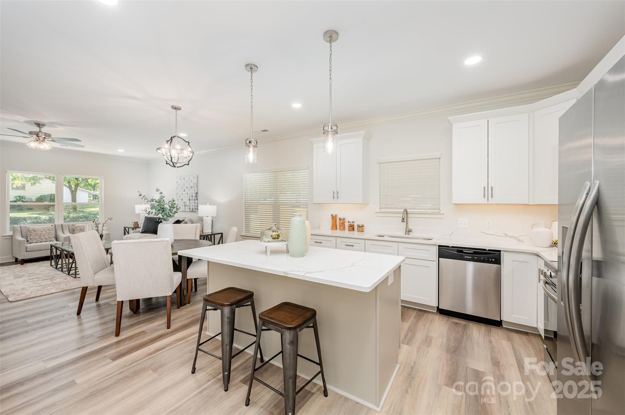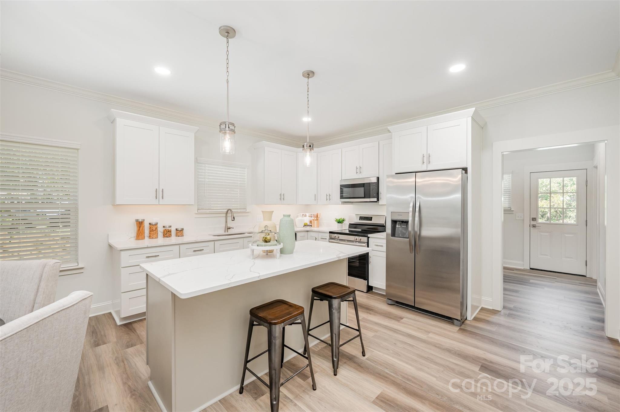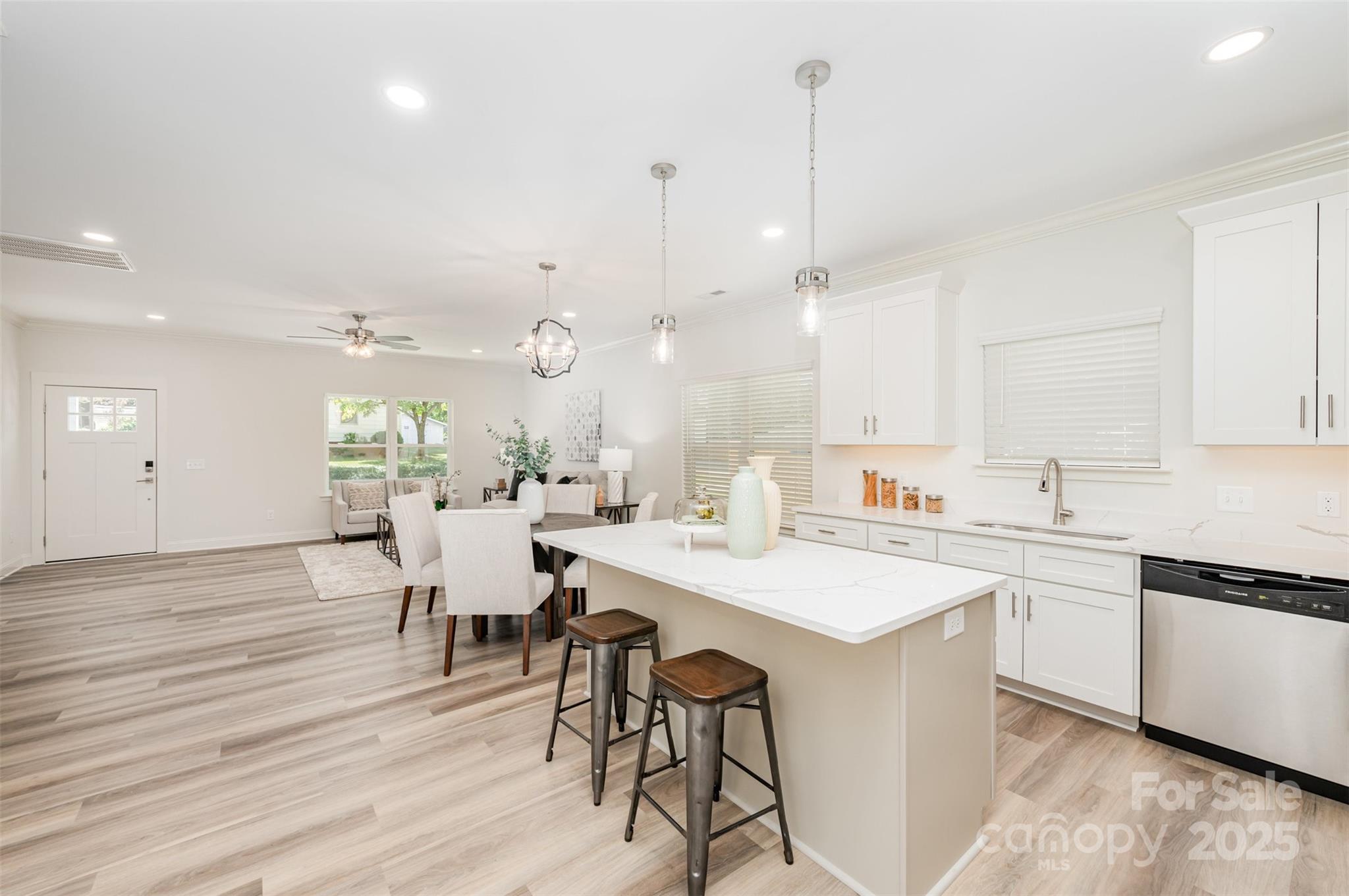 Imagine living in a custom built newly constructed home that is a mile from booming Kannapolis downtown, Village Park, and just .25 miles to 8th St Greenway. This home has it all! 4 bedrooms 3 bathrooms and an oversized two car garage for all your toys. From the inviting covered front porch, you'll find a sunlit open-concept layout designed for modern living inside. The main level showcases wide-plank LVP flooring and a seamless flow between the living room, dining area and chef-inspired kitchen. Outfitted with sleek SS appliances, gorgeous cabinetry, a large center island and upgraded quartz countertops. Through a set of elegant French doors, discover your private main-level primary retreat, complete with a massive walk-in closet and a spa-like en-suite featuring a dual-sink vanity and an oversized, glass-enclosed shower. Two spacious secondary bedrooms and a full bath complete this level with both comfort and convenience. The fully finished basement offers incredible versatility, with a large bonus/bedroom, full bath and plenty of room for guests, a home office a cozy second living space or section it off and rent it out for additional income. Whether you need space, want to enjoy being close to everything Kannapolis has to offer, or buying as an investment, this home has it all! Brittney Morris at Grand Line Lending is offering up to a $4K credit for qualified clients.