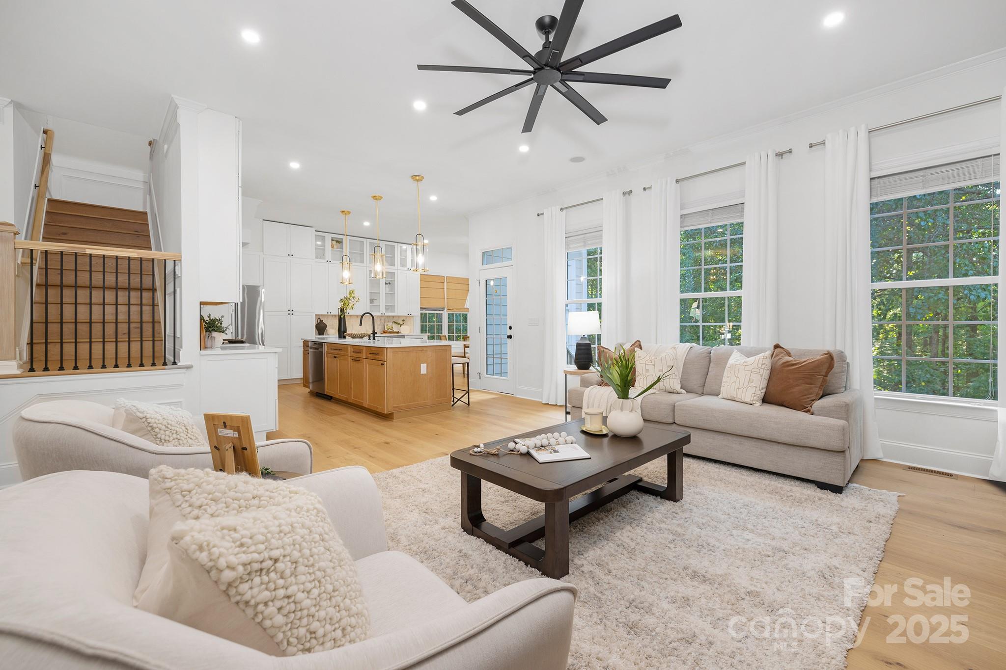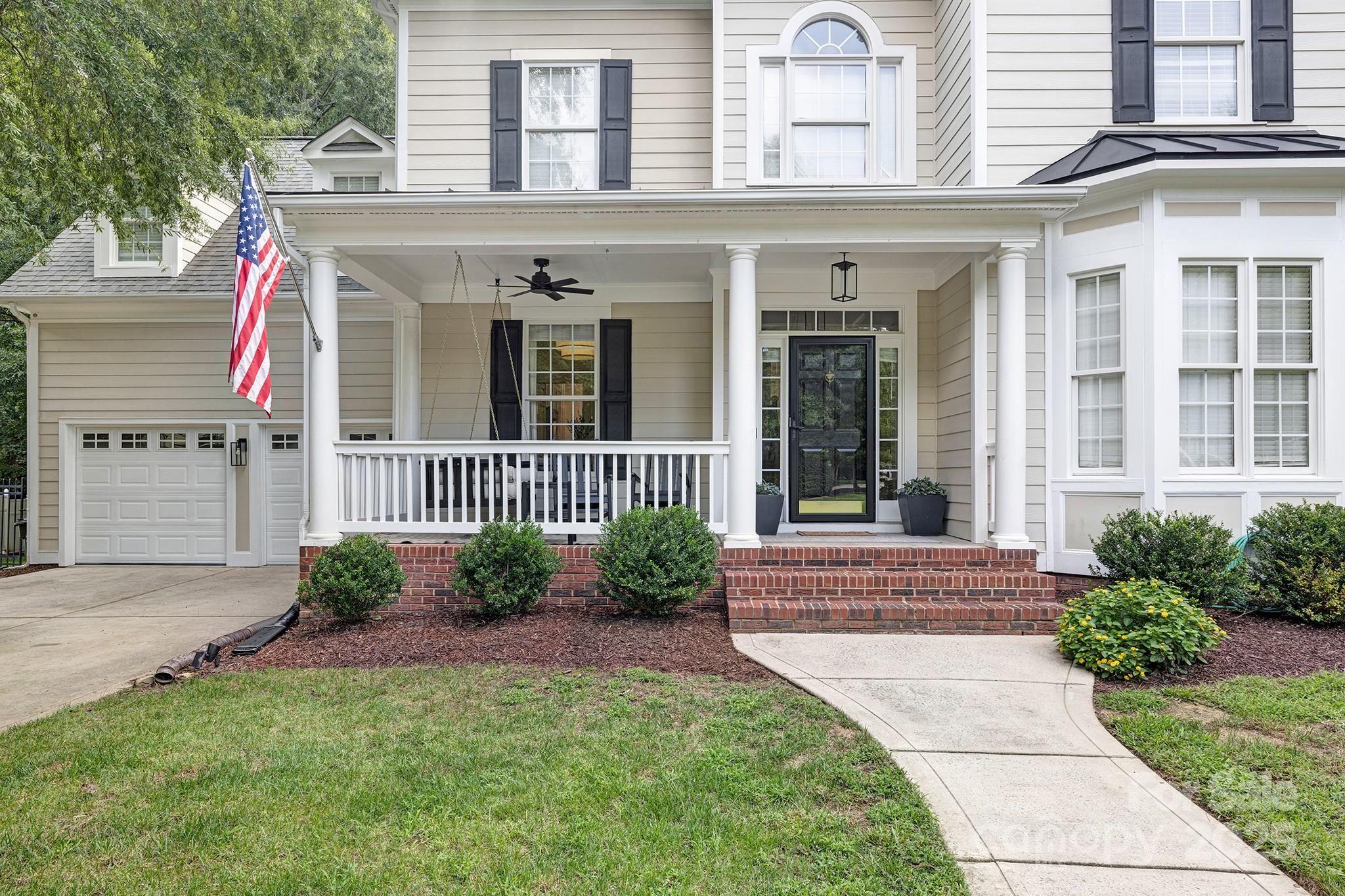Opt'l 5th BR on main lvl. Updated & charming home in quaint cul-de-sac w/ .32 acre lot backing to trees! Welcoming front porch w/rocking chairs & oversized porch swing. Wide plank, white oak flooring on upper & lower lvls. 10' ceilings & natural light flood the tradt'l & open style floorplan. Formal dining room, & flex room w/ access to full BA, can double as BR. Full BA w/ marble & cermaic tile. Kit/dining is open layout w/gas fireplace & built-in sound system. Gourmet kit w/ SS appliances, cabinets galore, & oversized island w/ storage on both sides. Wine fridge incl. Windowed bfast nook surrounded by trees & privacy. Backyard has patio & gas grill. Upstairs has 9' ceilings, 4 BR & bonus room w/ laundry room tucked inside. Primary BR incl french doors & tray ceiling, & views of trees. Ensuite incl marble tile floors, soaking tub, double vanity & walk-in closet. BR's incl recessed lighting, custom moulding. 2 hallway closets, & full BA w/ double sink & combo shower/tub. Golf cart sold sep. Agent is owner.
