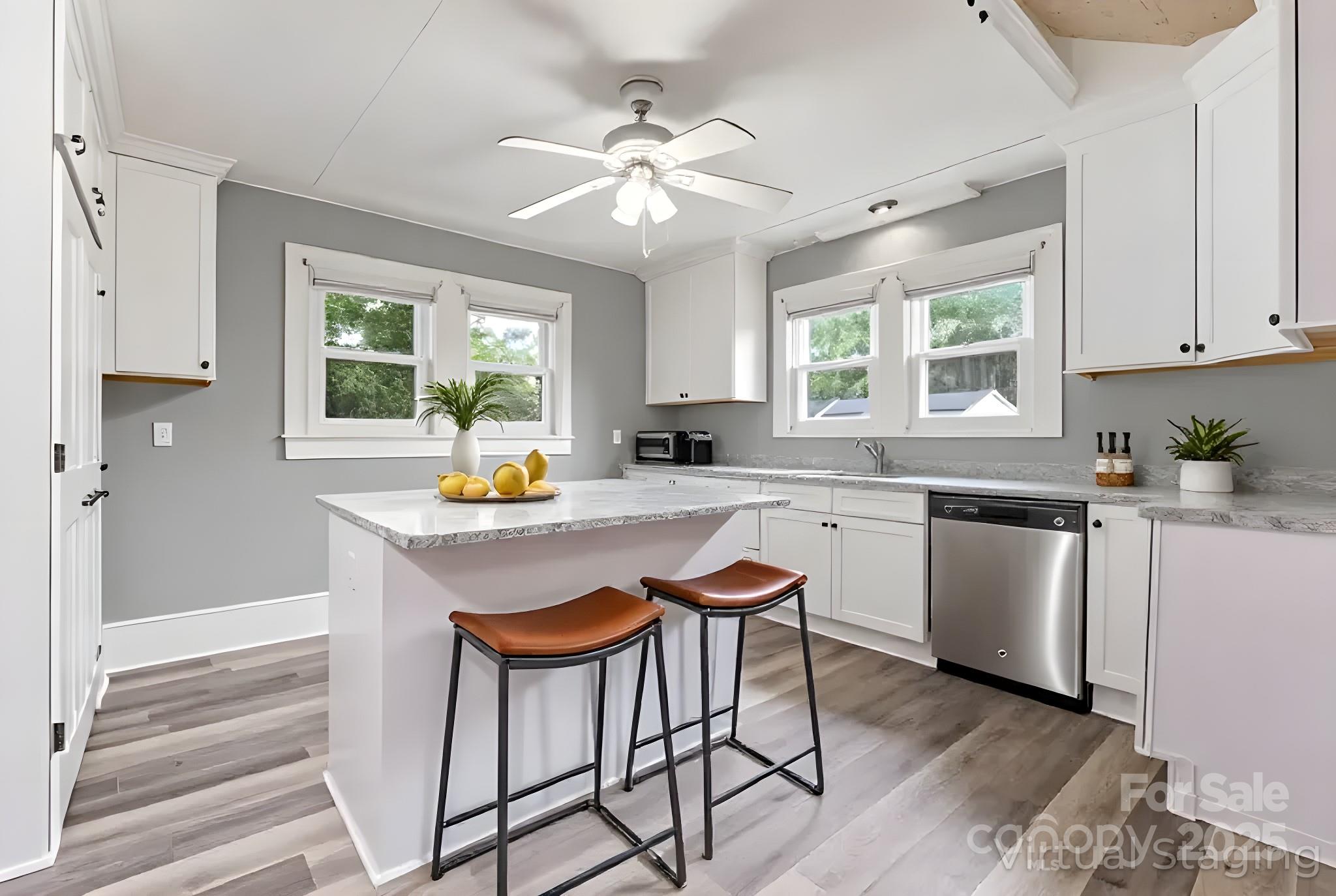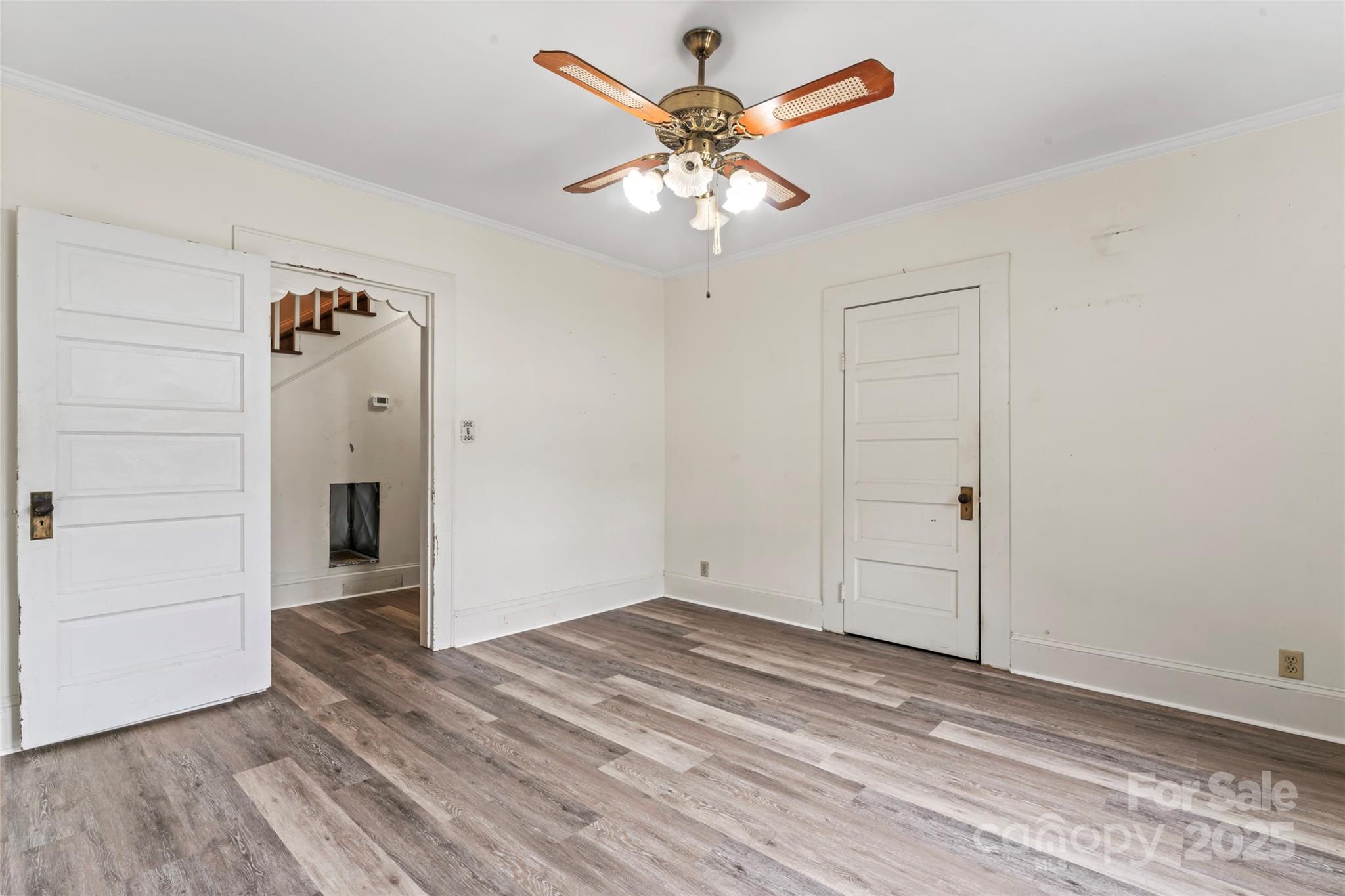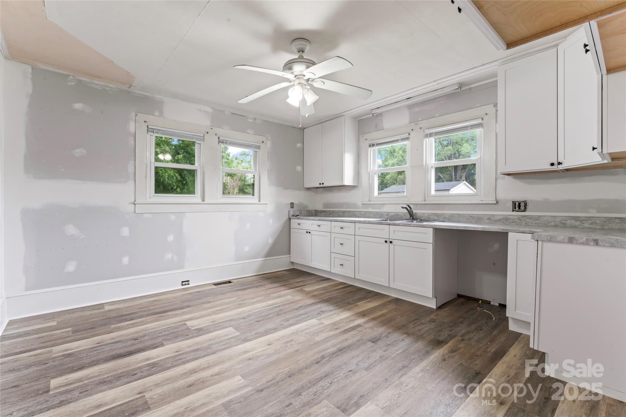 Full of vintage charm, this spacious home near downtown Kannapolis is a rare find! Loved for generations, it features original trim, a beautiful staircase, and French doors to a formal dining room. Main-level bedroom & tiled bath, plus a flex room that would be a great office. Updated kitchen with soft-close shaker cabinets needs your final touches New waterproof vinyl plank floors throughout downstairs. Upstairs has 3 bedrooms (large primary with walk-in closet, and bathroom with clawfoot tub), plus an office/playroom. Updates/renovations are needed but home is livable as-is...it won't take much to "glow-up" this beauty! Heat throughout; central HVAC downstairs with easy potential to add upstairs. Outside: deep ½ wrap porch with wrought iron rail & brick columns, rear deck with ramp, carport, oversized 2-car garage w/ workshop. Beautiful yard! 2.41-acre lot behind (MLS #4171174) can be neg with purchase!