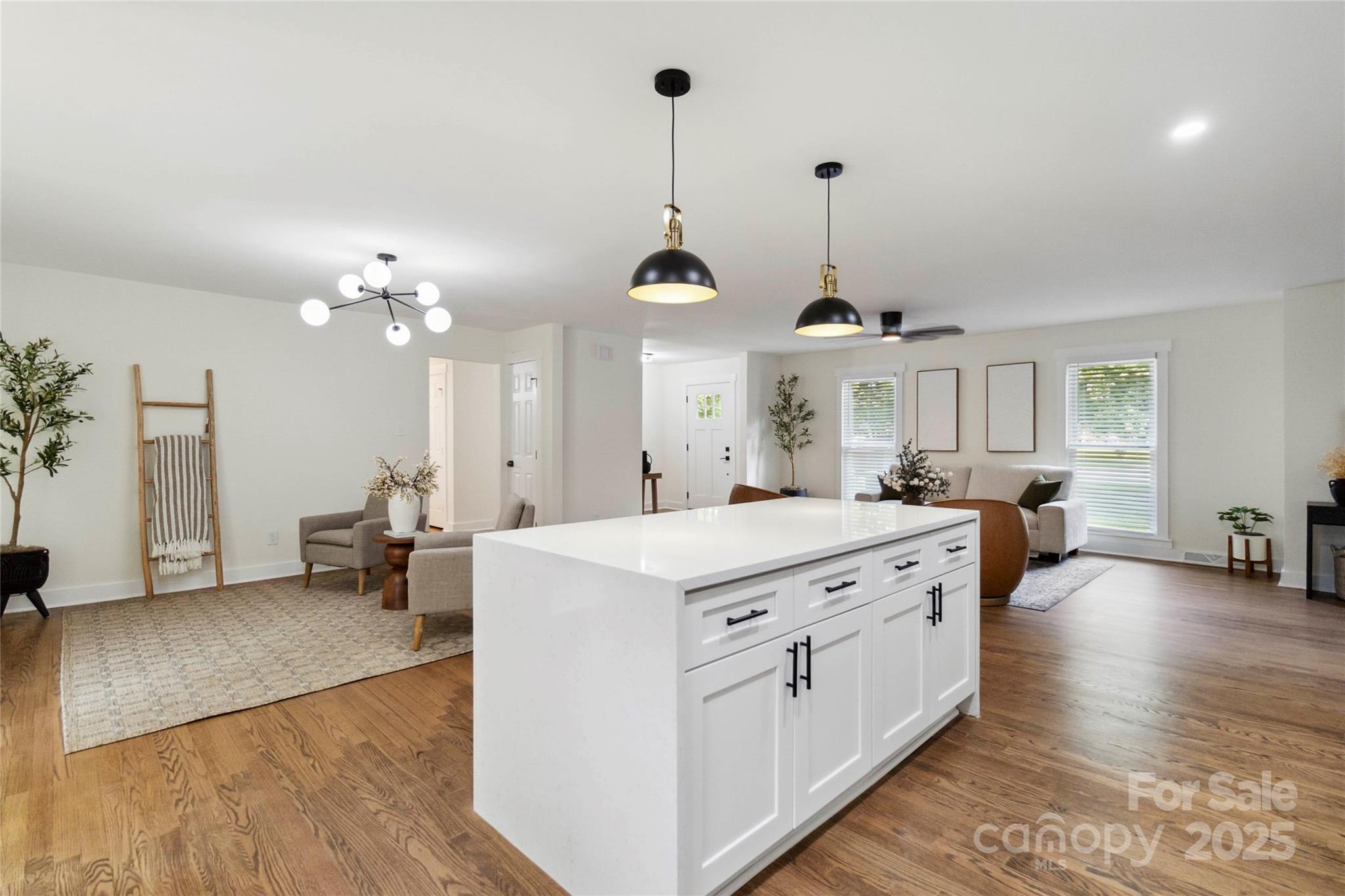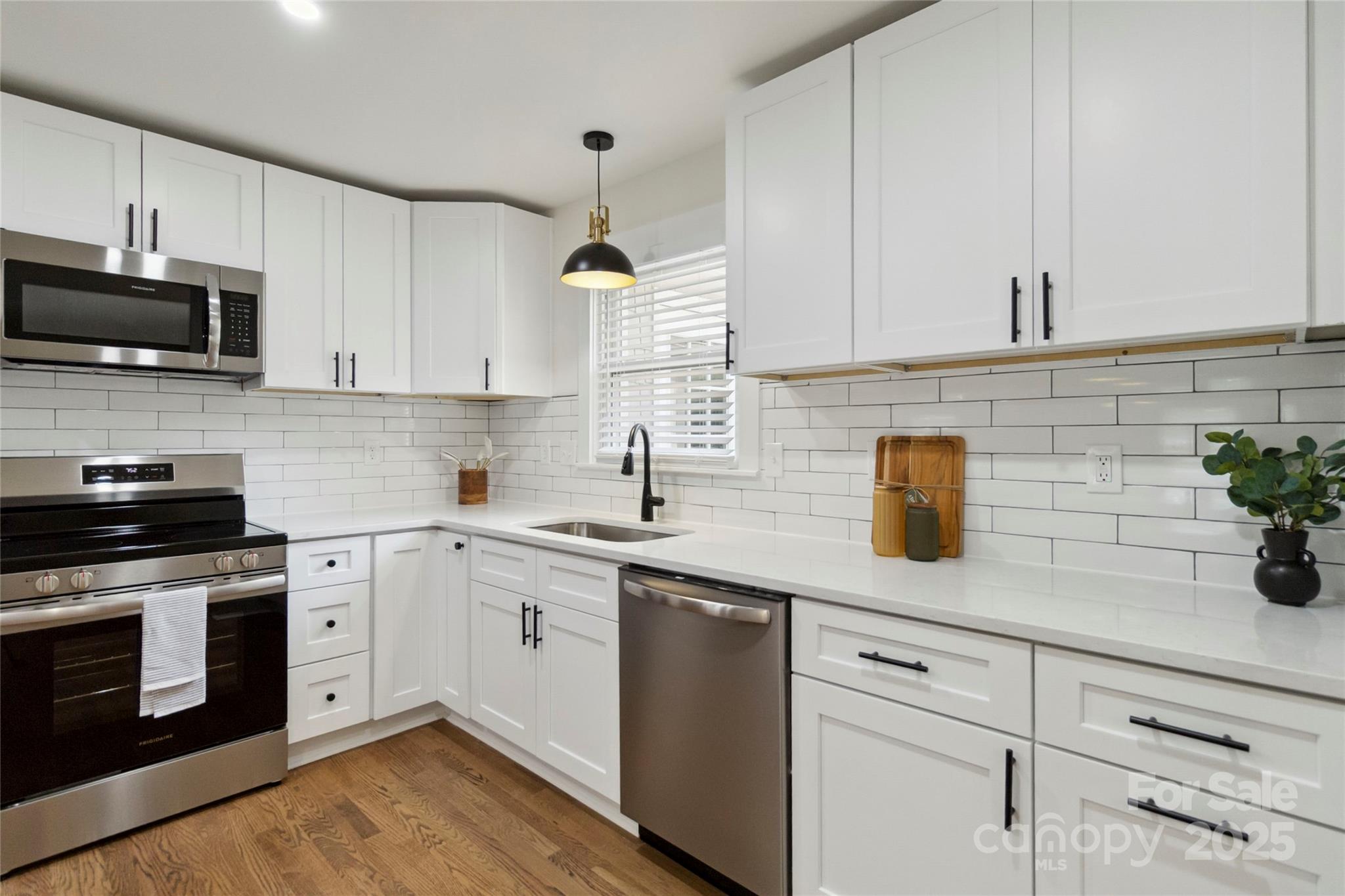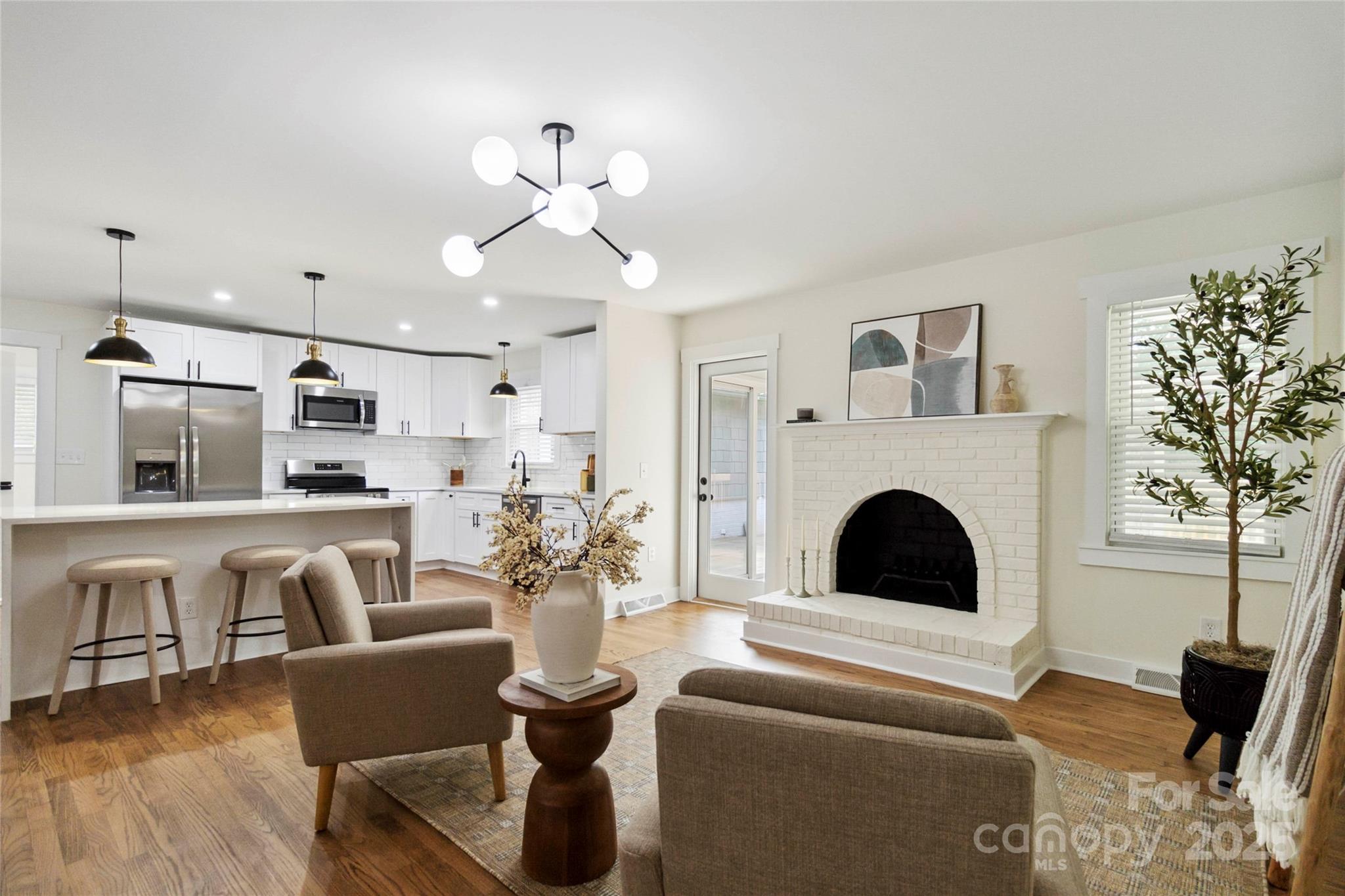 Fully updated brick ranch on a large corner lot in a great school district. Floor plan has been opened up so kitchen, dining room, living room and den flow seamlessly from one to another. Hardwoods throughout the home have recently been refinished. Kitchen features new cabinets, quartzite countertops, stainless appliances, new stainless appliances and light fixtures. Hall bath features new vanity, shower, tile floor, toilet and lighting. Primary bathroom features double vanity and large walk in shower. Primary suite features generous closet. Home has brand new roof with architectural grade shingles and some new decking. New large deck and railing provides outdoor living. Cozy sunroom provides a great space to relax. Six foot tall wood privacy fence encloses the entire badkyard.