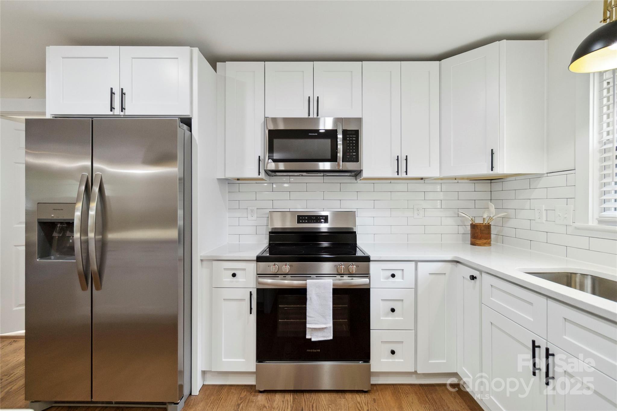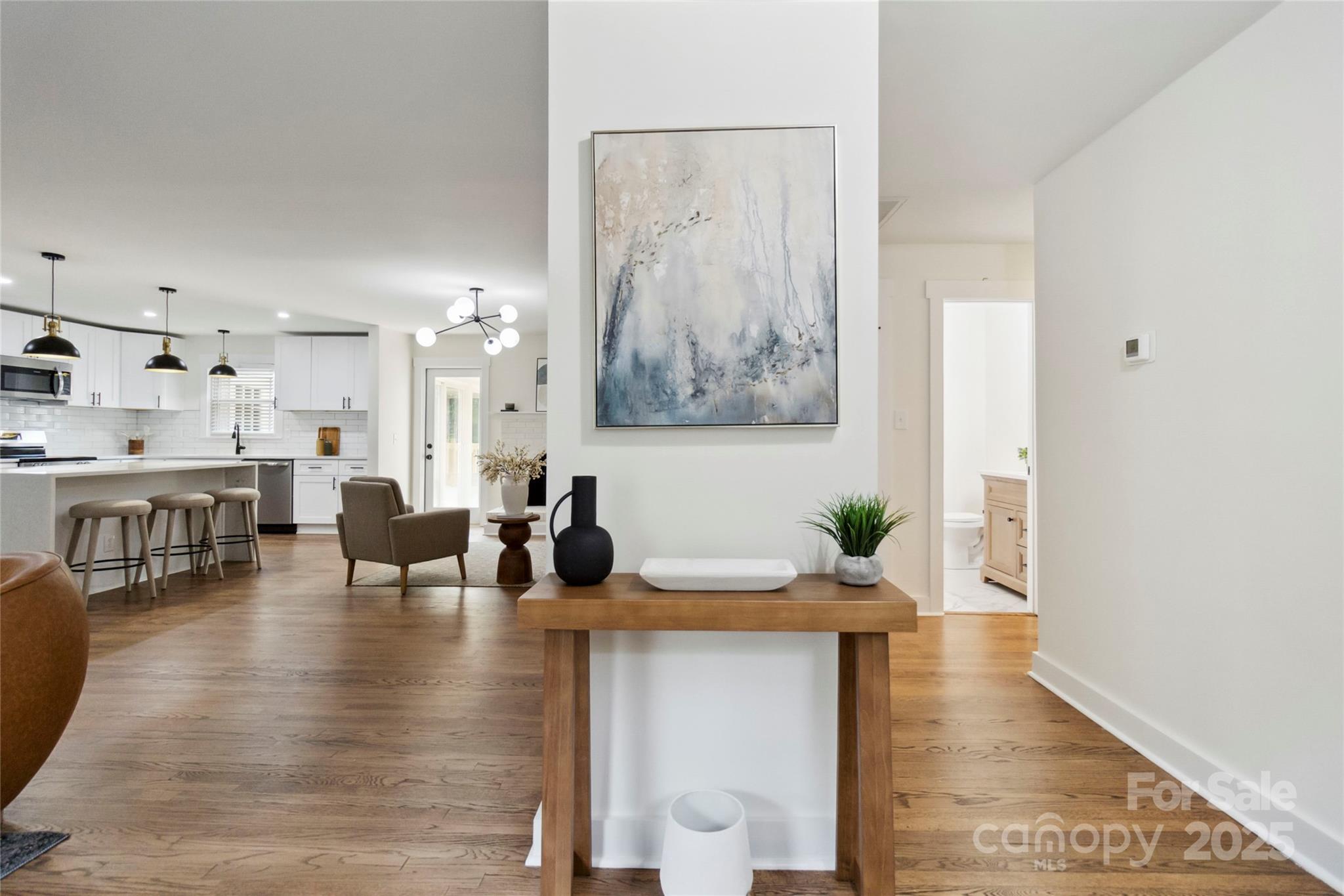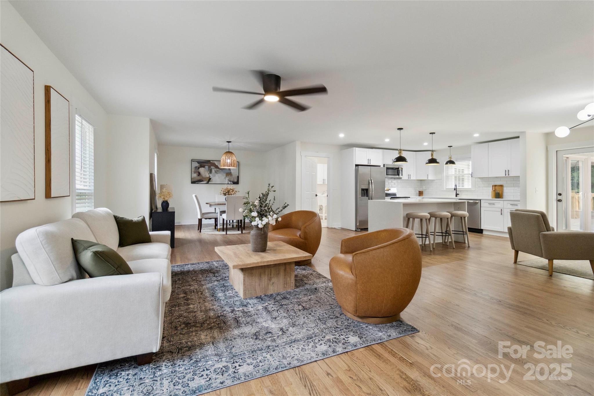 Fully updated brick ranch on a large corner lot in a great school district. Floor plan has been opened up so kitchen, dining room, living room and den flow seamlessly from one to another. Hardwoods throughout the home have recently been refinished. Kitchen features new cabinets, quartzite countertops, stainless appliances, new stainless appliances and light fixtures. Hall bath features new vanity, shower, tile floor, toilet and lighting. Primary bathroom features double vanity and large walk in shower. Primary suite features generous closet. Home has brand new roof with architectural grade shingles and some new decking. New large deck and railing provides outdoor living. Cozy sunroom provides a great space to relax. Six foot tall wood privacy fence encloses the entire badkyard.