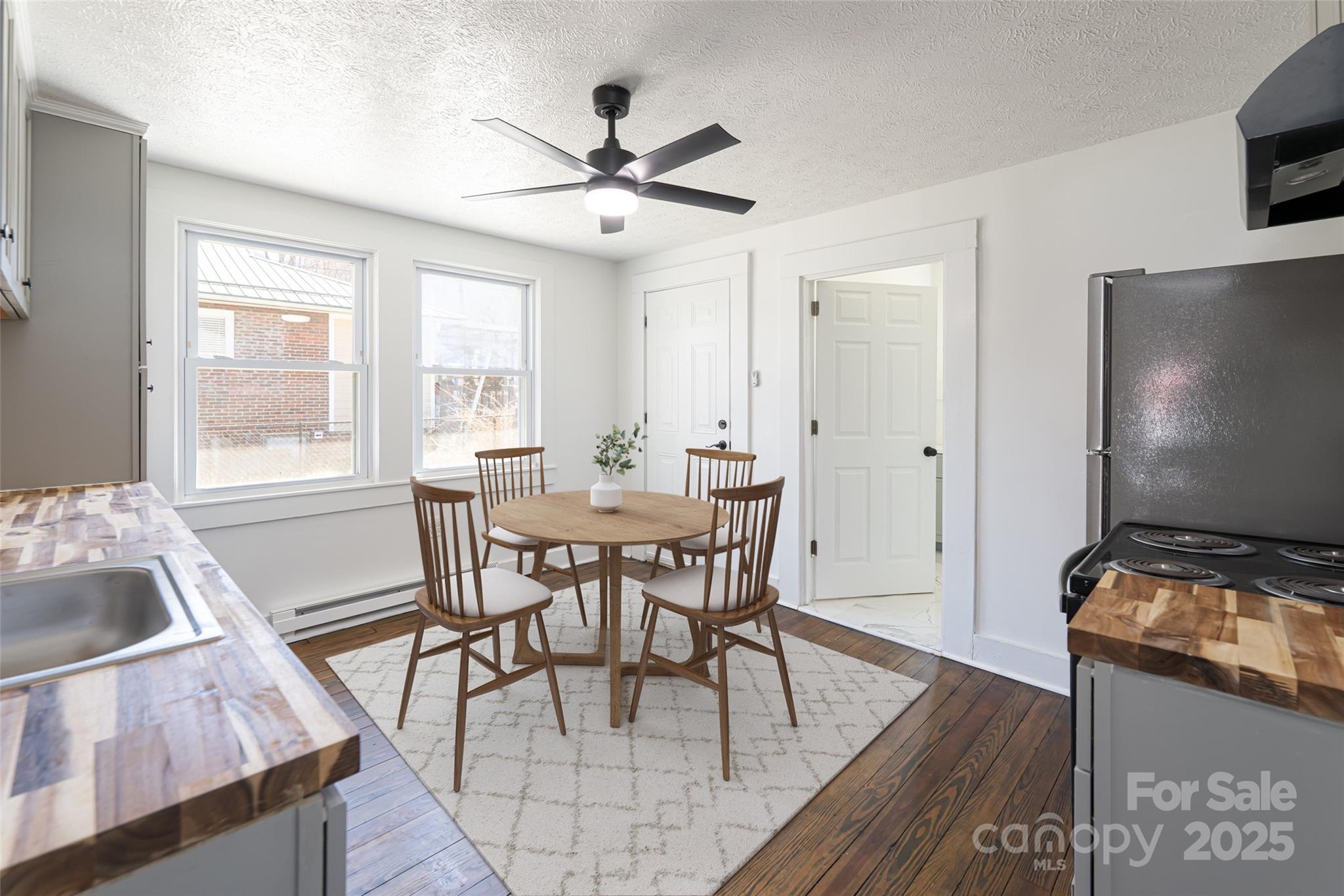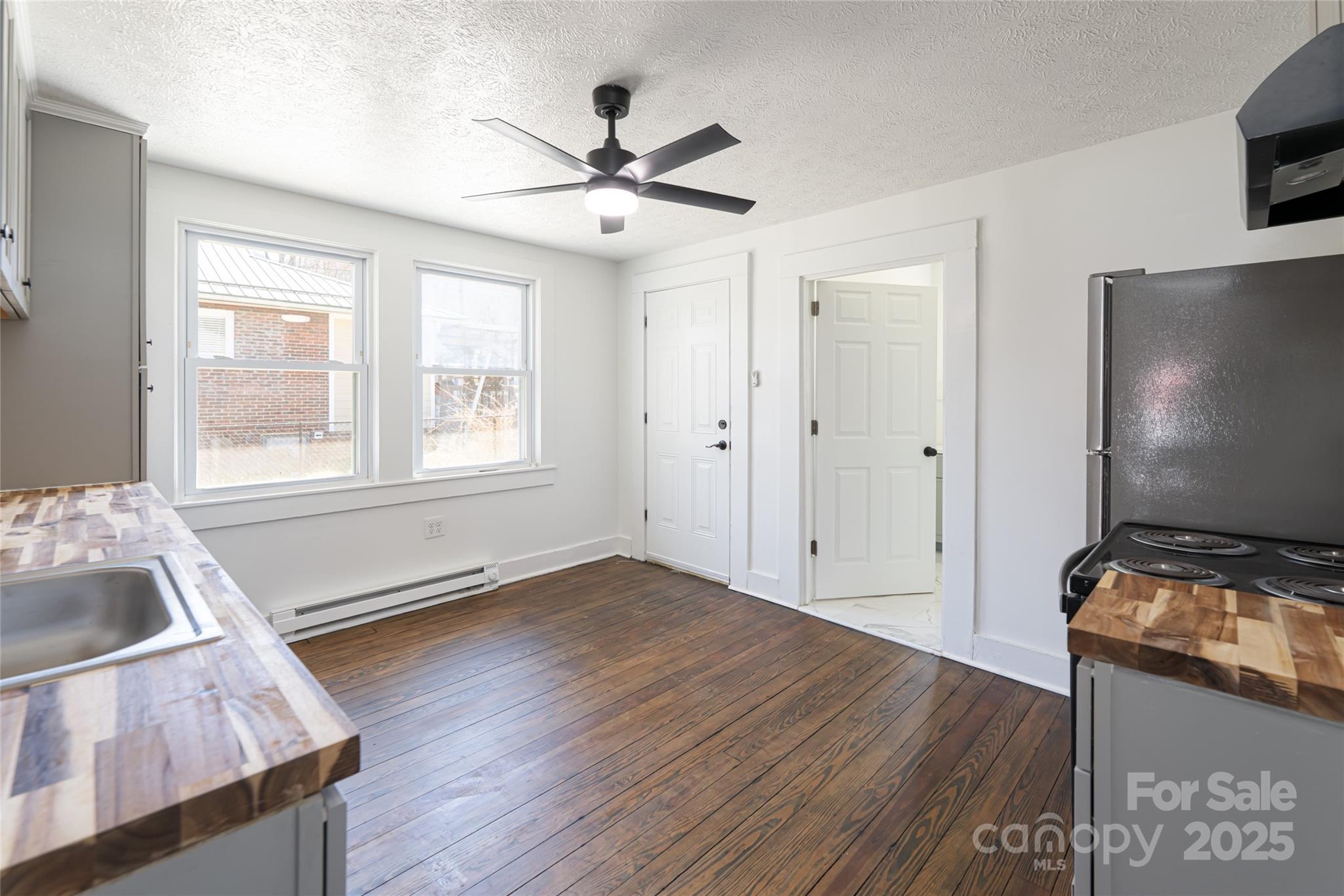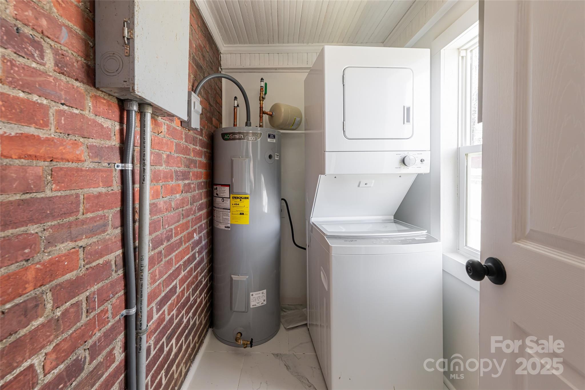 This charming brick bungalow, once a duplex, offers a cozy and updated living space. The kitchen and bathrooms have been thoughtfully renovated, and the home also features a modernized electrical system and dual mini splits for efficient heating and cooling. This home is perfect for those looking for a great starter with the potential to add their personal touch. The property includes a shared driveway and a spacious detached garage with a party wall, characteristic of the "Mill Homes" in Beacon Village. The large section of the garage painted brown belongs to this home. This home previously had a long term renter, great rental income potential. Bonus space could be configured as additional bedroom or office space.
