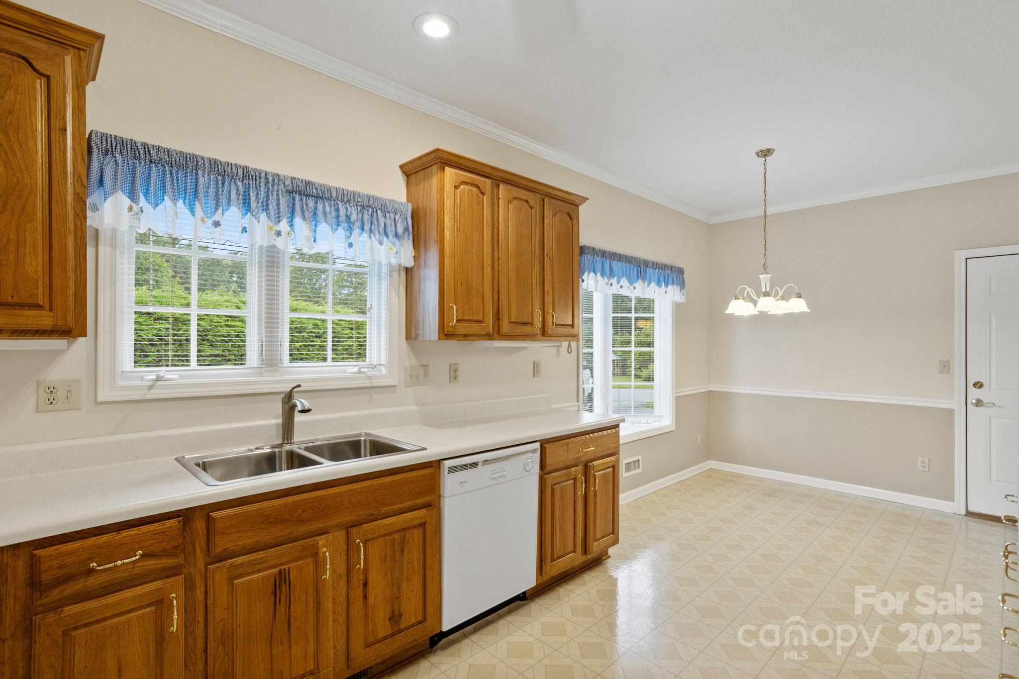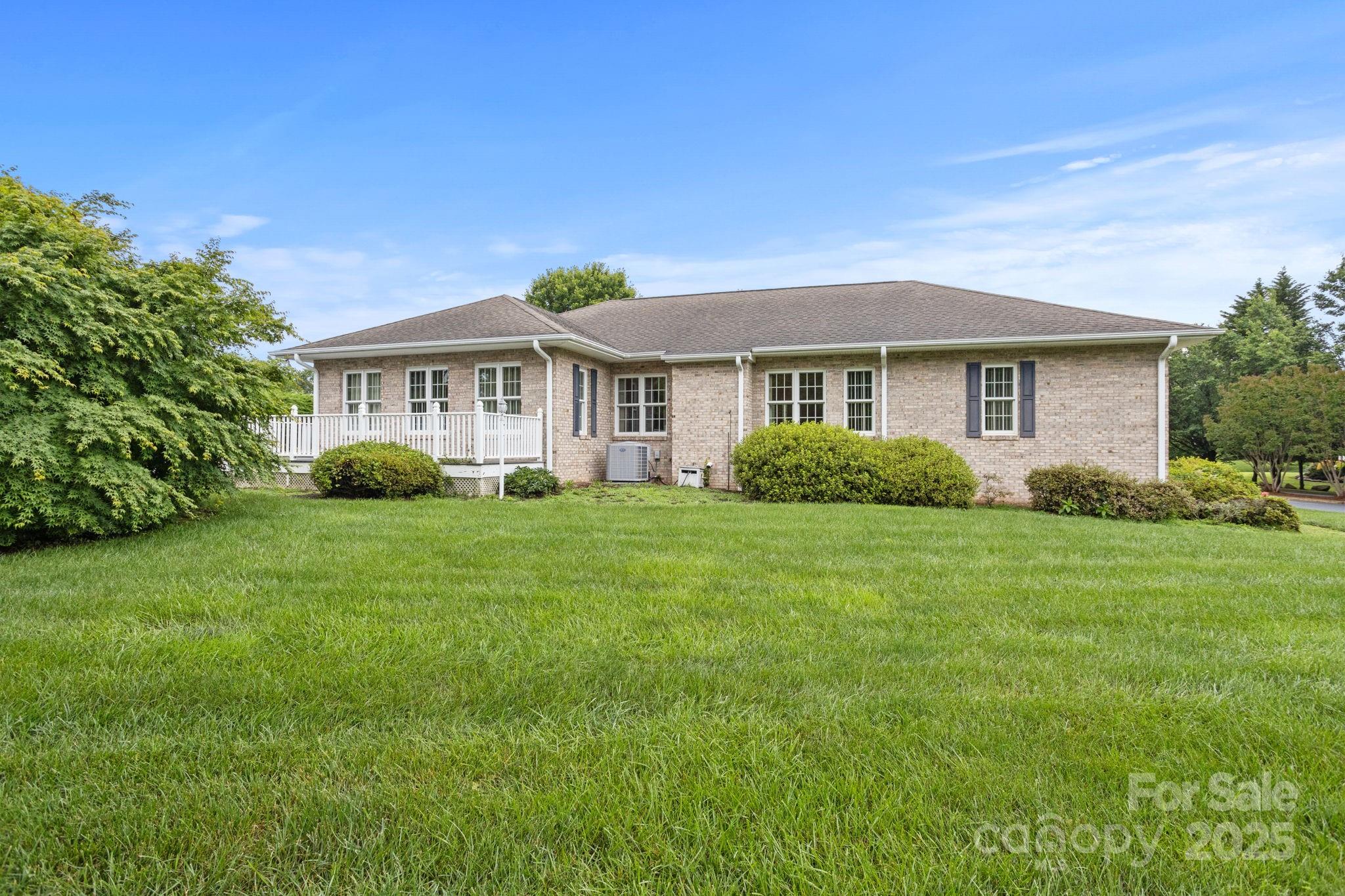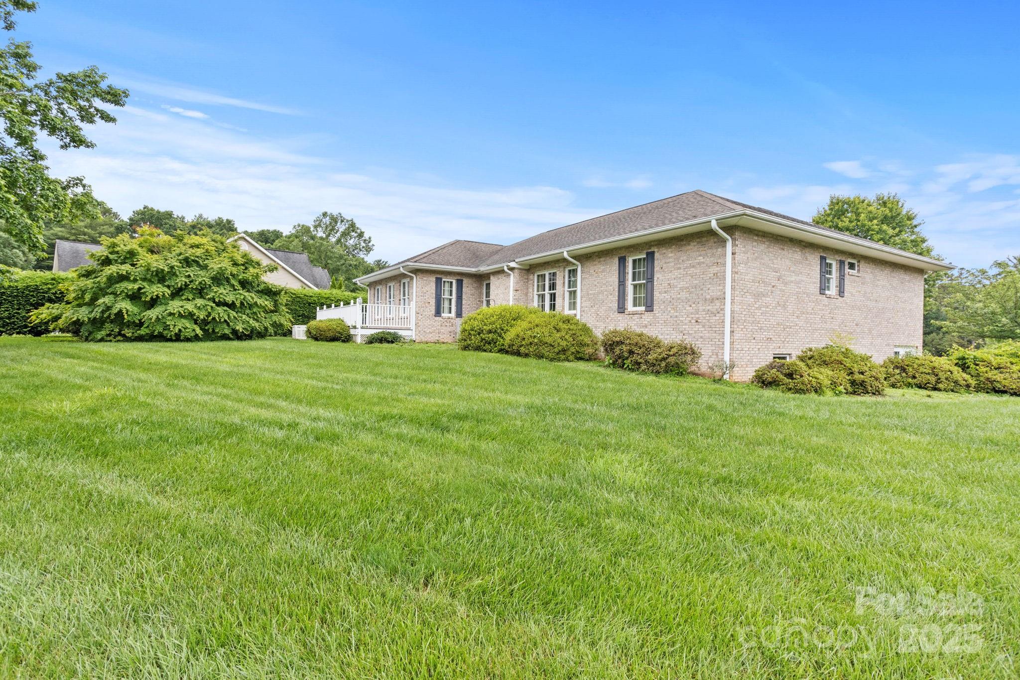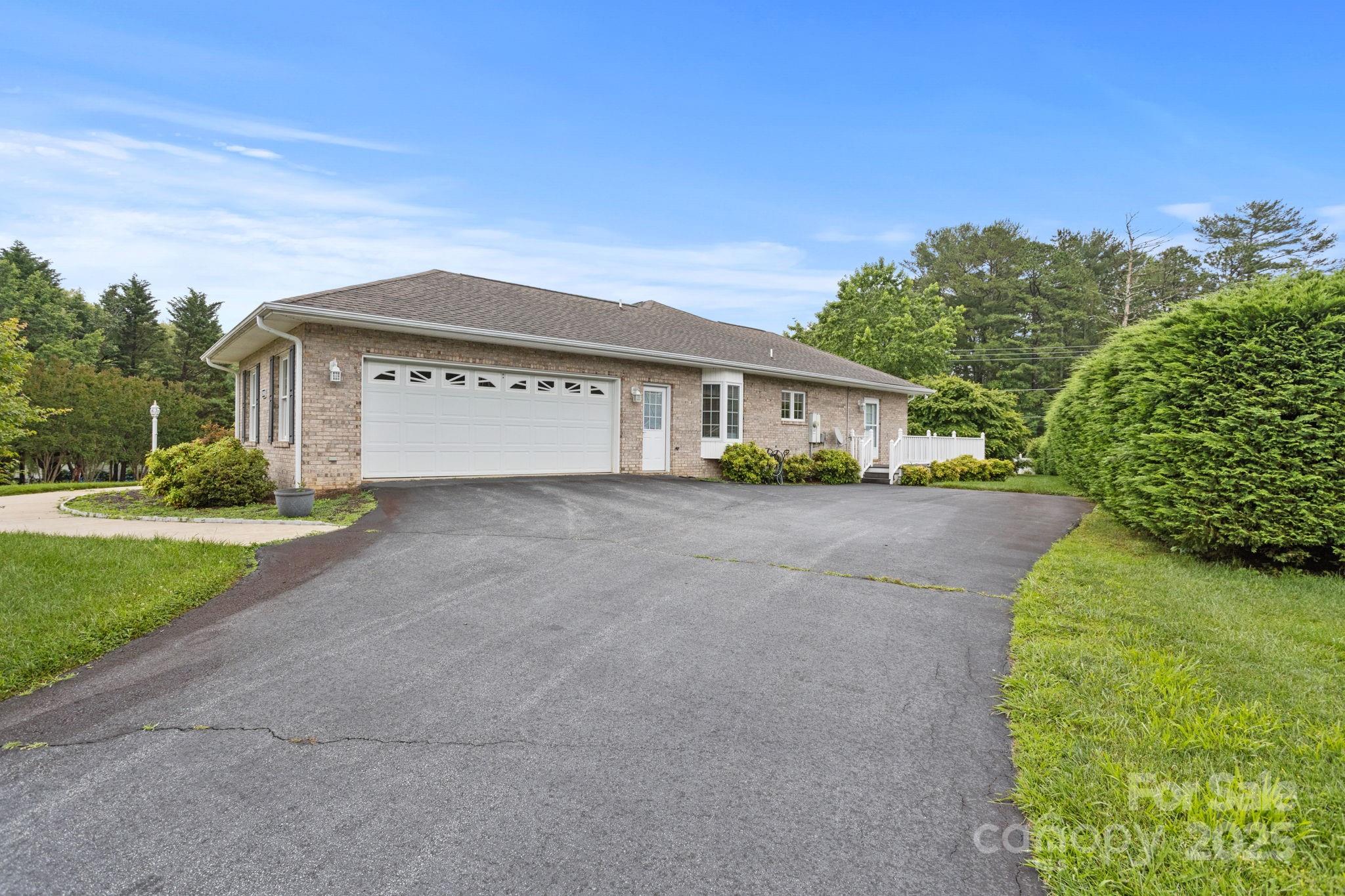 Charming one level home with level yard and driveway in highly desirable Classic Oaks. This home is situated on a 0.49 acre private gorgeous corner lot. This well maintained home features 9' ceiling height, hardwood floors, living room with gas fireplace, spacious kitchen with abundance of cabinetry, breakfast area, dining room, fantastic sunroom/den area, primary suite with walk-in closet, double vanity and walk-in shower, 2 guest bedrooms and full bath, laundry area and powder bath with pedestal sink. The huge unfinished basement with concrete floor provides tons of storage space and workshop space. 2 car garage with utility sink. Generator. Great location- Close to downtown Hendersonville, shopping, grocery stores and just a short drive to the airport. Relax on the front porch or the composite deck and enjoy the natural beauty that this lot offers.