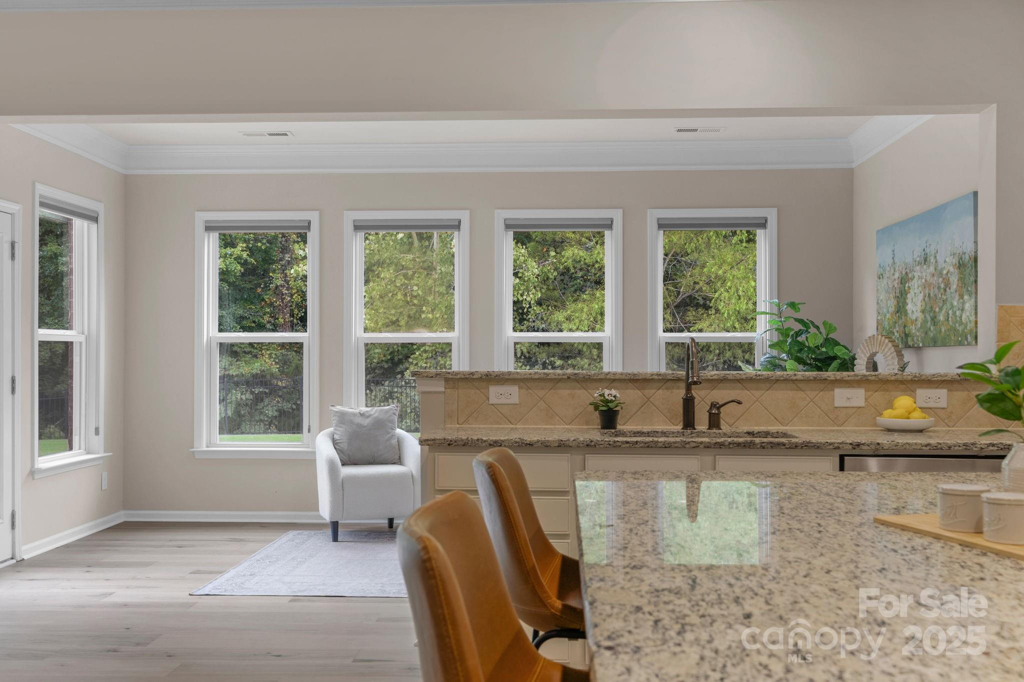 Beautifully updated home in one of Marvin’s most sought-after neighborhoods! Situated on a private, wooded lot w/flat backyard, 6-bedrms, 5-bths. Fresh paint & newly refinished hardwood floors & new carpets. Guest suite & full bath on main. Family room w/wall of windows & gas fireplace, gourmet kitchen w/white cabinetry, gas cooktop, ss appliances (including a brand new, never-used oven & microwave) Upstairs, luxurious primary suite w/spacious sitting area, beautifully updated ensuite bath featuring white cabinets & new seamless glass shower. 3 additional bedrooms each w/direct access to full baths, large bonus room provides endless flexibility. The 3rd floor w/built-in desk area & private 6th bedroom w/full bath & walk-in closet. New roof & gutters 2024. 1st/2nd floor HVAC 2021. Resort Style amenities. Close to Marvin Ridge Schools, Low Union County Taxes. Don't miss this rare opportunity to own a move-in ready home in The Chimneys of Marvin, where charm meets modern convenience.