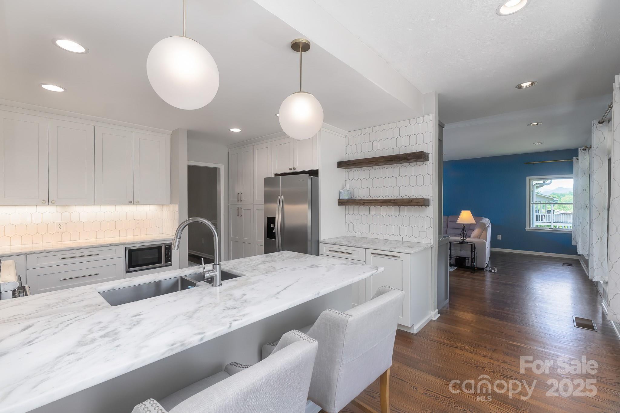Tucked away at the end of a quiet road, this beautifully updated 3-bedroom, 3-bath home offers the perfect mix of privacy, comfort, and timeless mountain charm. Step inside to find rich hardwood floors, a cozy wood-burning fireplace, and a custom updated kitchen designed for both everyday living and elegant entertaining. The luxurious master suite boasts a spa-like bath with a walk-in tile shower, creating a serene escape. Two versatile bonus rooms offer ideal space for a home office, hobby room, or guest overflow. Downstairs, you'll find an additional living area and bedroom—perfect for extended family or guests—along with an abundance of storage space. A two-car garage, paved easy access, and sweeping mountain views complete this exceptional property, all just minutes from the heart of town. This is mountain living at its finest!