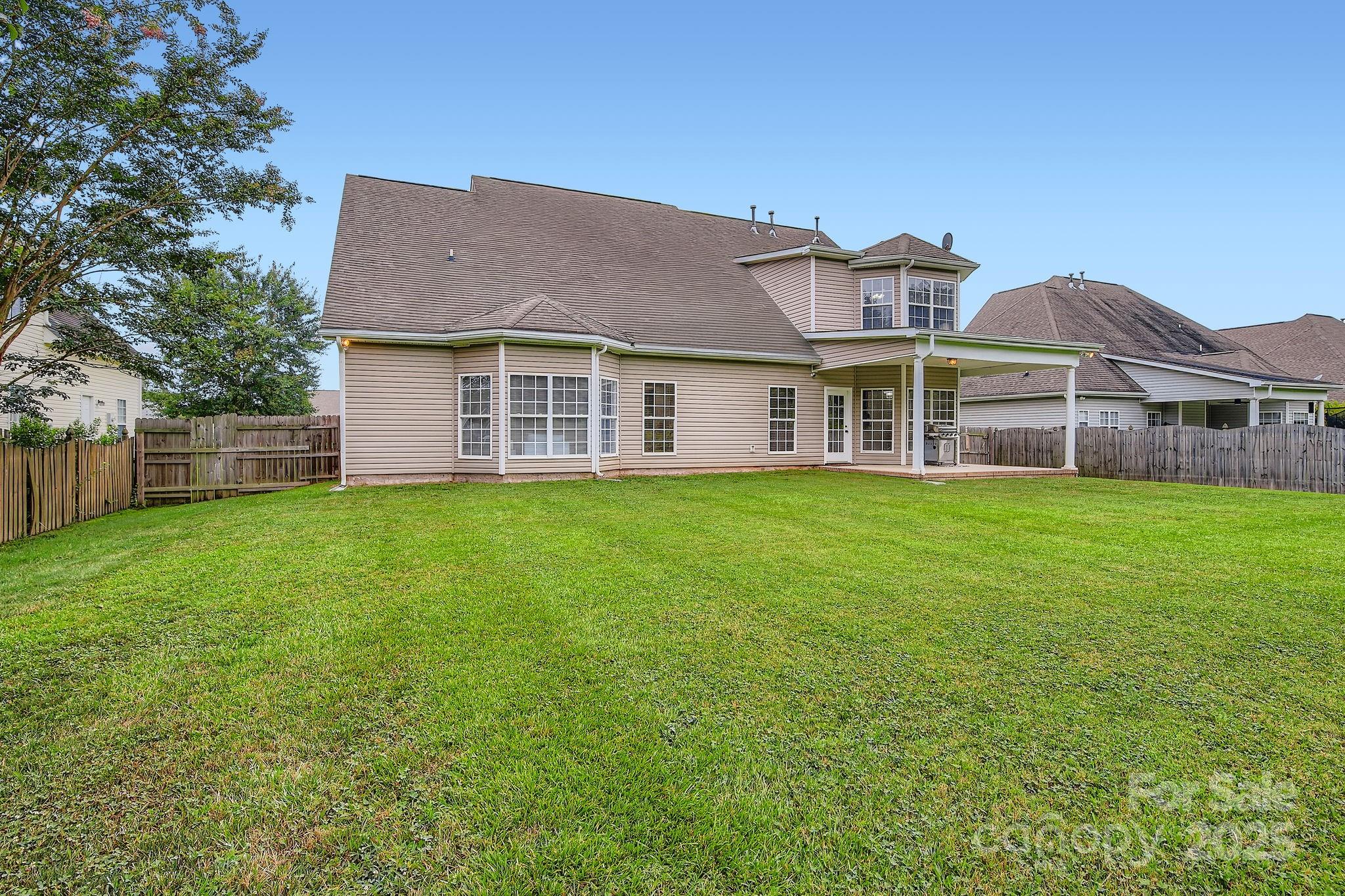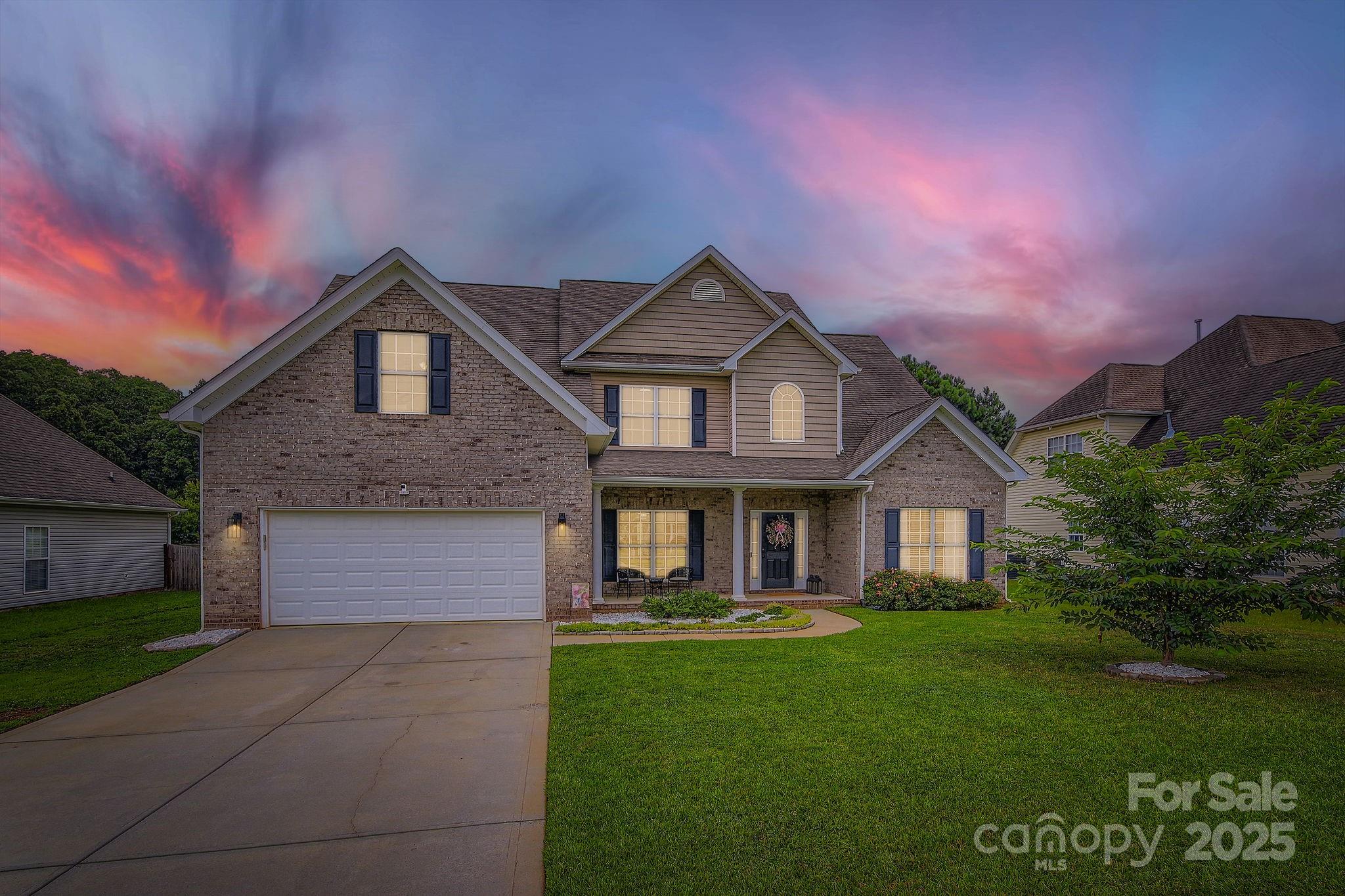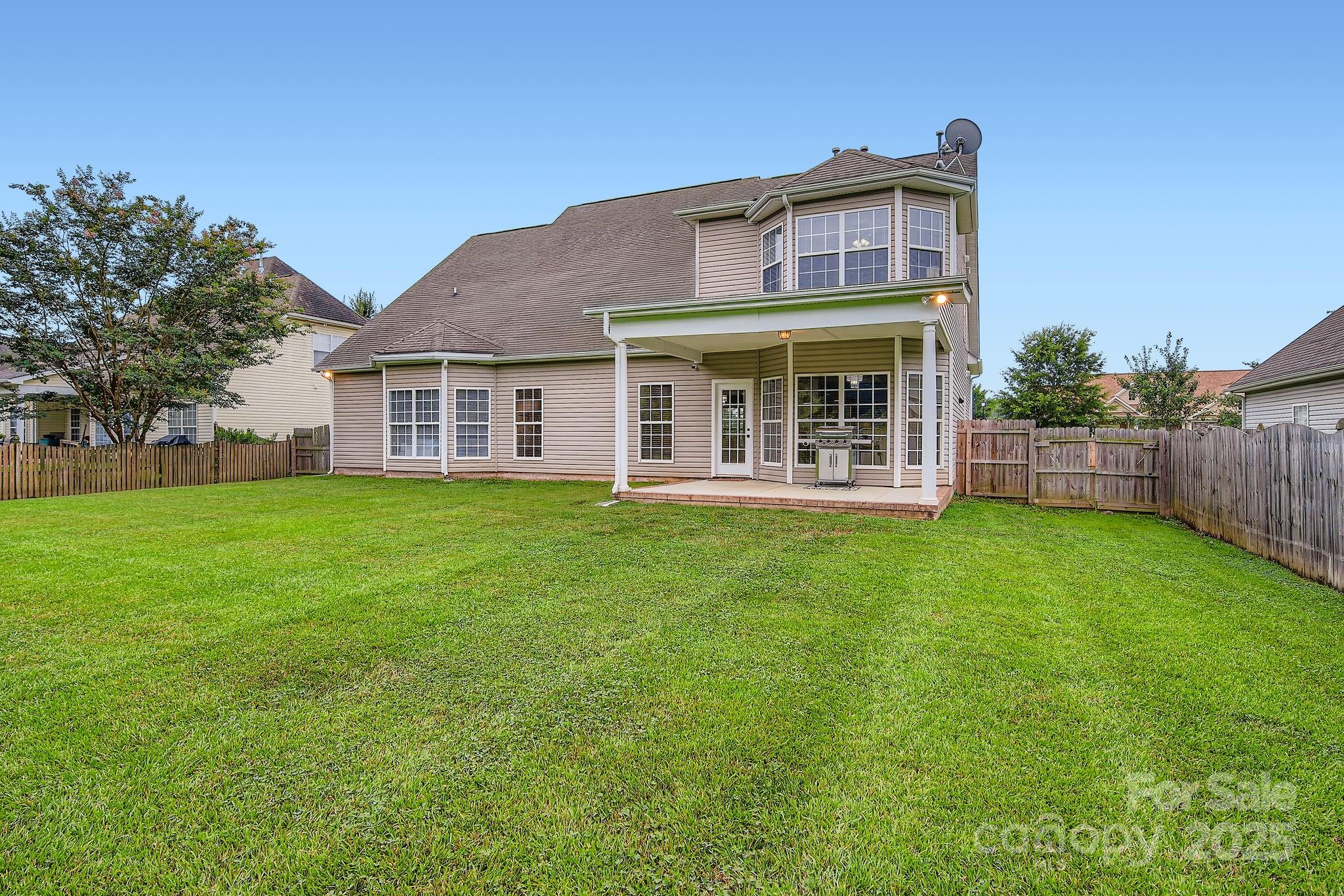 Updated & Stately 5BR/2.5BA Home In The Coveted Hamilton Place Community Offering 3,300 sq ft Of Thoughtfully Designed Living Space where pride of ownership is very evident. Sunlight pours in showcasing lovely luxury vinyl plank flooring. Dedicated home office with french doors, dining room with chair rail molding & cozy fireplace with decorative mantle highlight the traditional charm of this versatile floor plan. Open kitchen boasts granite counters, large breakfast bar, pantry PLUS newer stainless appliances. Main-level primary suite features bay window, tray ceiling, large walk in closet, renovated spa-like bath with tile flooring, dual vanities, chic mirrors, soaking tub & large fully tiled walk-in shower with dual shower heads! Large secondary bedrooms have great closets plus a Jack & Jill bathroom. Enjoy covered front & rear porches with meticulously manicured landscaping & fenced backyard! Just off US-74 Bypass with easy access to Uptown Charlotte. Schedule your preview!