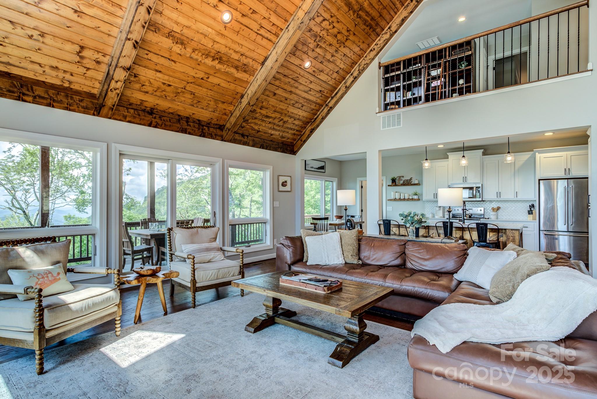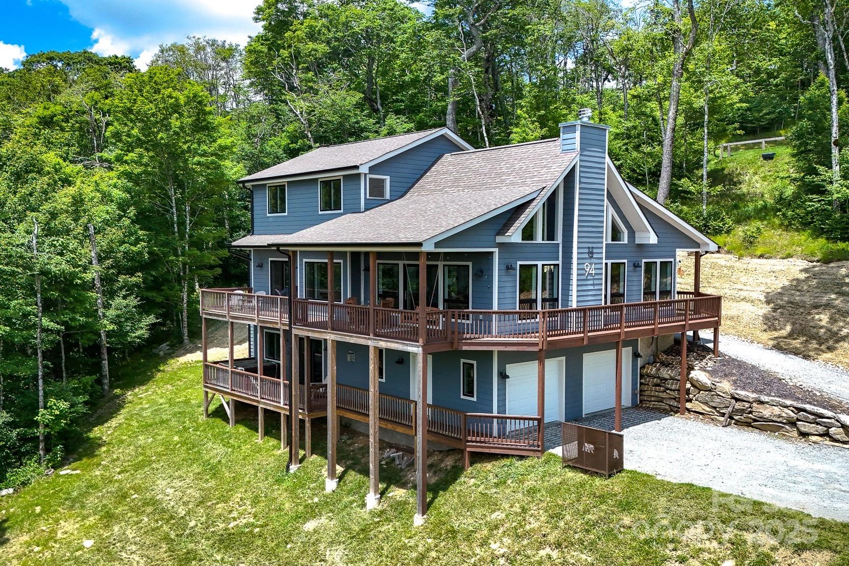 Just in time for summer! Perched at a almost 5,000 feet elevation with long-range views, this ultimate mountain getaway offers some of the coolest summer temperatures in the Southeast. Whether you're dreaming of a serene full-time home or a high-performing vacation rental (grossing over $116K in 2024), this fully furnished luxury retreat checks all the boxes. Step into a spacious open floor plan where soaring tongue-and-groove cathedral ceilings and a warm stone fireplace set the tone for mountain comfort. Expansive windows flood the home with natural light and frame breathtaking southern views from nearly every room. The chef’s kitchen is designed for gathering, featuring a farmhouse sink, center island, generous prep space, and a sunny breakfast nook and dining area. Just beyond, sliding doors lead to a partially covered wraparound deck with a porch swing overlooking Sugar Mountain’s slopes, plus a firepit table for unforgettable evenings under the stars. The main-level primary suite includes deck access, a spa-inspired bath with soaking tub, double vanities, and a huge walk-in closet. Another bedroom, full bath, and laundry room complete the main level. Upstairs offers a flexible loft for a yoga space, reading nook, or home office—plus a bedroom, bonus room currently used as an additional bedroom and a full bath. The lower level is made for fun, with a second living room, fireplace, bar area, game space, bunk room, and access to a bubbling hot tub. Outside, enjoy a grassy yard for cornhole or future fire pit, plus an attached two-car garage in the lower level. The carport on the main level allows easy unloading of groceries and luggage. Having a newer home built in 2021 takes away so many concerns! Just 3 miles from Beech Mountain Resort and 4 miles from downtown Banner Elk’s shops and restaurants, in a small, gated community. This home is ready for your mountain lifestyle—whether you're soaking in the views, hitting the slopes, or hosting weekend getaways.