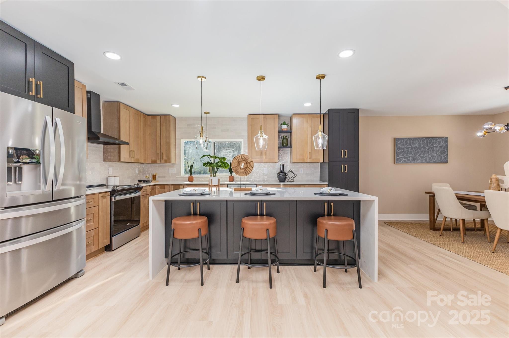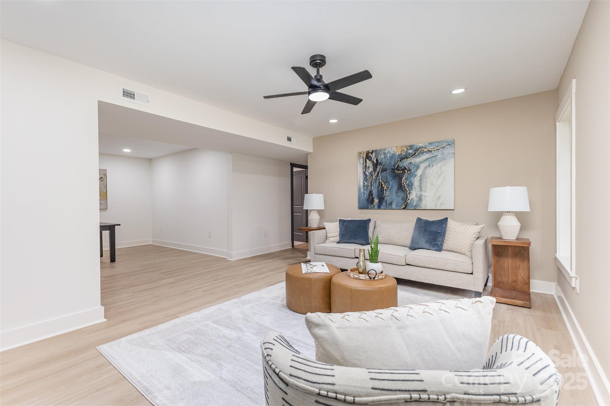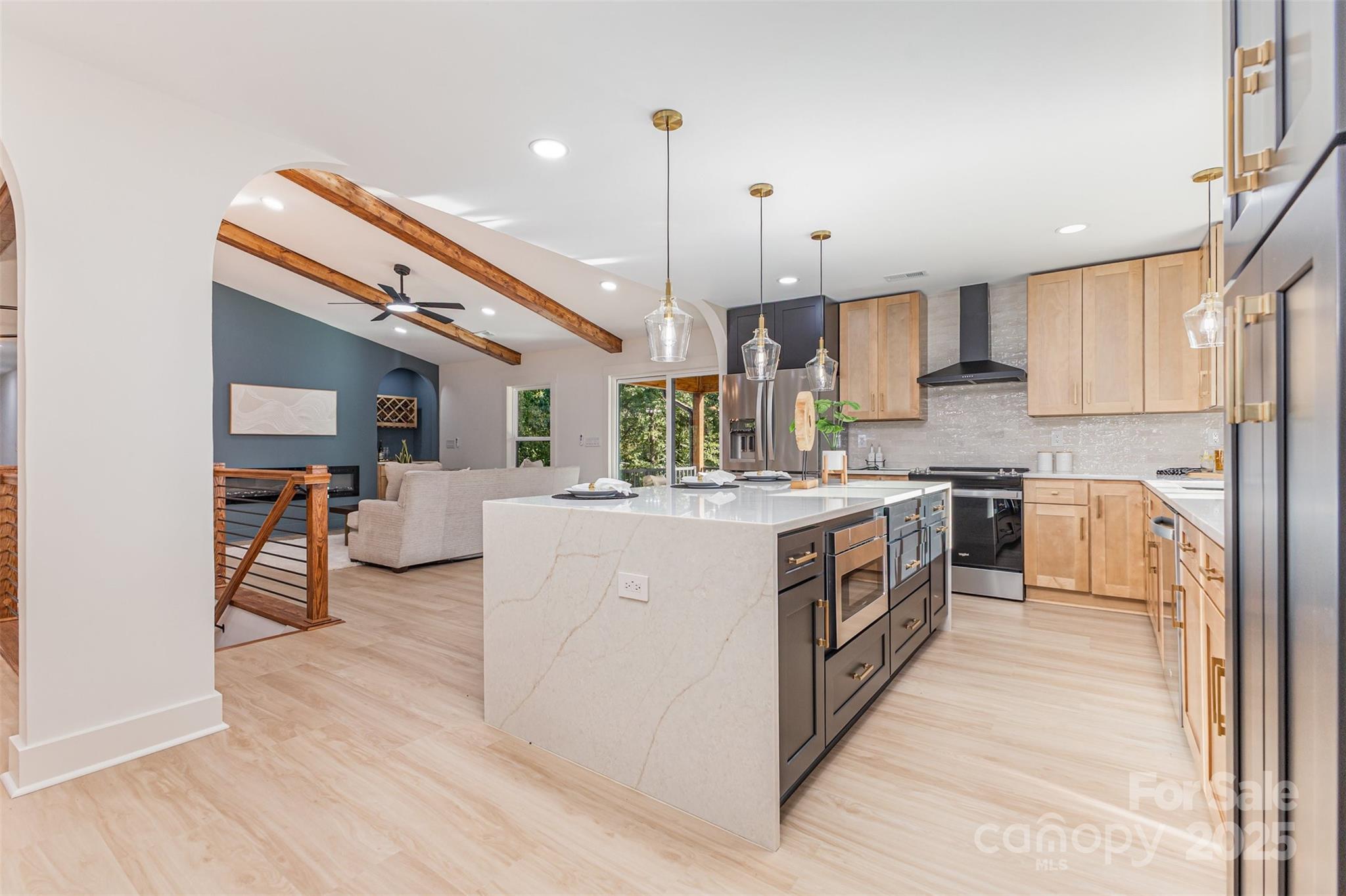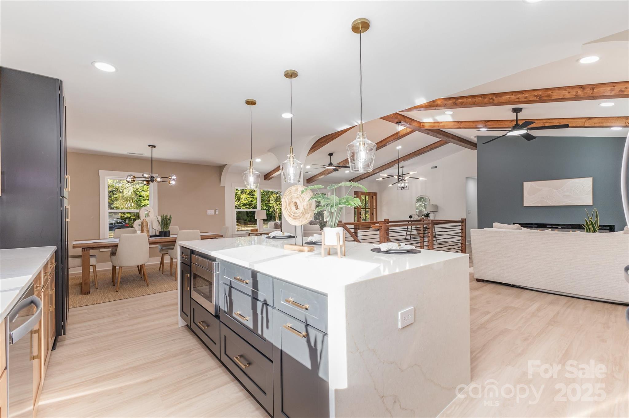 Stunning Ranch-style home with fully finished basement, completely renovated with luxury, high-end finishes and custom details designed for today’s lifestyle. Over 3,600 sqft with brand-new HVAC, plumbing, electrical, and city water/sewer. The main level features a custom kitchen with Taj Mahal countertops, stainless appliances, tall ceilings, large windows, LVP flooring, electric fireplace, spacious covered porch, and a primary suite with custom closet, tiled shower/bath, and double vanity. Two additional bedrooms with custom closets and a tiled full hall bath complete this floor. The fully finished basement adds flexibility with a second primary suite, additional bedroom, full bath, second living room with fireplace, flex/bonus space, office, 2nd pantry, laundry, two-car garage, and storage. Don’t miss the opportunity to own this one-of-a-kind, move-in ready luxury home!