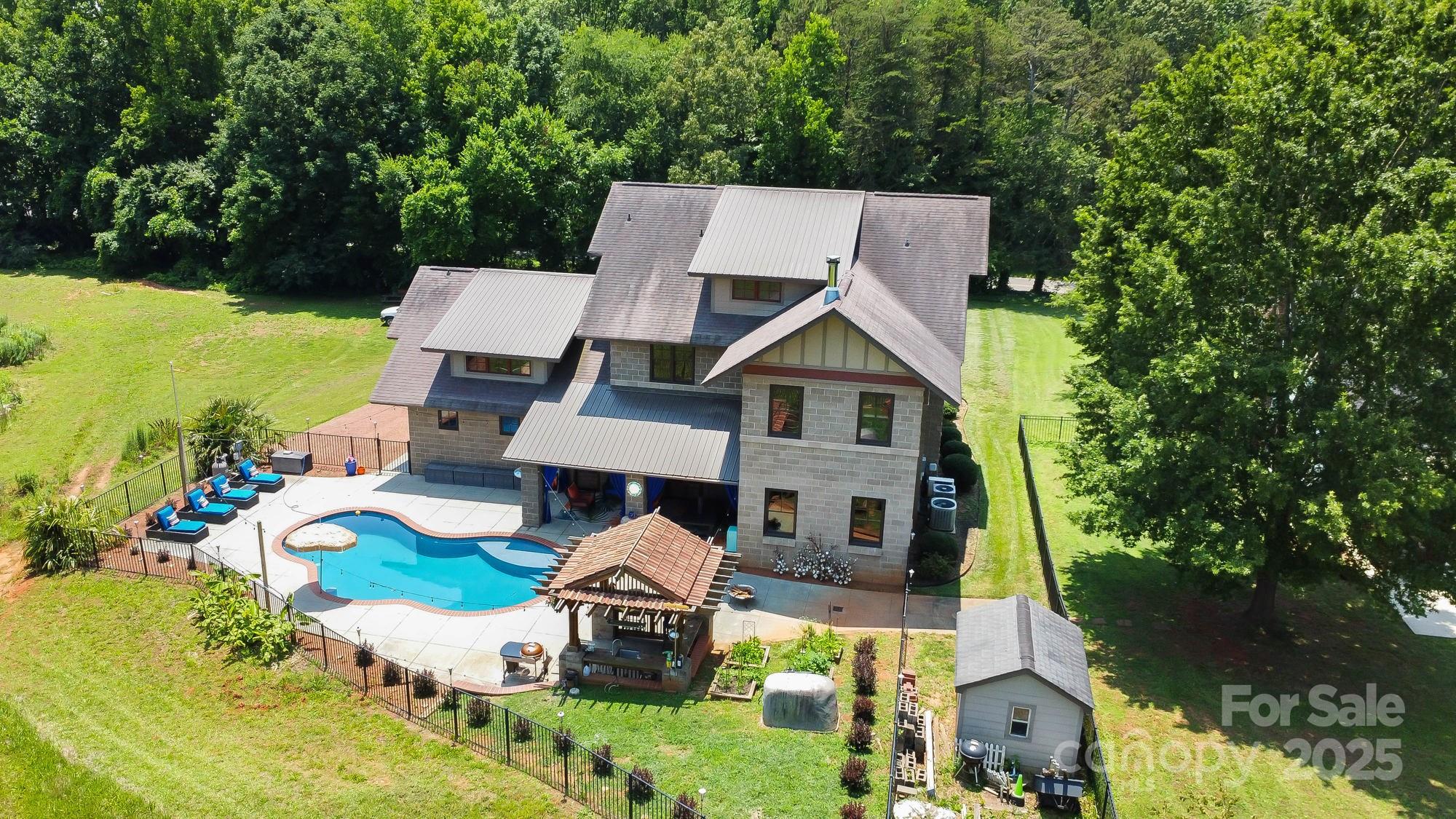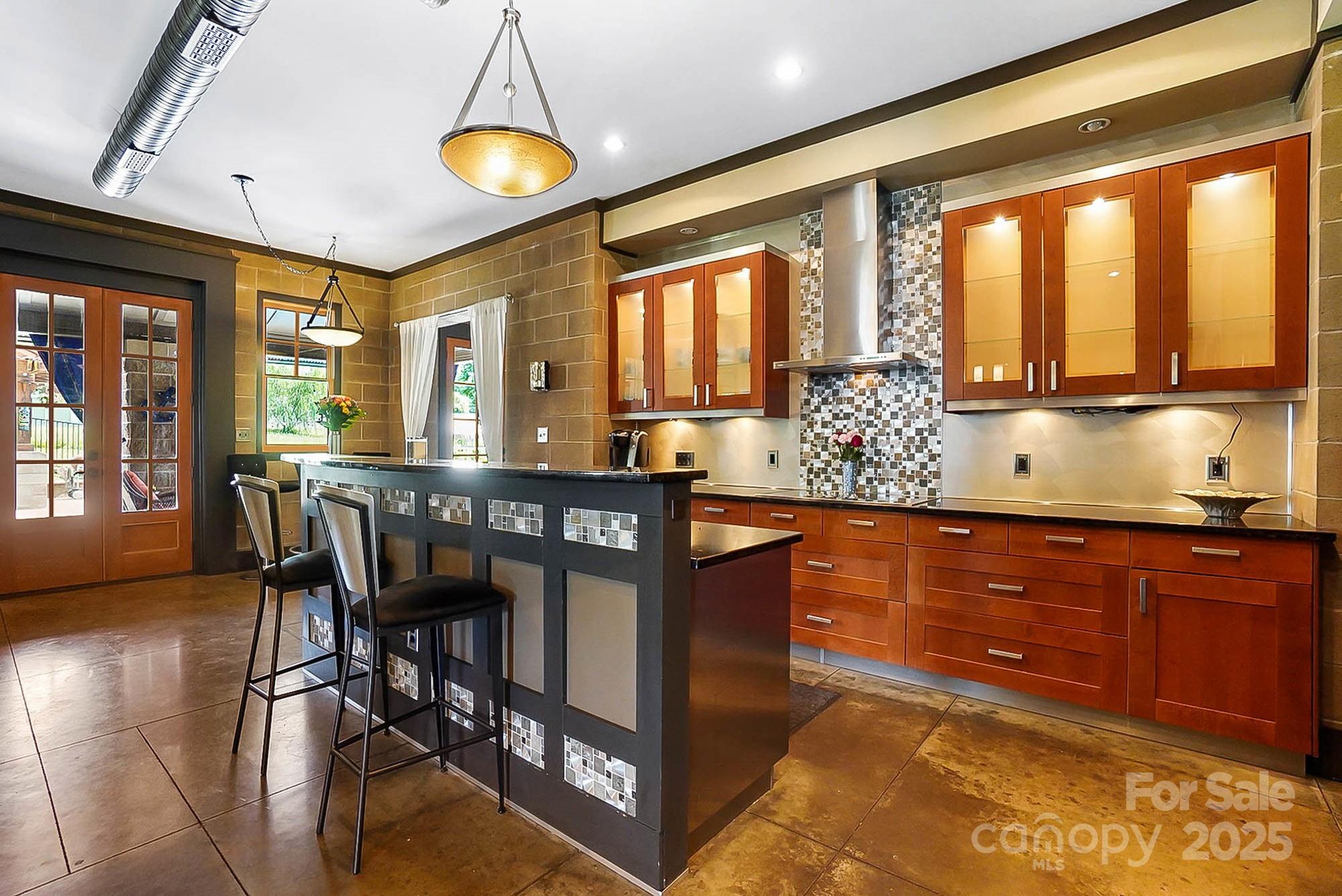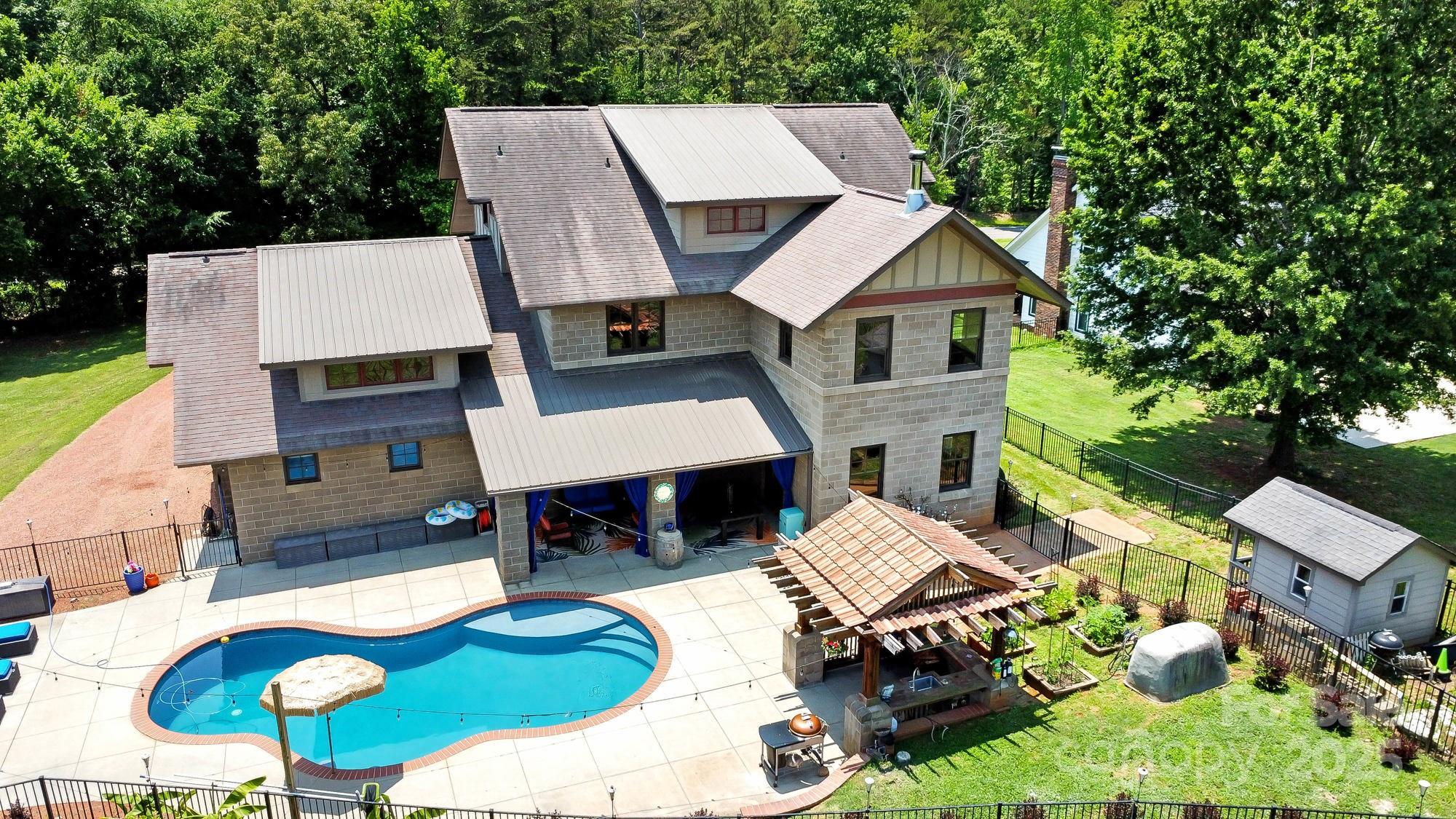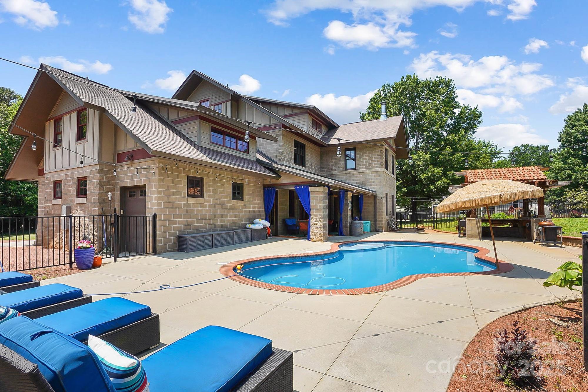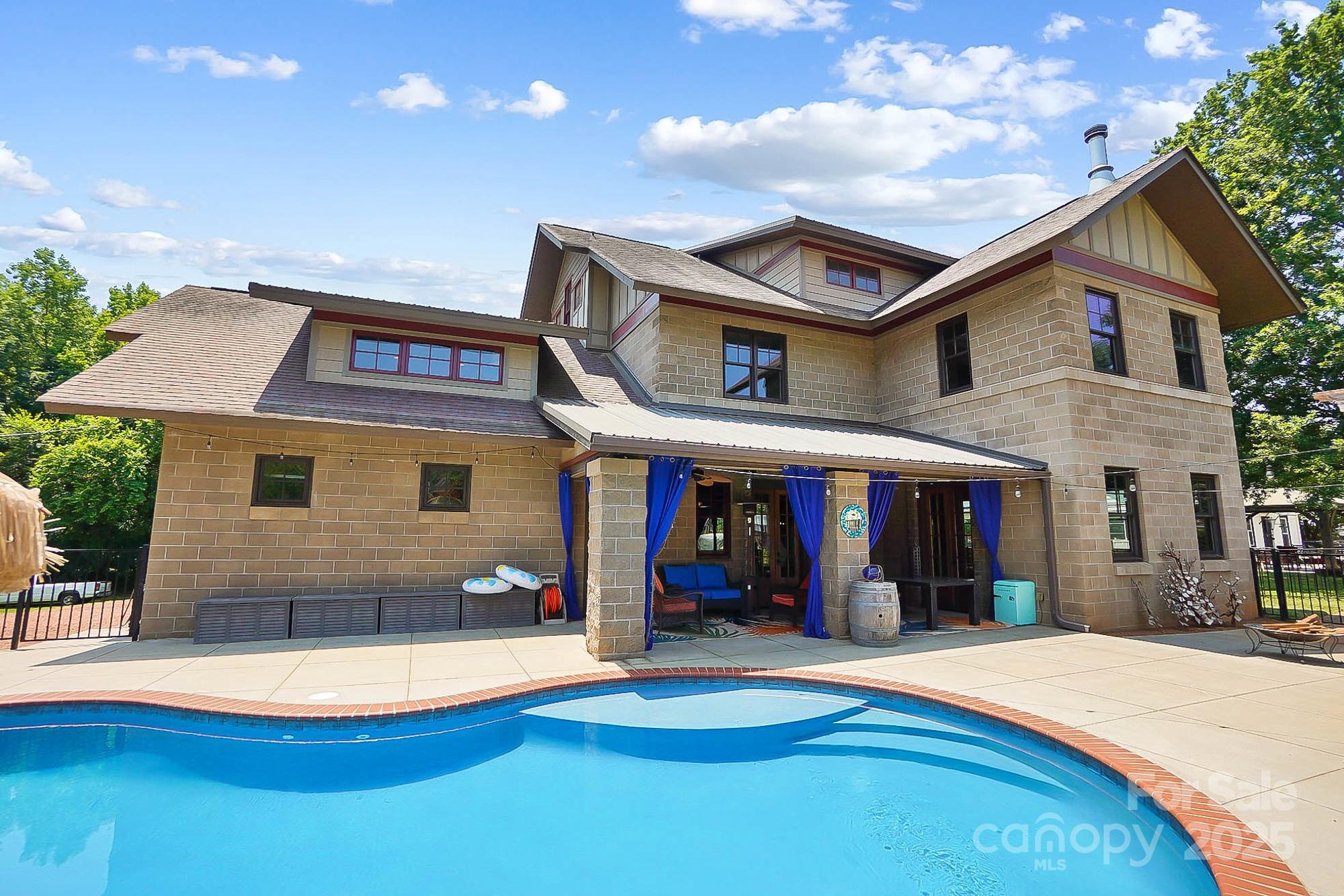 DRASTIC PRICE IMPROVEMENT! DO NOT MISS THIS HOME!!!! Stunning custom 3BR/3.5BTH/2 Bonus, art deco home, inspired by Frank Lloyd Wright, energy-efficient design and luxurious upgrades throughout. Built with Johnson insulated concrete block, this home stays cool in the summer, warm in the winter, and is fire-resistant, creating comfort and major insurance savings. The kitchen features new Bosch double oven, dishwasher, and wine fridge. Downstairs floors wired for radiant heat and include an amazing wood stove that extends to Master. Primary suite w/sitting area boasts a remodeled shower, self-cleaning jacuzzi tub, and designer closet. 3rd floor large media room. Saltwater pool includes quartz concrete finish, tanning ledge, barstools, LED party light, and new pump, filter, and cleaner. Tiki hut has new sink/faucet and terra-cotta roof. Lifetime warrantied M&W Mira metal windows, New HVAC on 1st/3rd floors. Want a carport, plenty of extra decorative concrete block. Truly a Gem!