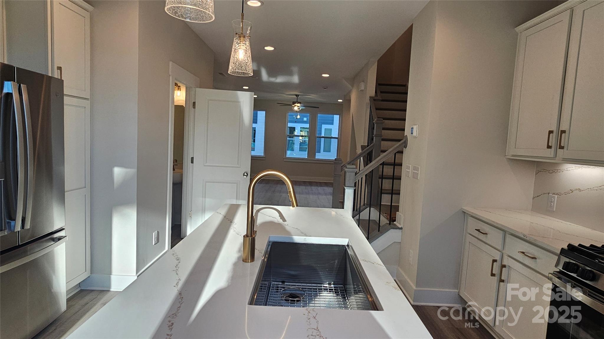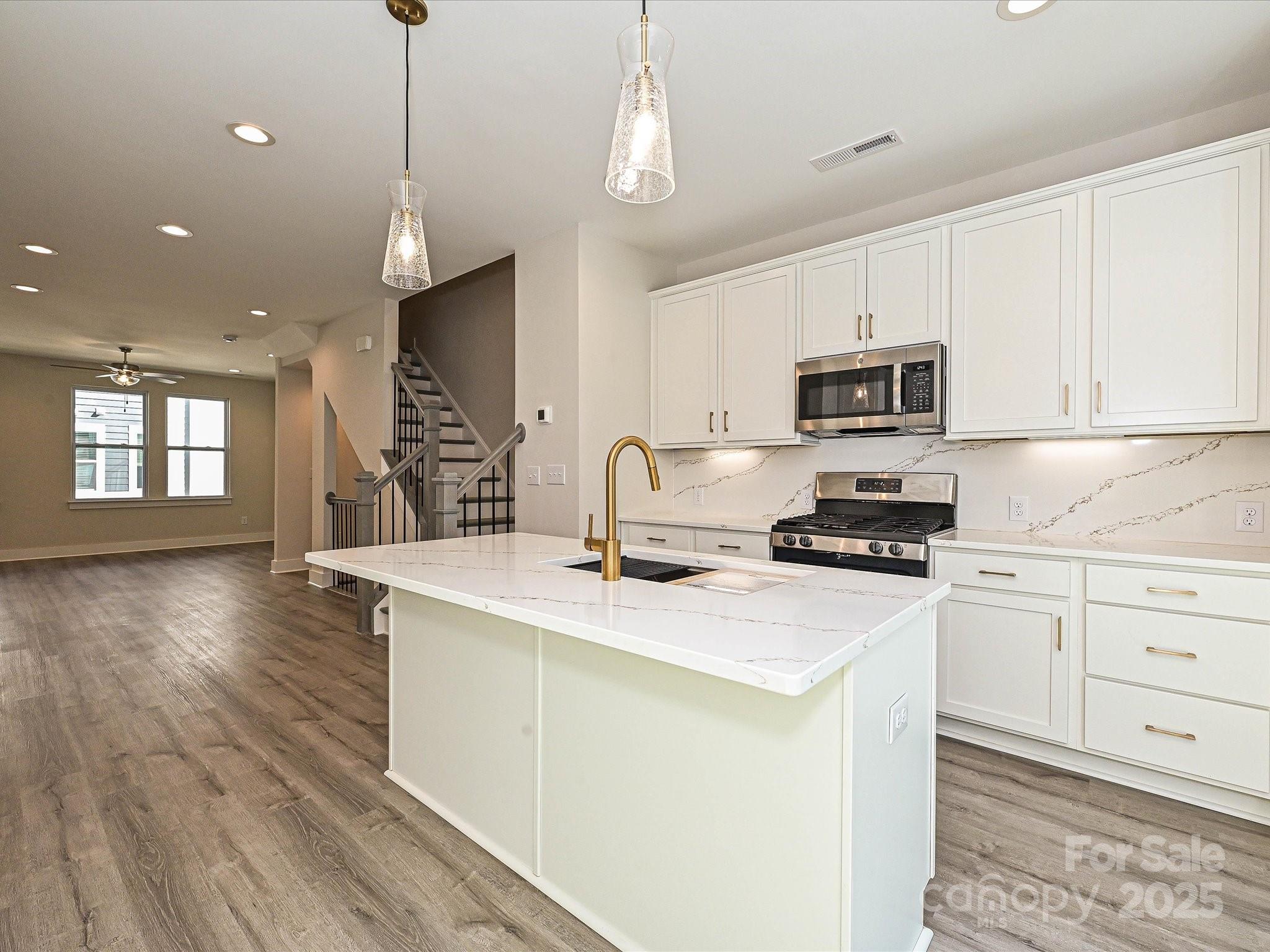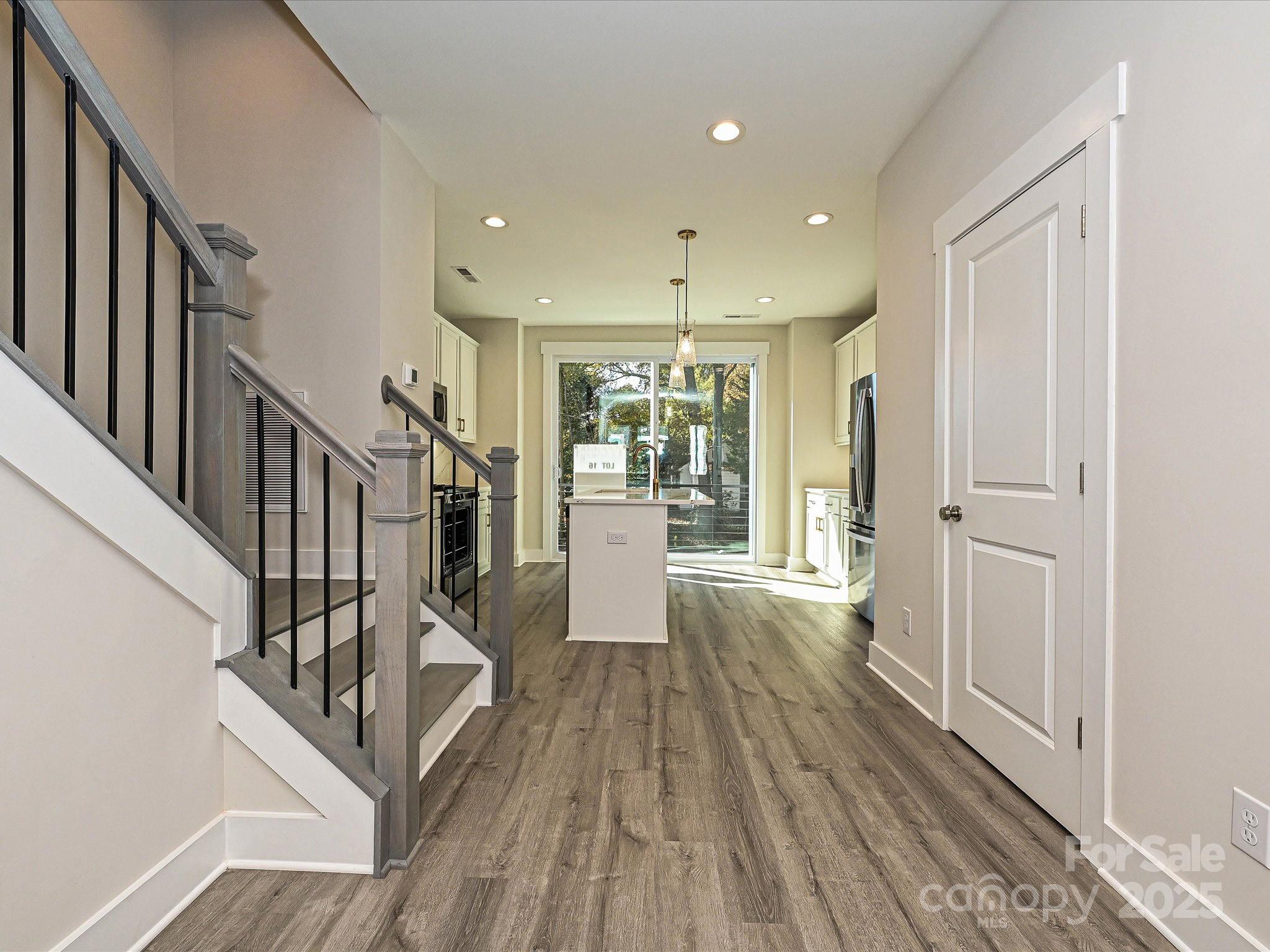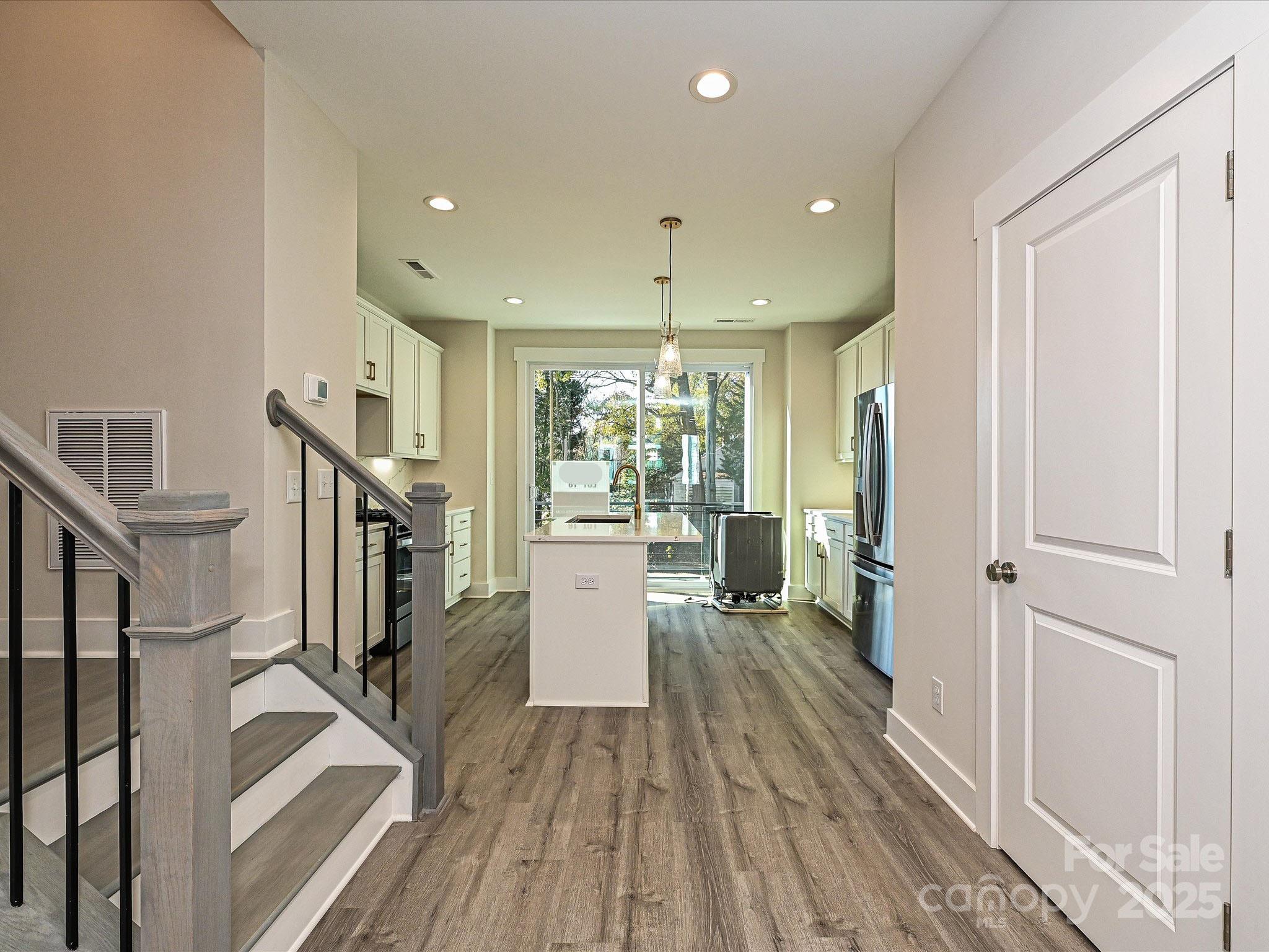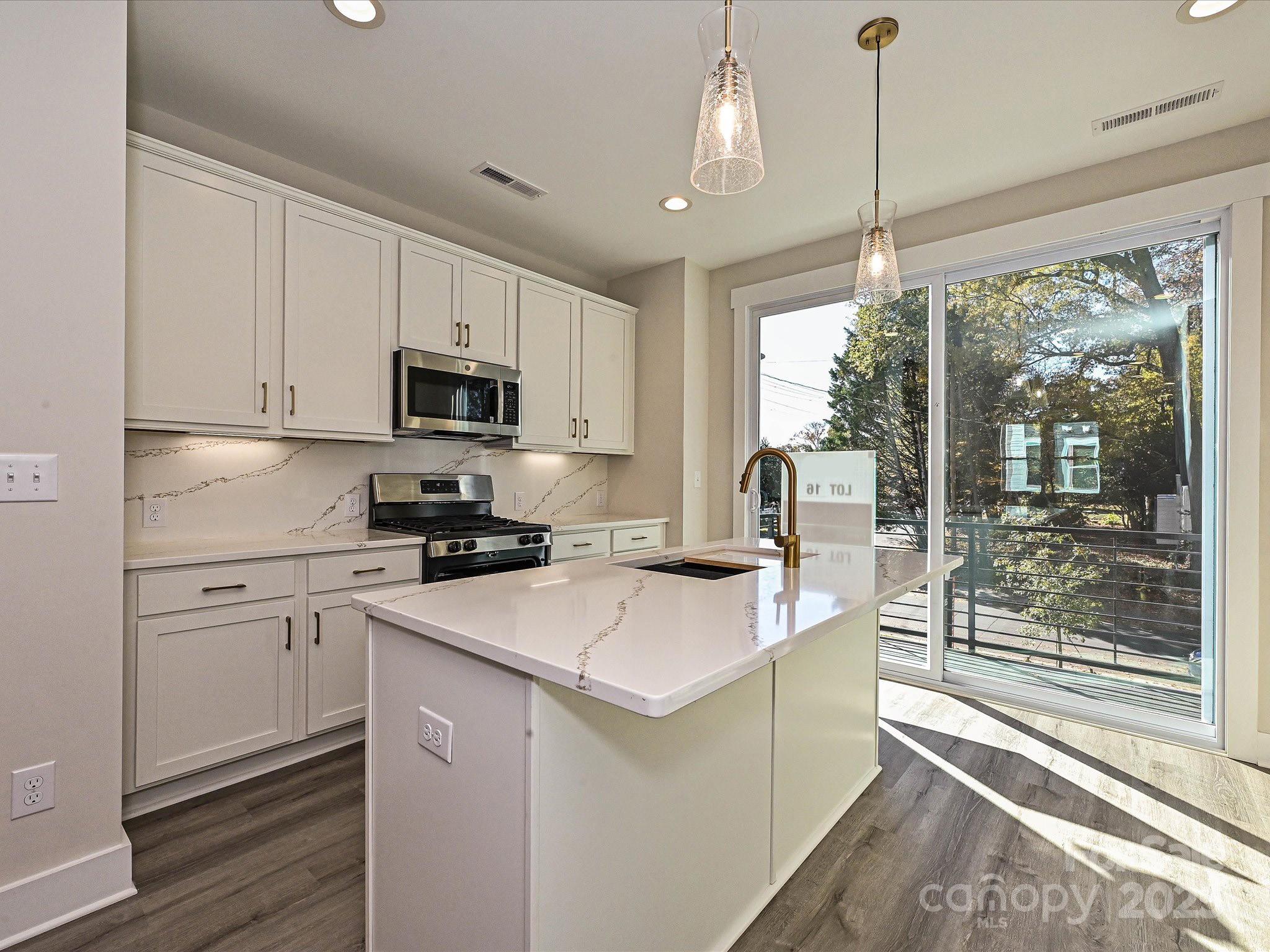 Enjoy a functional use of space in this 4-story NoDa townhome, including 9' ceilings, 2-car tandem grg, & top floor Rec room w/ powder & rooftop terrace. All appliances are included, w/ quartz counters & tiled floors in all full baths. Open layout on 2nd floor. Sliding doors off the kitchen lead to a small terrace. Kitchen includes an island, 42" cabs w/ trash pullout, quartz counters, tile backsplash, LED under-cab lights, pantry, large SS undermount sink, & GE SS app w/ gas range & French door fridge. 3rd floor laundry w/ GE stacked washer/dryer. Premier Bath has a raised height-vanity w/ quartz counters & light grey painted cabs, tile floor, & large tiled shower w/ shampoo niche & semi-frameless glass. LVP flooring at the garage entry, thru the 2nd floor, & 3rd floor hall & laundry. Stairs have oak treads & straight black wrought iron balusters. 2 ceiling fans. 3 miles from Uptown. Walkable to restaurants.