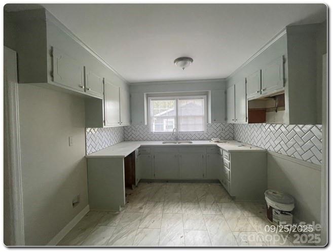 This fabulous, updated ranch is perfectly situated just minutes from I-485, offering both convenience and tranquility. Step inside to discover a thoughtfully updated interior featuring a blend of stylish tile and warm wood flooring throughout. The kitchen shines with crisp white cabinetry, a modern white tile backsplash, and ample counter space—ideal for cooking and entertaining. Enjoy the serene, wooded backyard from your expansive deck, perfect for relaxing or hosting gatherings in a peaceful natural setting. Don't miss the chance to own this charming, updated home in a prime location!