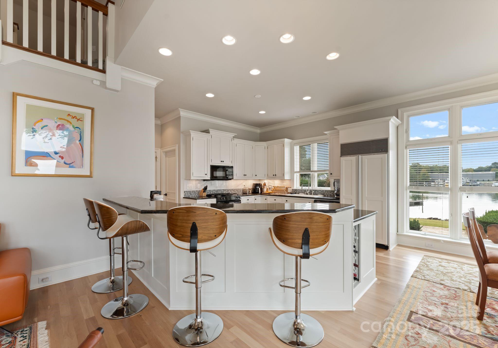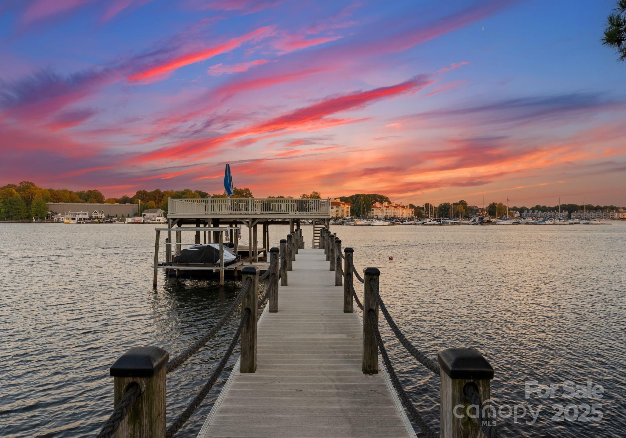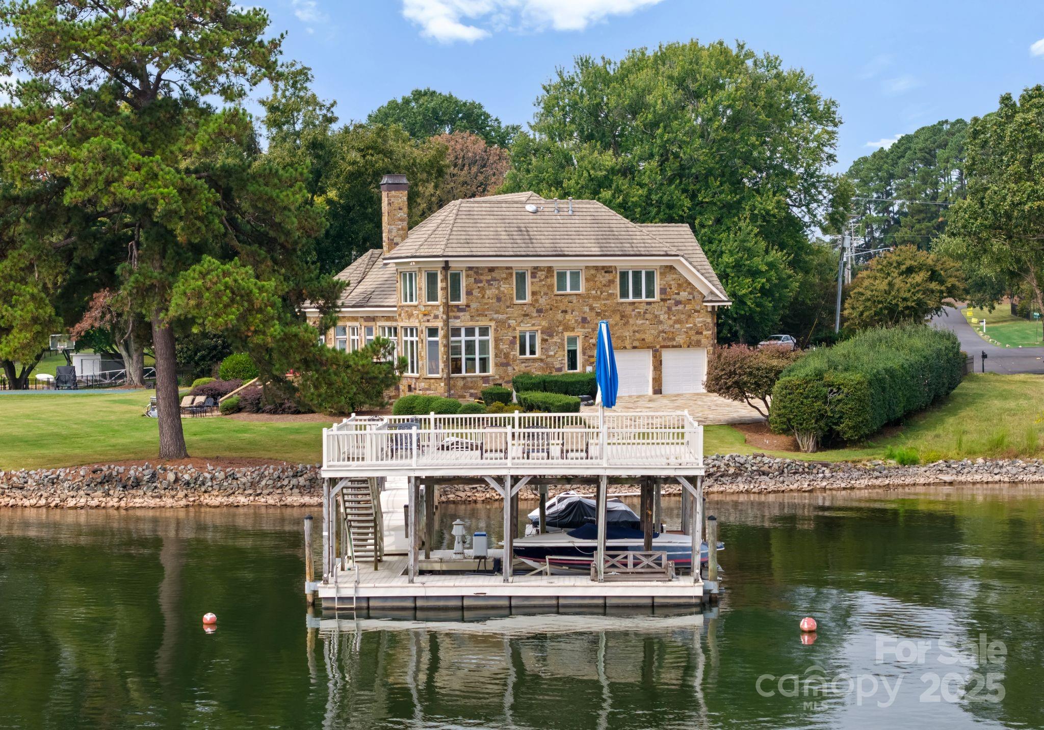 Nestled at the end of a private cul-de-sac in the highly desirable Point Largo community, this exceptional Lake Norman waterfront residence combines timeless design with relaxed luxury. Beautifully positioned to capture year-round water views, the home offers the perfect balance of privacy and proximity to all that Cornelius has to offer. A circular driveway and stately stone-and-stucco exterior set the tone for what awaits inside. The main level showcases an open and inviting layout with abundant natural light, elegant living and dining areas, and a seamless connection to the lake. The primary suite is conveniently located on the main level, offering peaceful water views, a spa-inspired bath, and direct access to the outdoor living spaces. The gourmet kitchen features stainless appliances, a center island, and a spacious breakfast area overlooking the water. Upstairs, a generous loft provides flexible space for an office, media room, or second living area. Three spacious guest bedrooms and three full baths ensure comfort for family and friends. Outdoor living is a dream with multiple areas to relax and entertain, including a covered deck and private dock with boat slip, lift, and seating area—perfect for sunset cruises or mornings on the lake. Experience the best of Lake Norman living in this rare and private waterfront retreat.