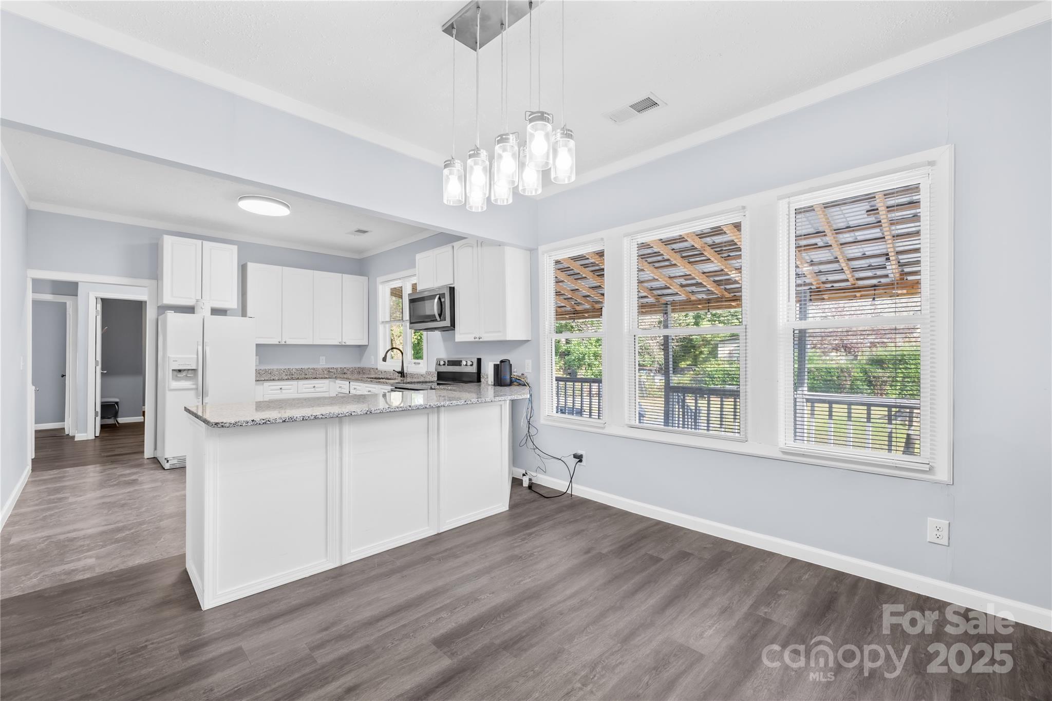 Step into this beautifully updated 4-bedroom, 2-bath home that seamlessly blends 1935 charm with modern convenience. Featuring a welcoming front porch and newly added side porch—perfect for enjoying your morning coffee while watching the sunrise or entertaining friends in the evening. Inside, you'll love the high ceilings and open floor plan that create a light and airy feel throughout. The spacious kitchen and bathrooms have been completely renovated with stylish new cabinets, countertops, flooring, and light fixtures. An oversized mudroom and laundry area add functionality and extra storage space. Situated on a fully fenced lot, this home offers plenty of outdoor room to enjoy. Don't miss this move-in-ready gem in a prime Asheboro location!