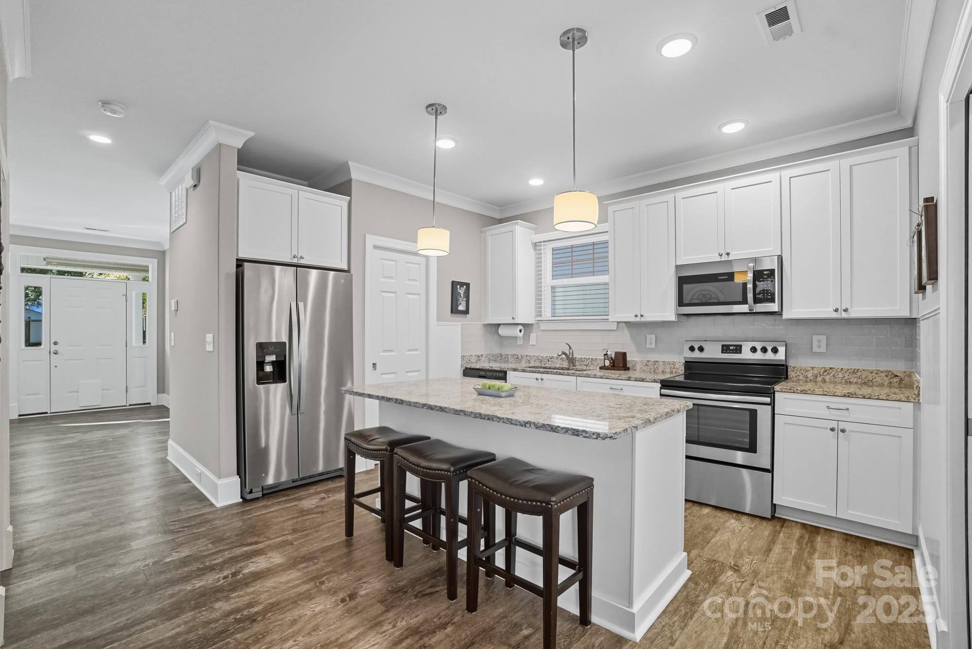 Charming Cottage style with an inviting front patio in a Storybook Setting. Step into this one-of-a-kind cottage-style home that perfectly blends timeless character with modern comfort. From the moment you arrive, the front patio, fenced front yard, and sidewalk-lined street welcome you with warmth and charm. Inside, you’ll find a meticulously maintained interior featuring warm neutral colors and craftsman-style crown molding. The beautiful kitchen offers granite countertops, a tiled backsplash, and a walk-in pantry with a pocket door—perfect for keeping everything organized. A spacious mudroom with laundry adds convenience and functionality. Upstairs, the primary suite feels like a private retreat with its tray ceiling, large walk-in closet, double vanity, and tiled walk-in shower. Two secondary bedrooms are generously sized and share another full bath with tub/shower combination. Enjoy the charm of small-town living just minutes from a pedestrian-friendly downtown, where you can step back in time and explore antique shops, ice cream parlors, coffee shops, pizza places, breweries, and wine shops. Plus, the new neighborhood park is only moments away—perfect for leisurely walks or weekend fun. This delightful home offers the best of both worlds: modern craftsmanship and timeless cottage appeal—all in a location that invites you to slow down and enjoy the simple pleasures of life.
