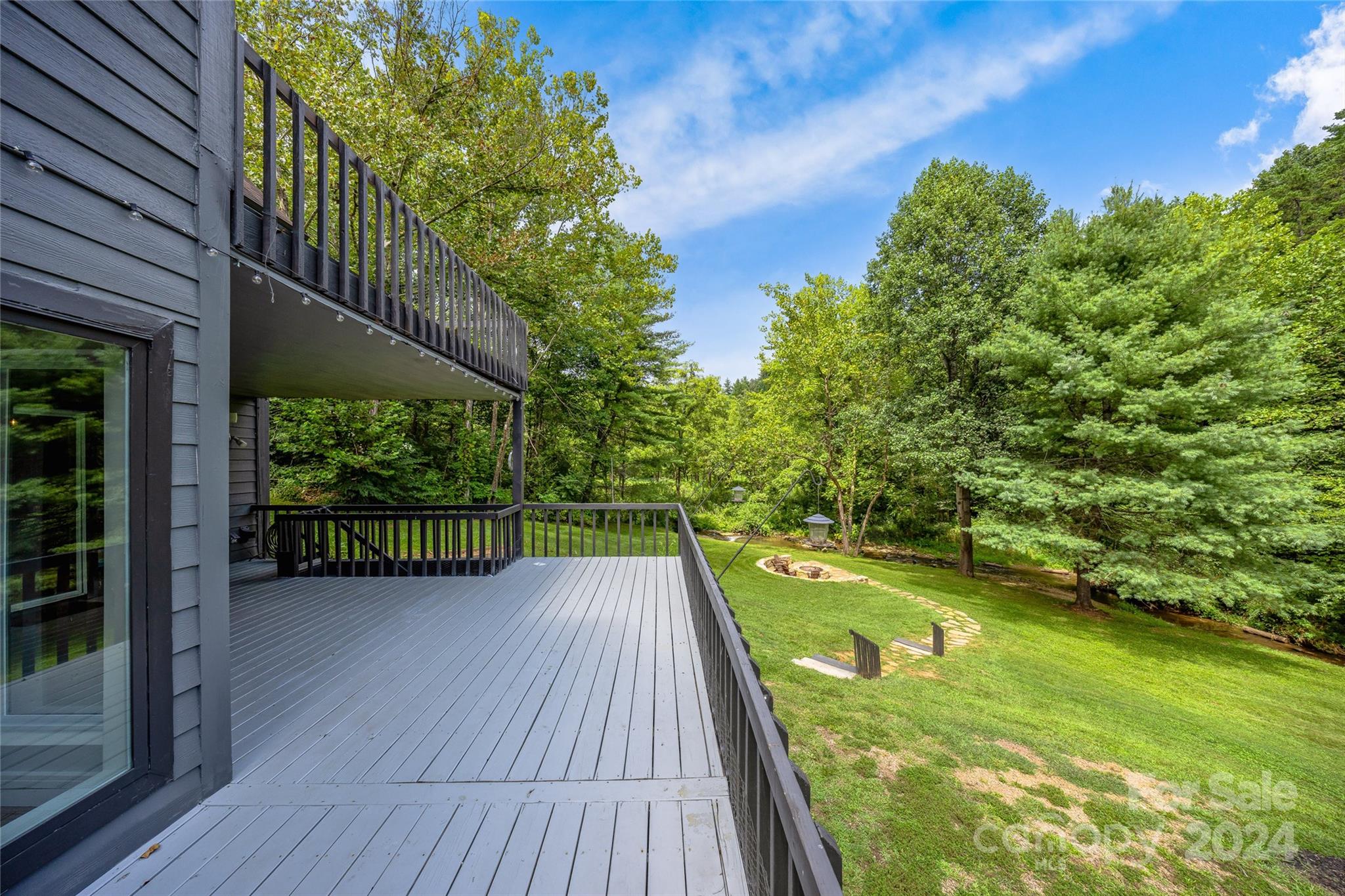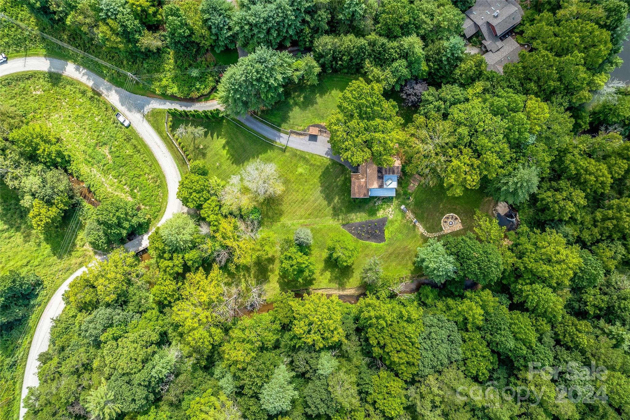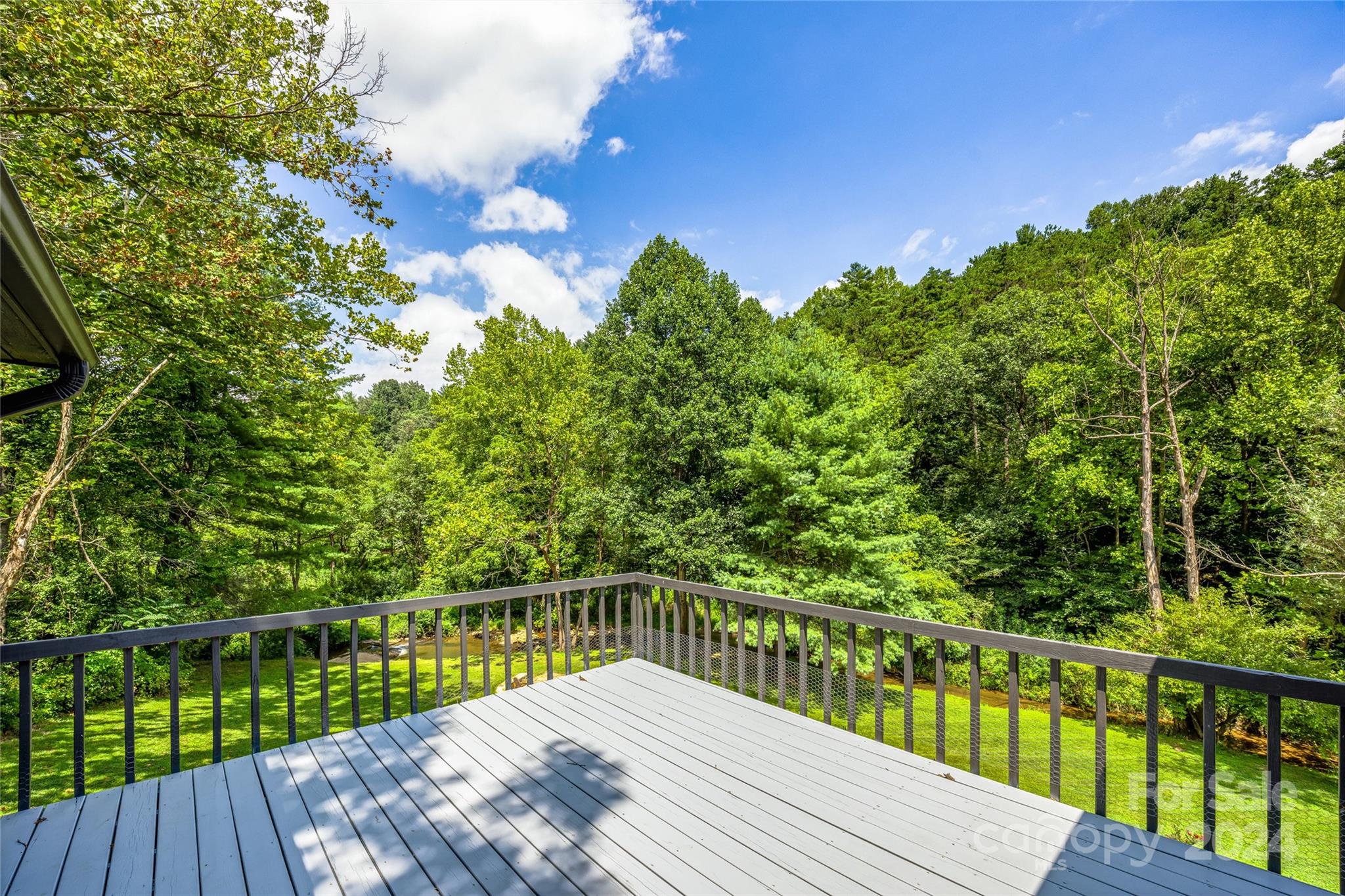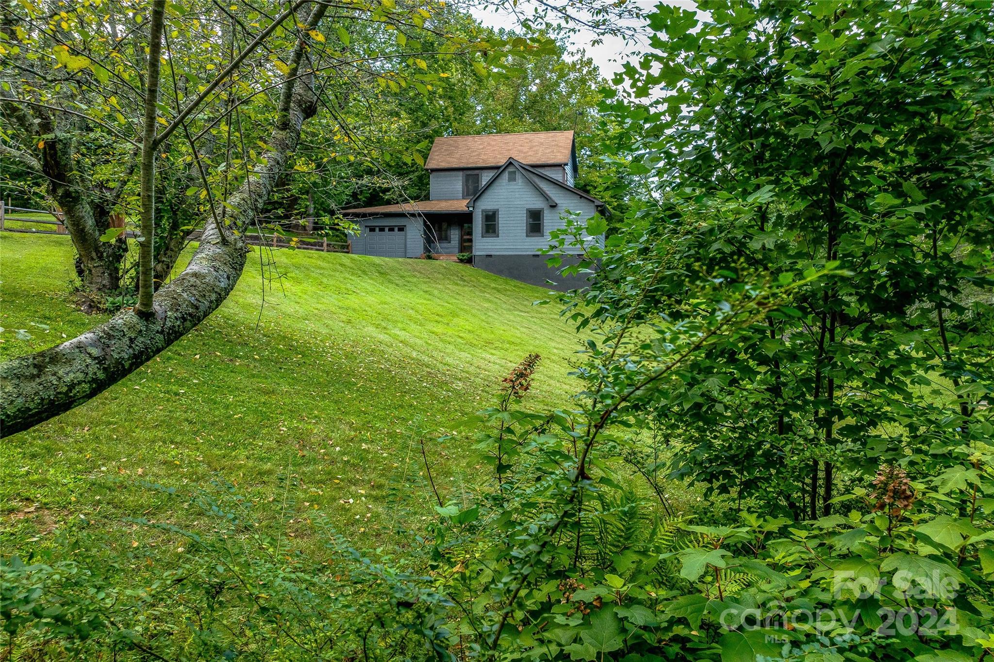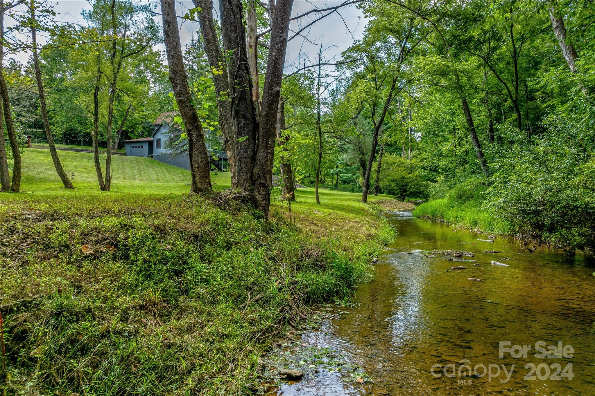 Escape to 48 Merrell Road, a serene home offering comfort and convenience in picturesque Leicester, NC. This inviting property features 3 bedrooms and 3.5 baths, with bright, open living spaces and and a large modern kitchen for entertaining. Primary bedroom is on main. Large windows invite scenic nature into the kitchen with you. Expansive large back deck perfect for entertainment and enjoying the sound of the flowing creek and waterfall. The primary bedroom is on the first floor with laundry in primary closet. Workspace in the basement with a garage door for easy outside access. The outdoor space includes a hand built stone fire pit and seating area, a flowing creek with a built-in waterfall, and gorgeous grassy knolls. The lot is slightly over five and a half acres, with plenty of room to build separate structures or build a main house and have this one as a guest home. Privacy, opportunity, and serenity. This home is part modular and part stick built. See Agent remarks for roof.