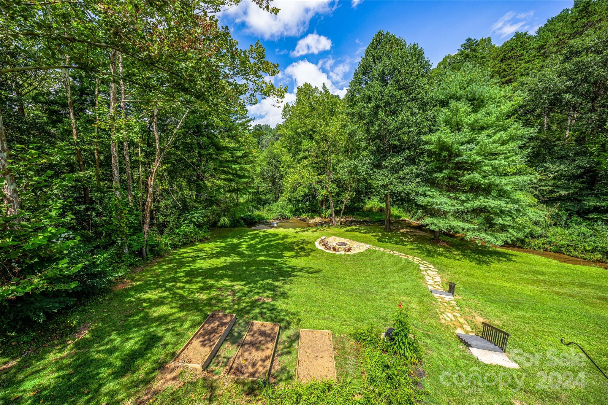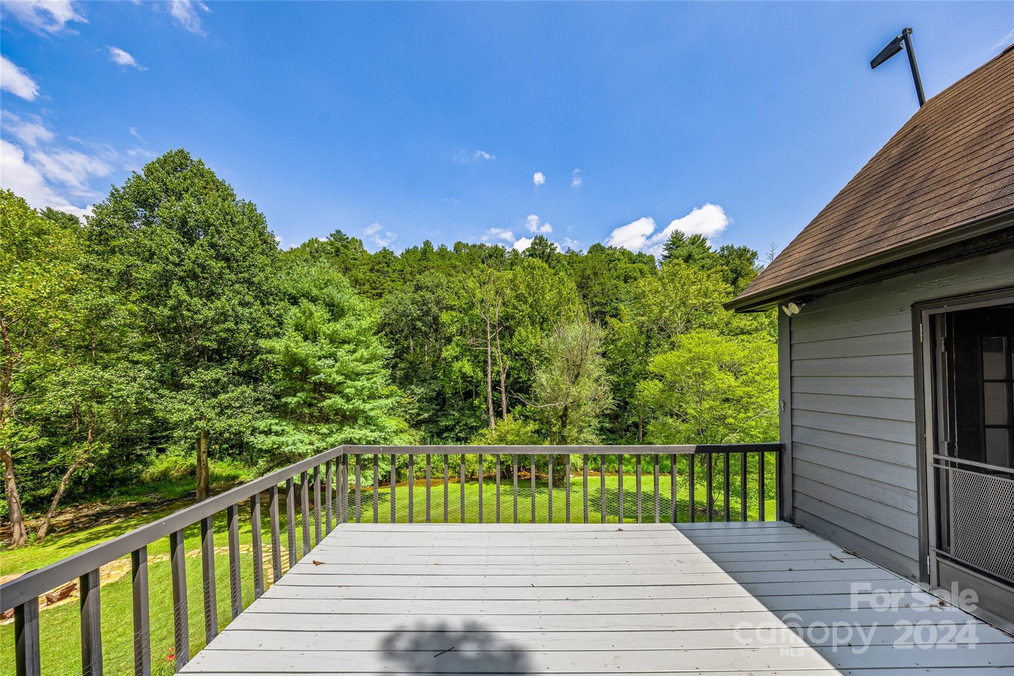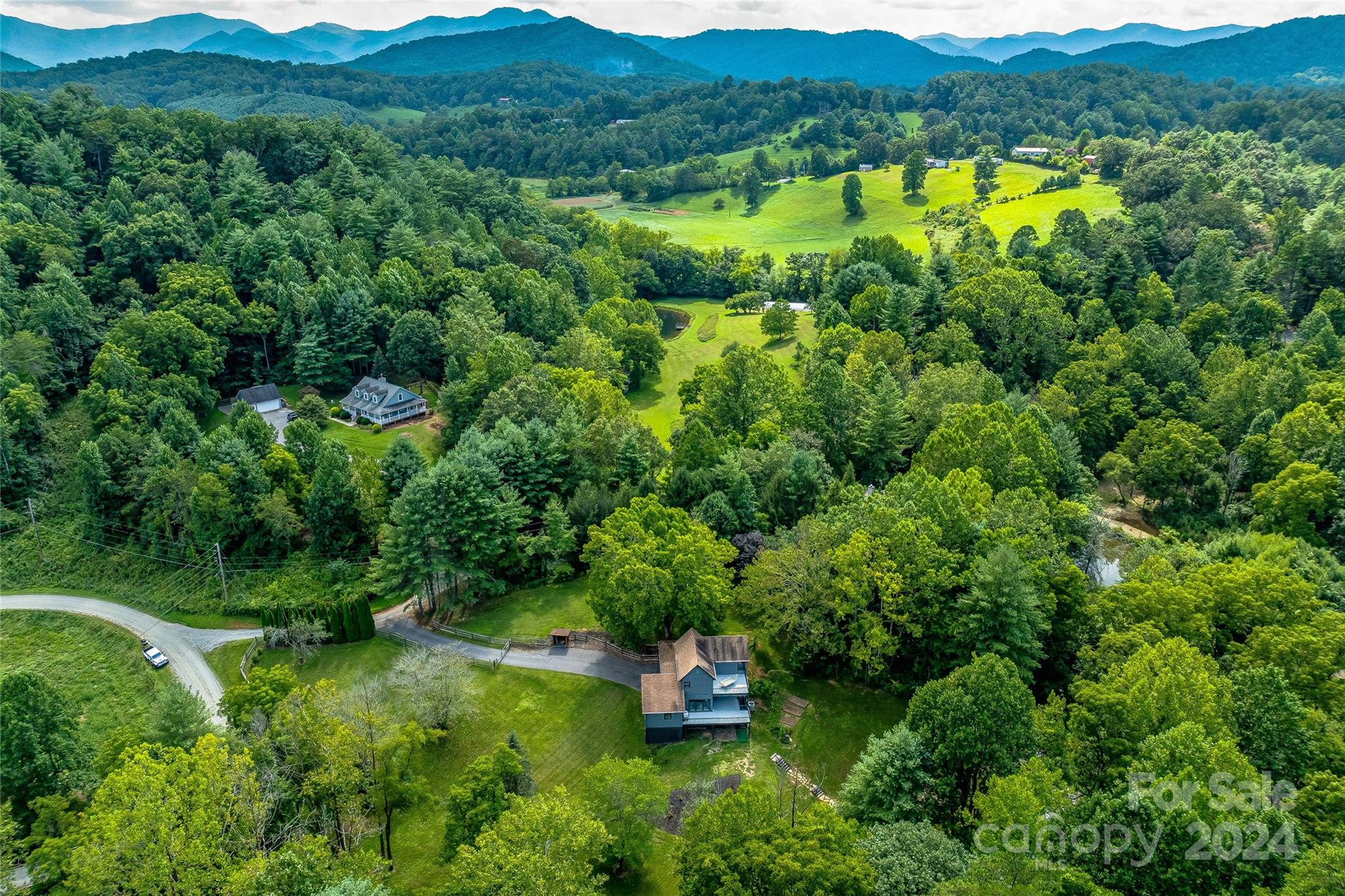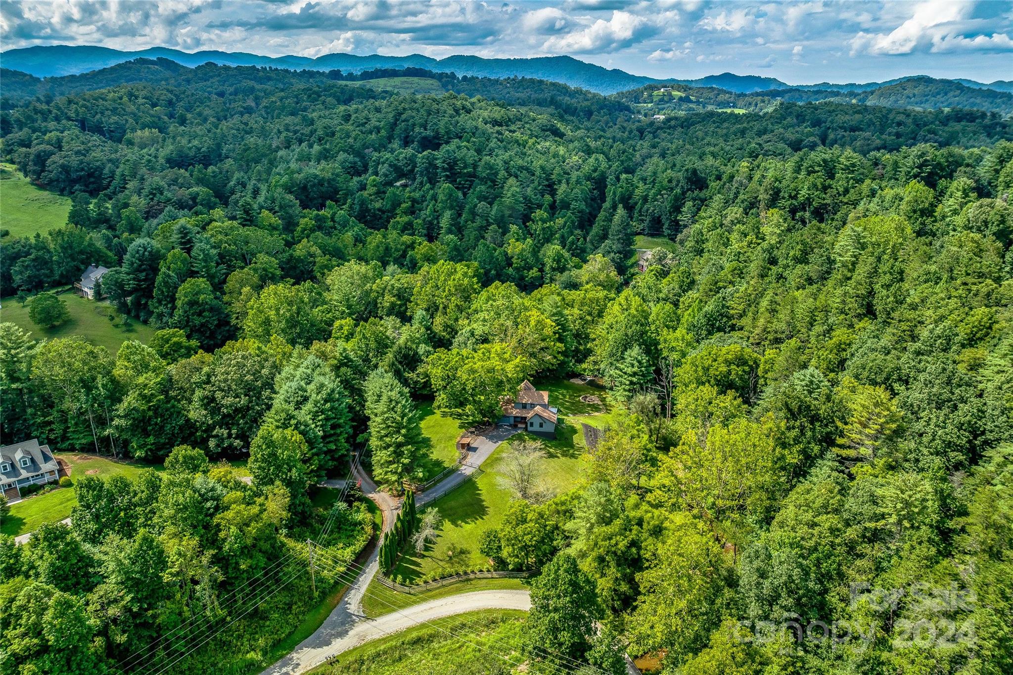 Escape to 48 Merrell Road, a serene home offering comfort and convenience in picturesque Leicester, NC. This inviting property features 3 bedrooms and 3.5 baths, with bright, open living spaces and and a large modern kitchen for entertaining. Primary bedroom is on main. Large windows invite scenic nature into the kitchen with you. Expansive large back deck perfect for entertainment and enjoying the sound of the flowing creek and waterfall. The primary bedroom is on the first floor with laundry in primary closet. Workspace in the basement with a garage door for easy outside access. The outdoor space includes a hand built stone fire pit and seating area, a flowing creek with a built-in waterfall, and gorgeous grassy knolls. The lot is slightly over five and a half acres, with plenty of room to build separate structures or build a main house and have this one as a guest home. Privacy, opportunity, and serenity. This home is part modular and part stick built. See Agent remarks for roof.