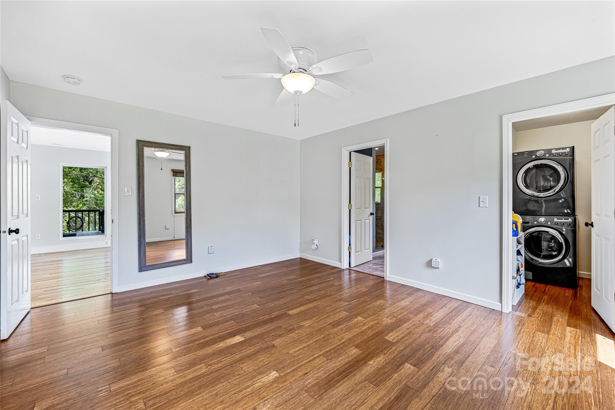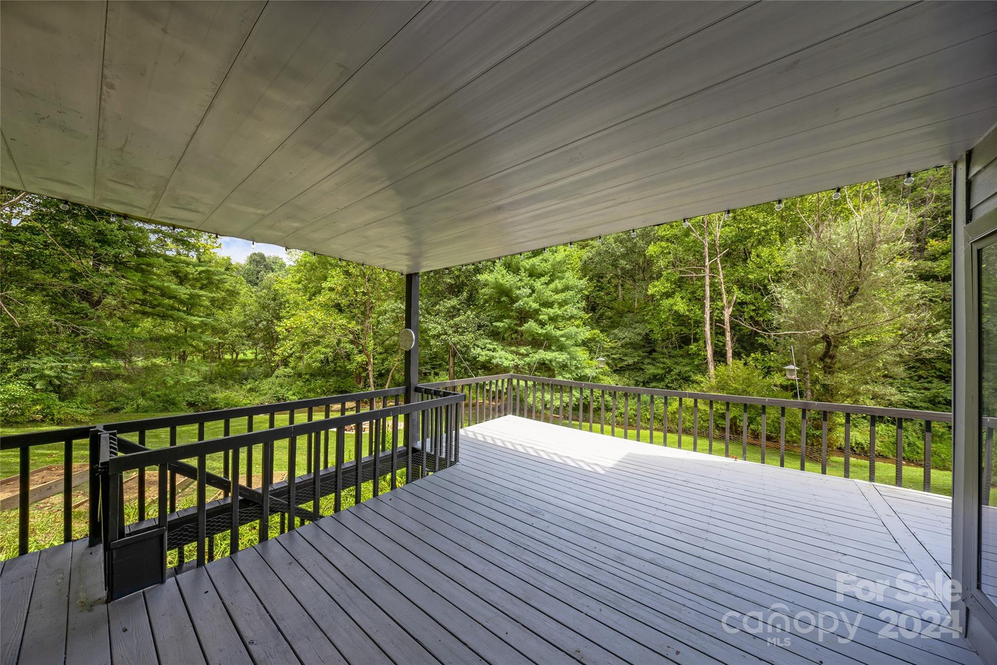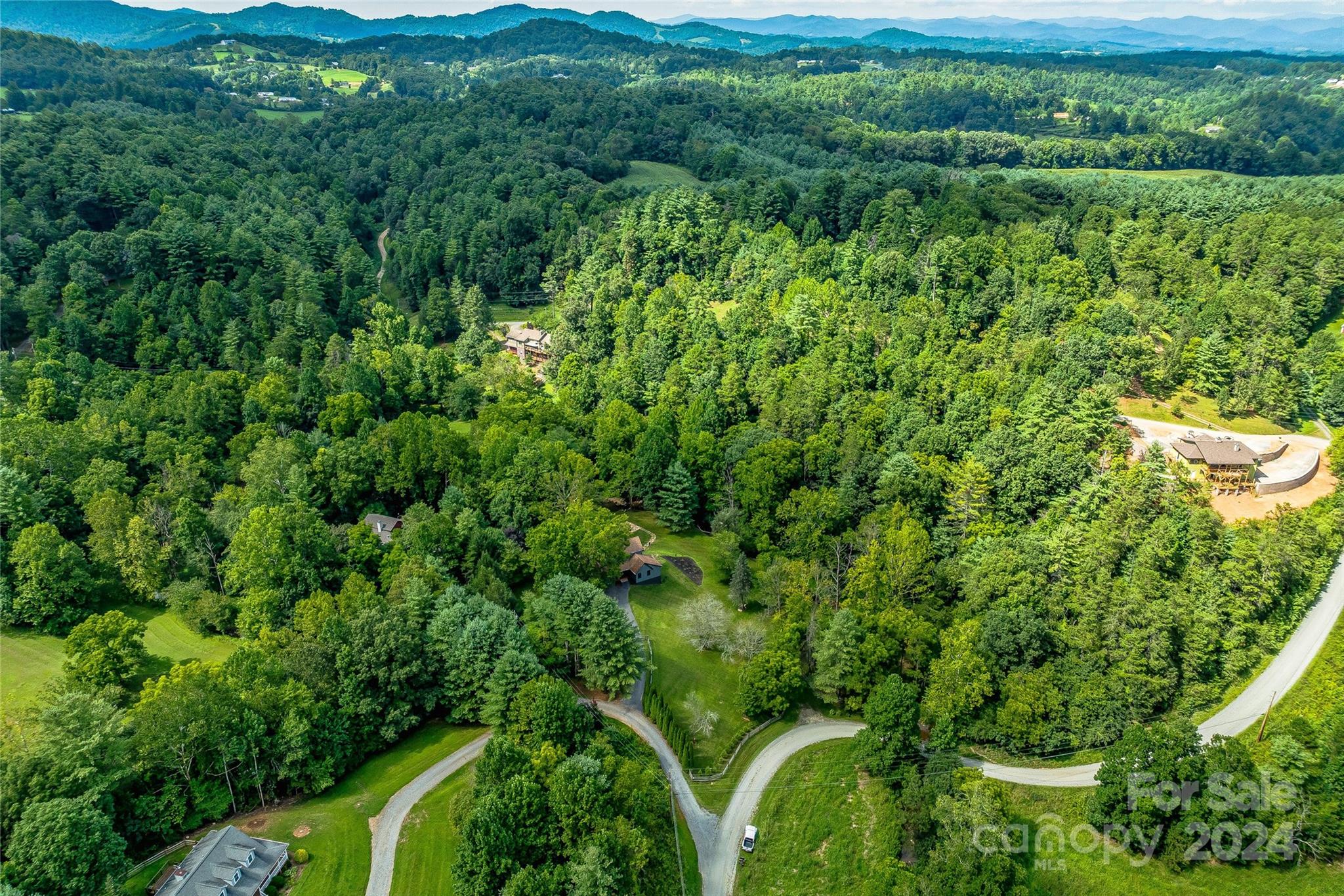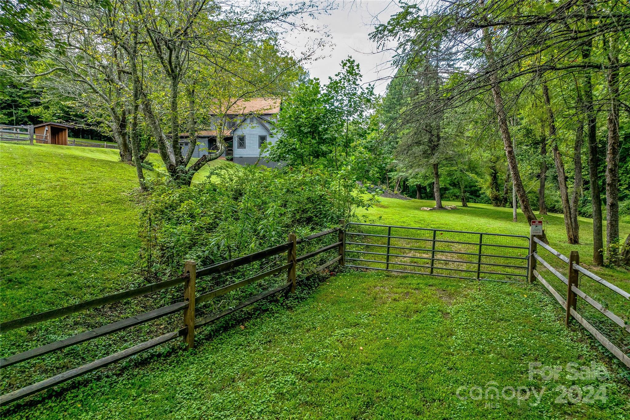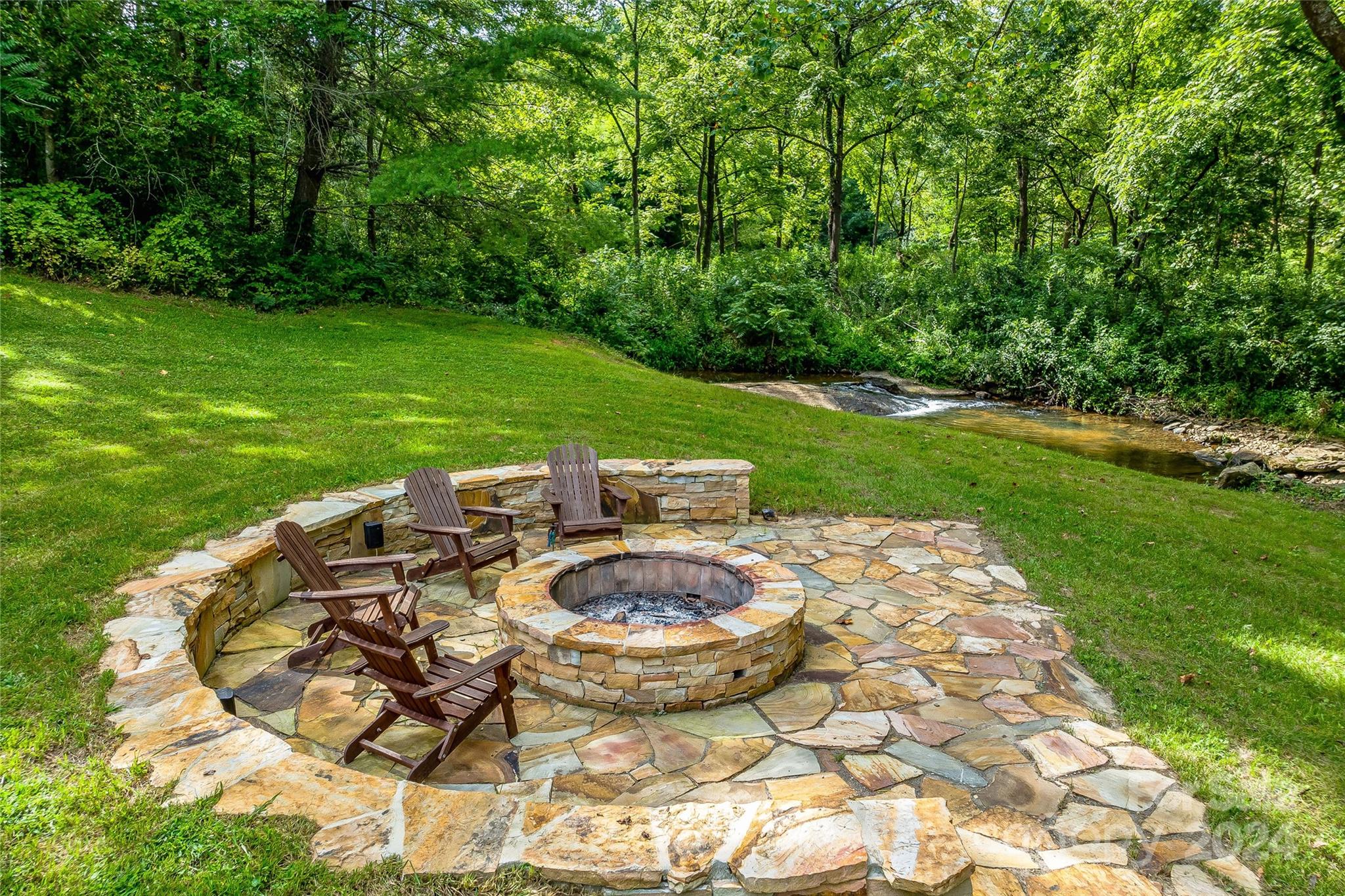 Escape to 48 Merrell Road, a serene home offering comfort and convenience in picturesque Leicester, NC. This inviting property features 3 bedrooms and 3.5 baths, with bright, open living spaces and and a large modern kitchen for entertaining. Primary bedroom is on main. Large windows invite scenic nature into the kitchen with you. Expansive large back deck perfect for entertainment and enjoying the sound of the flowing creek and waterfall. The primary bedroom is on the first floor with laundry in primary closet. Workspace in the basement with a garage door for easy outside access. The outdoor space includes a hand built stone fire pit and seating area, a flowing creek with a built-in waterfall, and gorgeous grassy knolls. The lot is slightly over five and a half acres, with plenty of room to build separate structures or build a main house and have this one as a guest home. Privacy, opportunity, and serenity. This home is part modular and part stick built. See Agent remarks for roof.