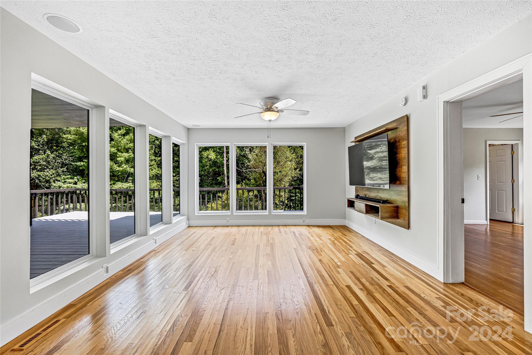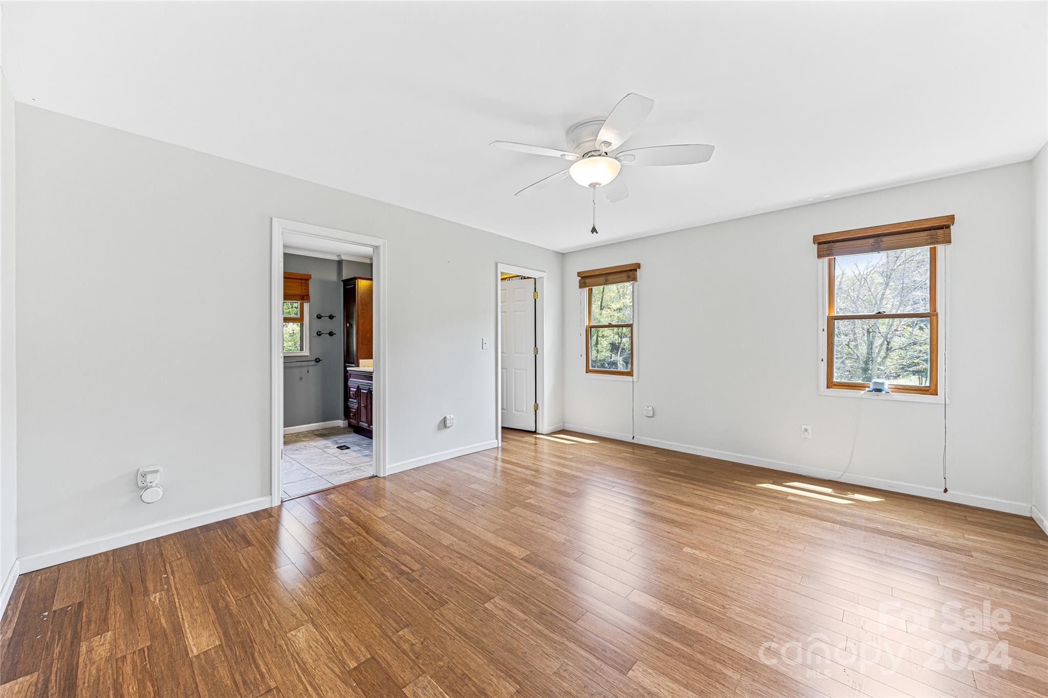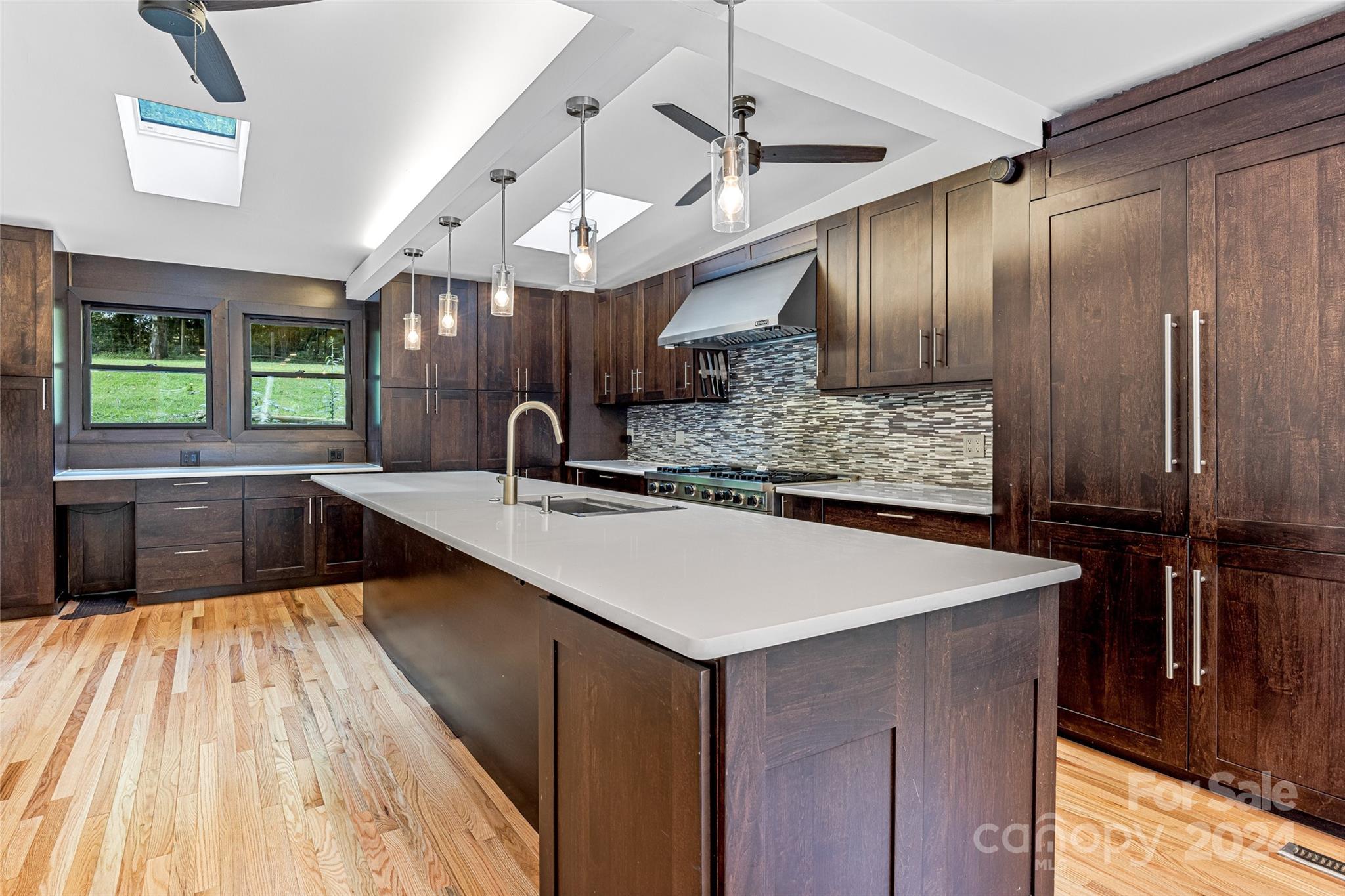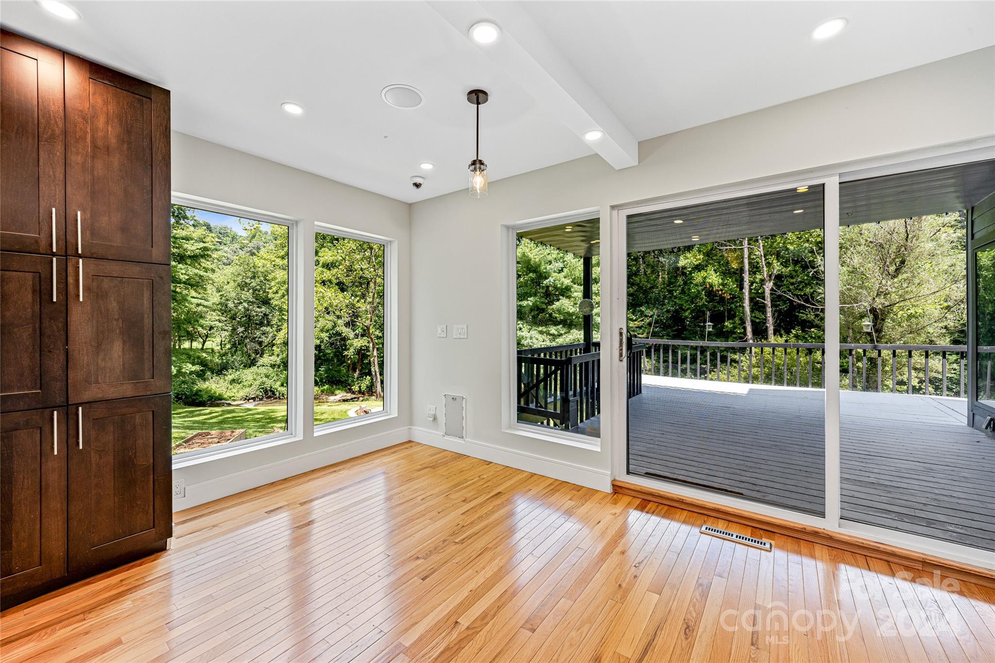 Escape to 48 Merrell Road, a serene home offering comfort and convenience in picturesque Leicester, NC. This inviting property features 3 bedrooms and 3.5 baths, with bright, open living spaces and and a large modern kitchen for entertaining. Primary bedroom is on main. Large windows invite scenic nature into the kitchen with you. Expansive large back deck perfect for entertainment and enjoying the sound of the flowing creek and waterfall. The primary bedroom is on the first floor with laundry in primary closet. Workspace in the basement with a garage door for easy outside access. The outdoor space includes a hand built stone fire pit and seating area, a flowing creek with a built-in waterfall, and gorgeous grassy knolls. The lot is slightly over five and a half acres, with plenty of room to build separate structures or build a main house and have this one as a guest home. Privacy, opportunity, and serenity. This home is part modular and part stick built. See Agent remarks for roof.