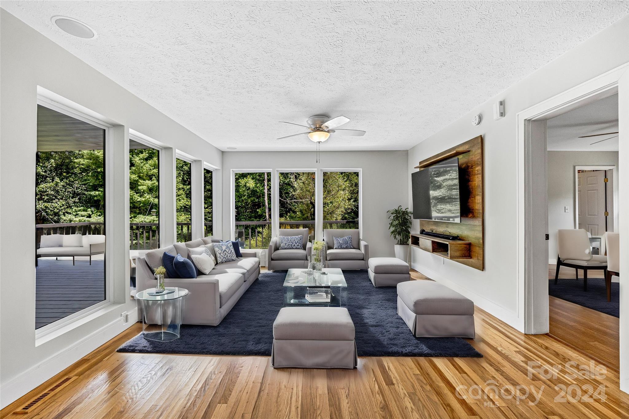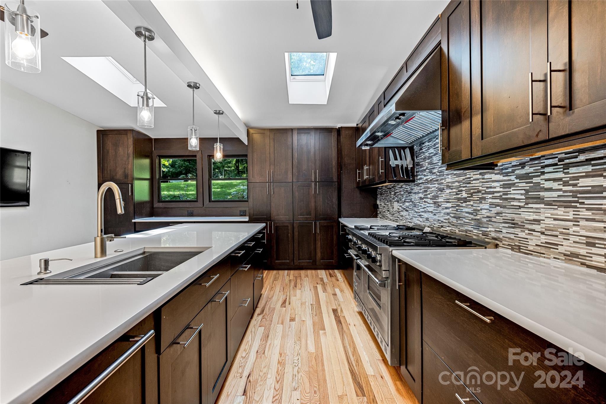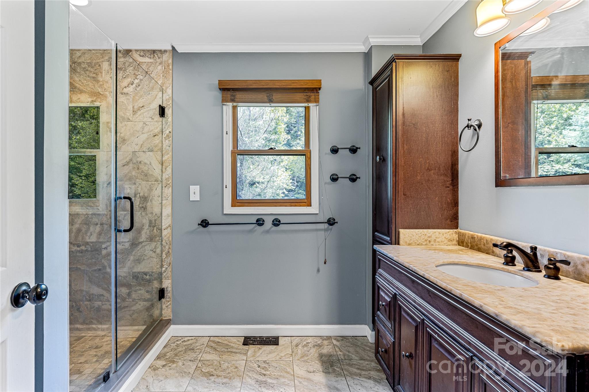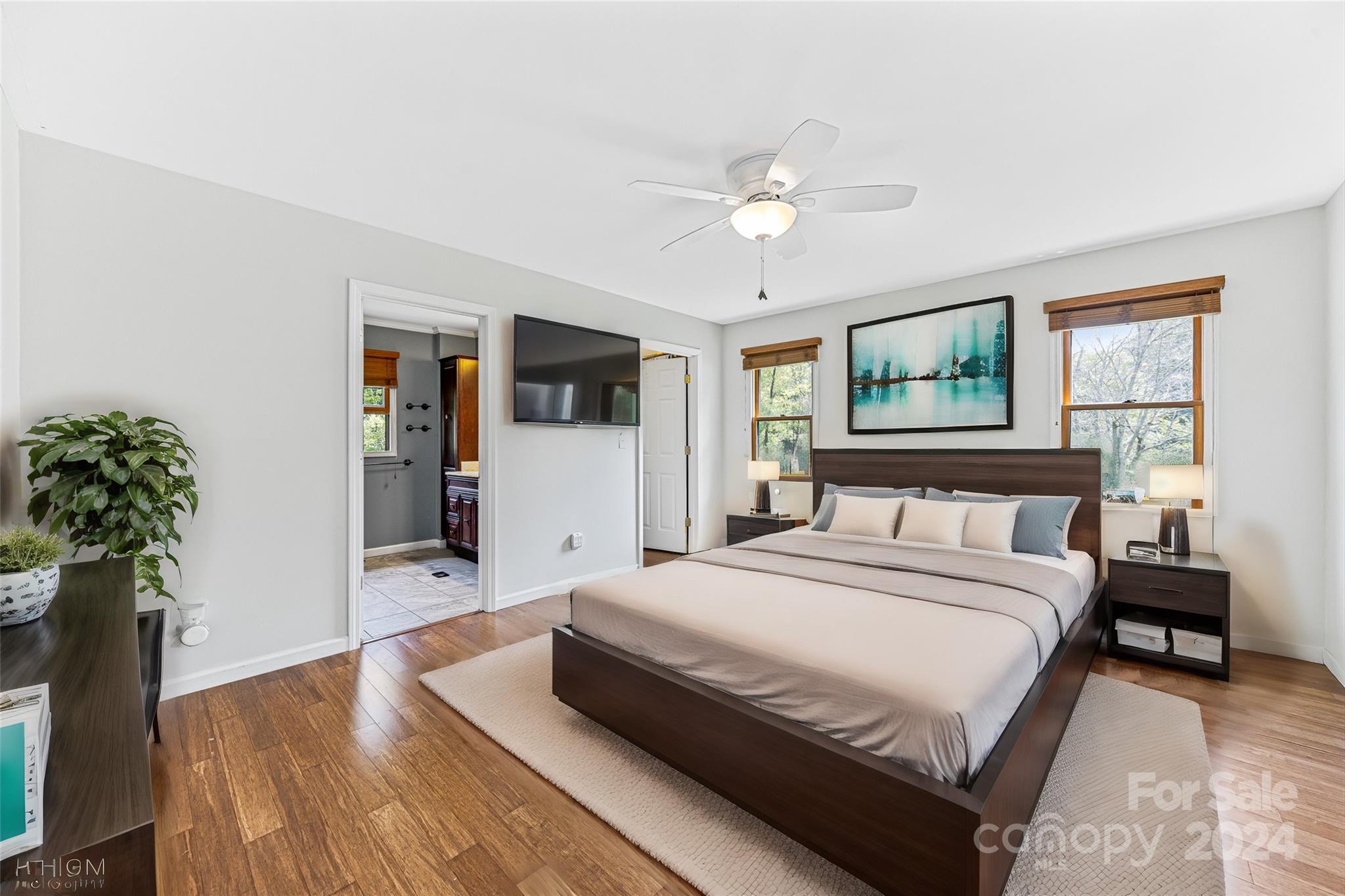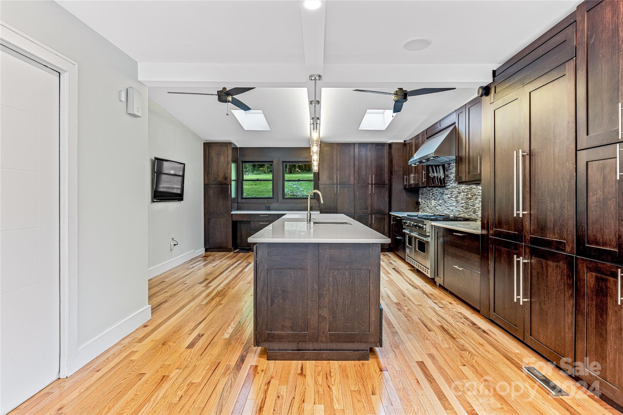 Escape to 48 Merrell Road, a serene home offering comfort and convenience in picturesque Leicester, NC. This inviting property features 3 bedrooms and 3.5 baths, with bright, open living spaces and and a large modern kitchen for entertaining. Primary bedroom is on main. Large windows invite scenic nature into the kitchen with you. Expansive large back deck perfect for entertainment and enjoying the sound of the flowing creek and waterfall. The primary bedroom is on the first floor with laundry in primary closet. Workspace in the basement with a garage door for easy outside access. The outdoor space includes a hand built stone fire pit and seating area, a flowing creek with a built-in waterfall, and gorgeous grassy knolls. The lot is slightly over five and a half acres, with plenty of room to build separate structures or build a main house and have this one as a guest home. Privacy, opportunity, and serenity. This home is part modular and part stick built. See Agent remarks for roof.
