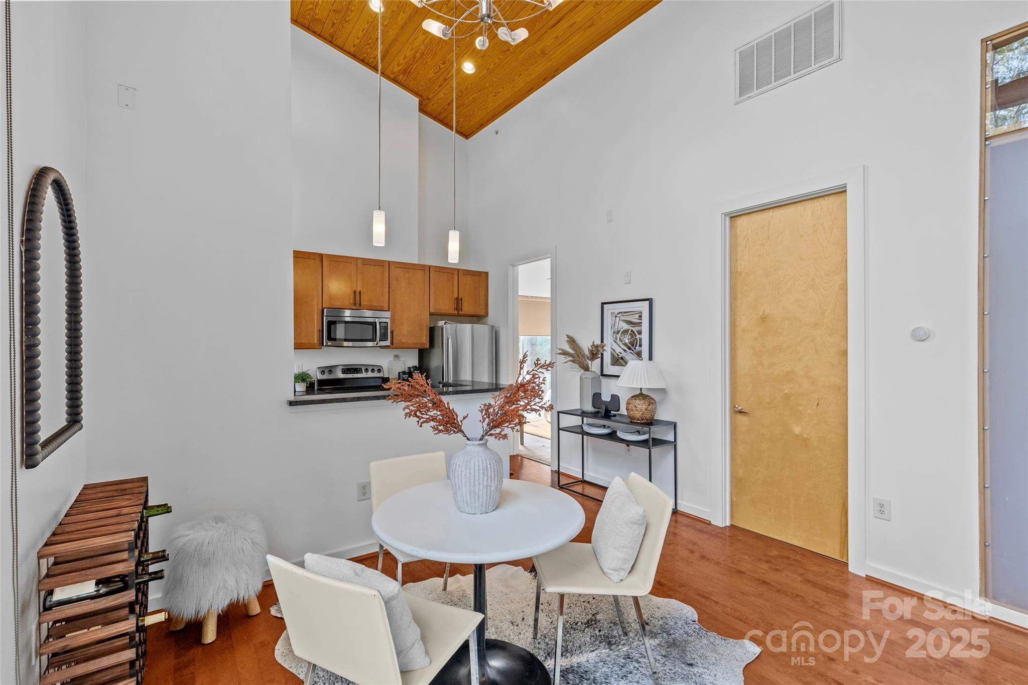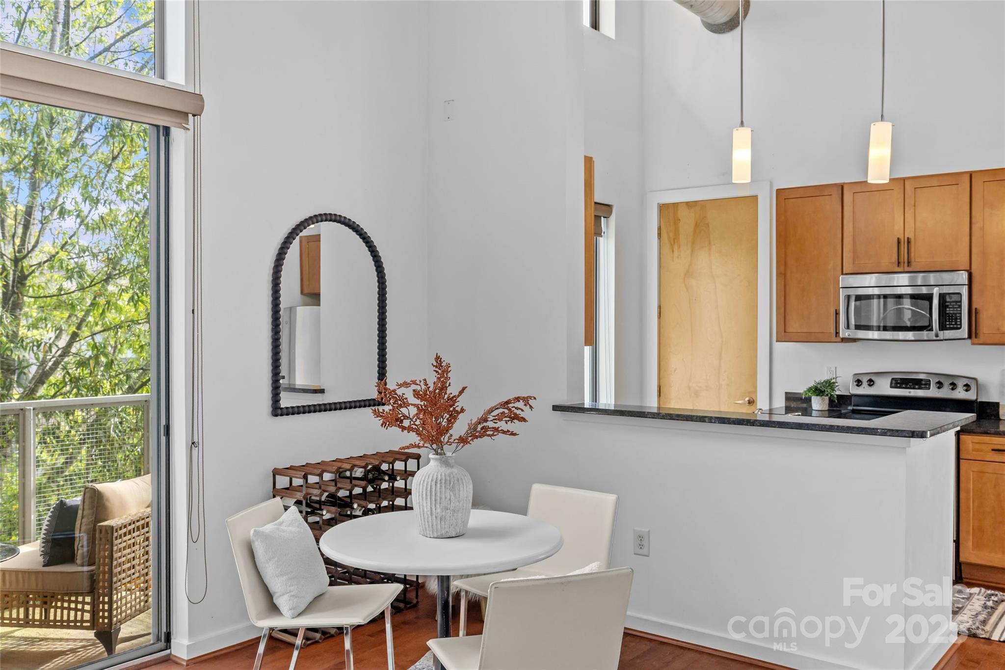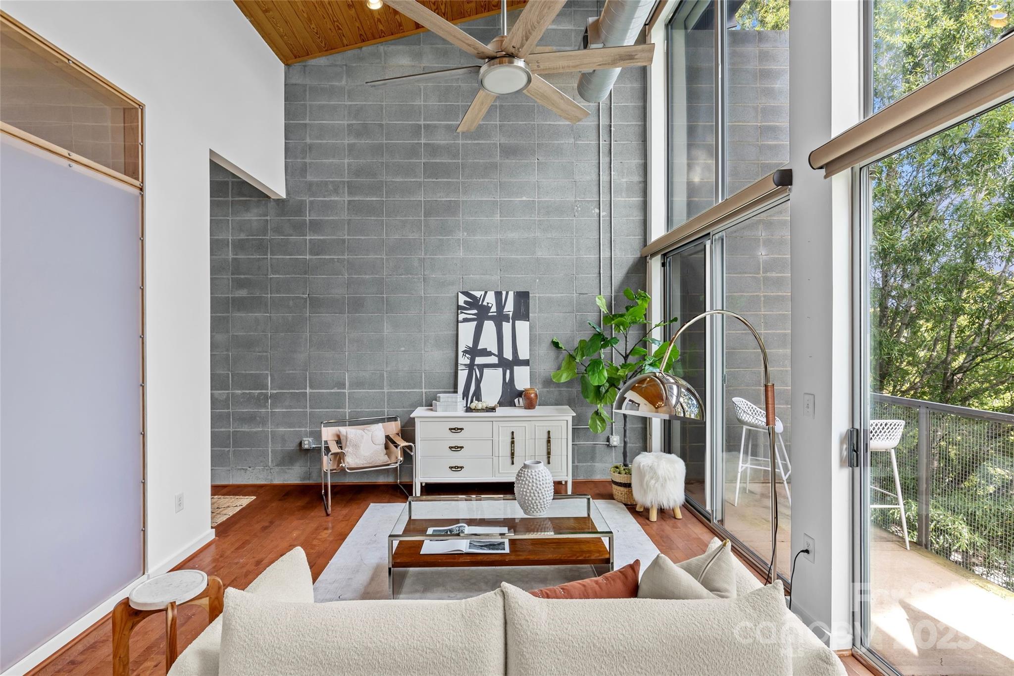 Welcome home to Plaza Vu Condos, starring Unit 232! This top-floor end-unit boasts sky-high ceilings and an industrial style, featuring a statement cement brick wall and exposed ductwork. The open-concept layout is perfect for entertaining and extends to a large private balcony for some amazing indoor-outdoor living. The primary bedroom features ample closet space and an en-suite private bathroom. The secondary bedroom has access to another full bathroom, which is conveniently located for guest access, too. Right off the efficient kitchen is a spacious utility closet that holds room for pantry storage and the in-unit washer and dryer. Additionally, the unit includes a large storage closet located just outside the unit for easy access, and an assigned parking spot. Your immediate drool-worthy neighbors include Supperland, Giddy Goat, and Moxie Mercantile, just to name a few. Come feel the incredible vibes for yourself, all in a stellar location within walking distance to all of Plaza Midwood's favorite spots.