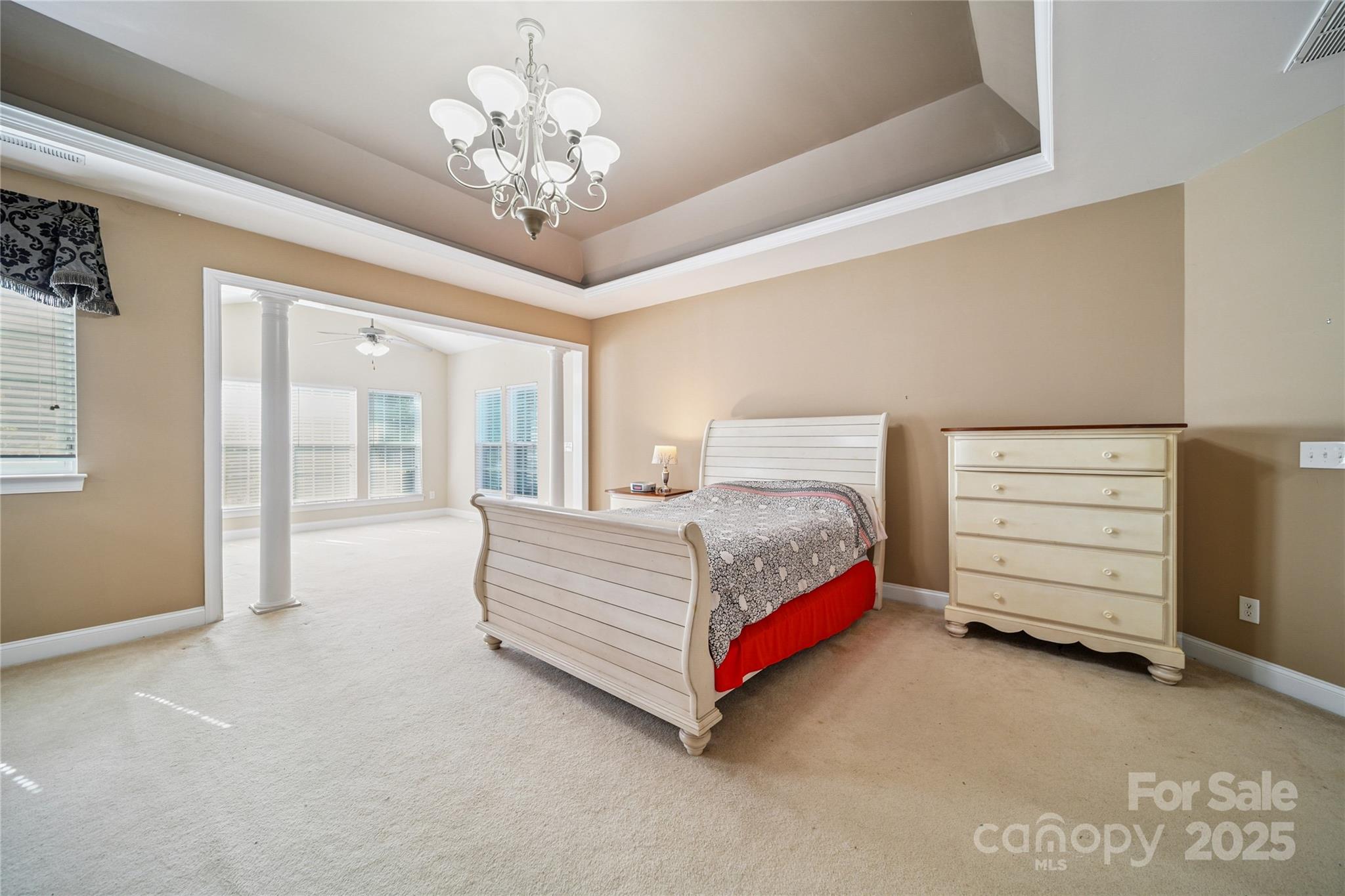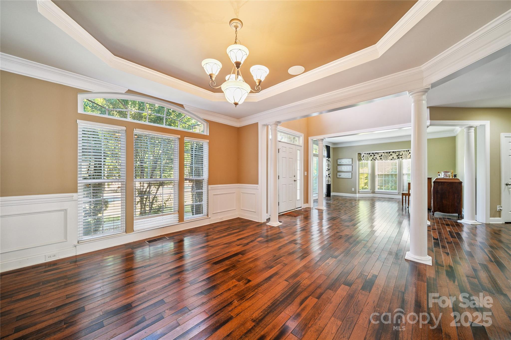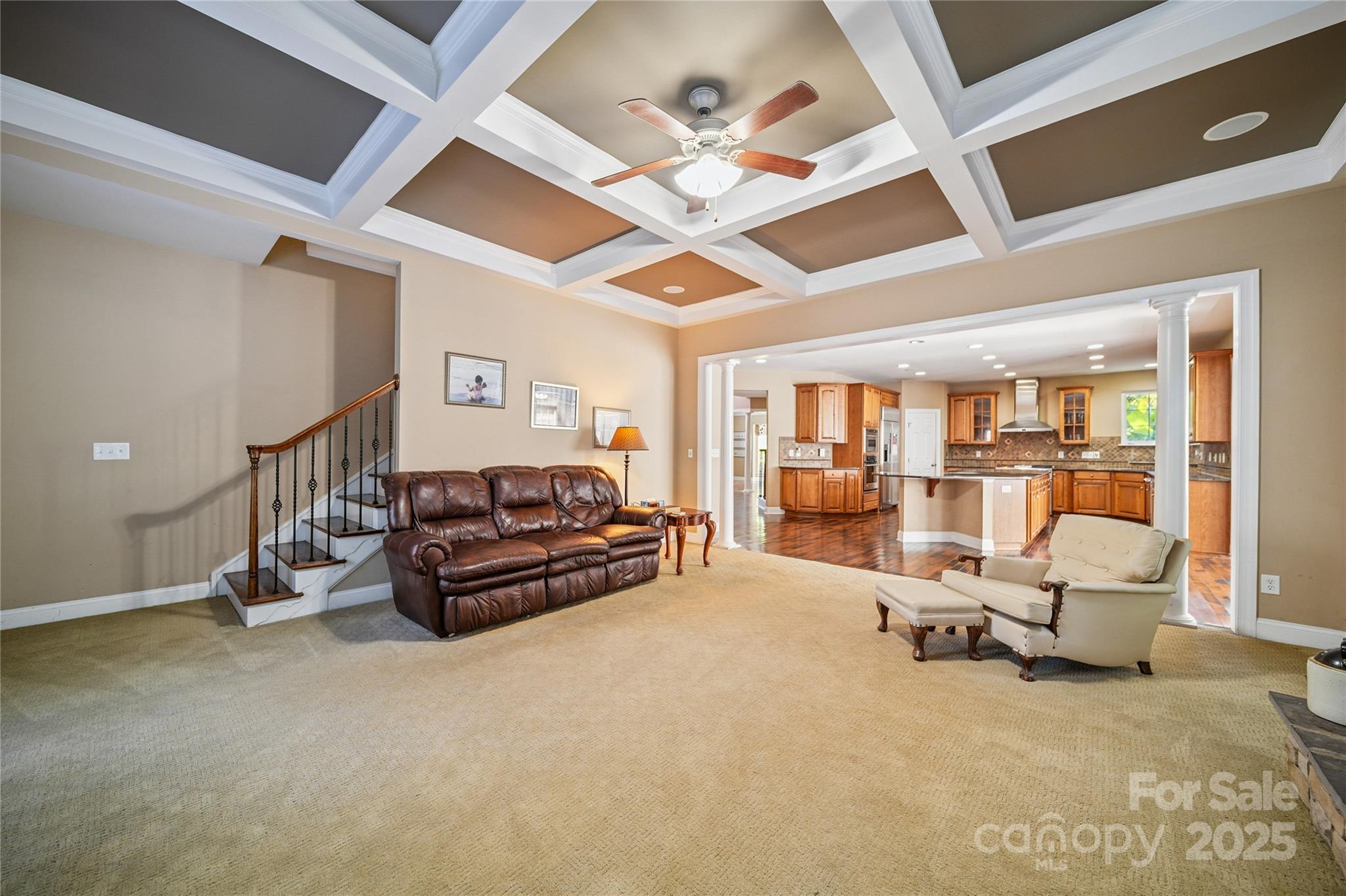 Welcome to your dream home! This spacious 5 bedroom, 4 bath residence offers over 4,600 sq ft of beautifully designed living space. Step through the 2 story grand entrance featuring a foyer and formal dining room, step through to a chef's kitchen with a large island, gas stove, butler's pantry and sunny breakfast room. The open-concept living room showcases coffered ceilings and a cozy fireplace. The main level also features a guest bedroom with a ensuite bathroom. Up the wooden staircase you will find a large primary suite, with a sitting room, his and hers closets, and large primary bathroom. There are 3 additional bedrooms, 2 bathrooms and a generously sized bonus room offering flexible space for a media room, home gym or play area. The home also features a large 3 car garage, and outdoors a stone patio with outdoor fireplace perfect for entertaining. This home is located in the sought-after Mooresville Graded School District. This home would be great for multi-generational living.
