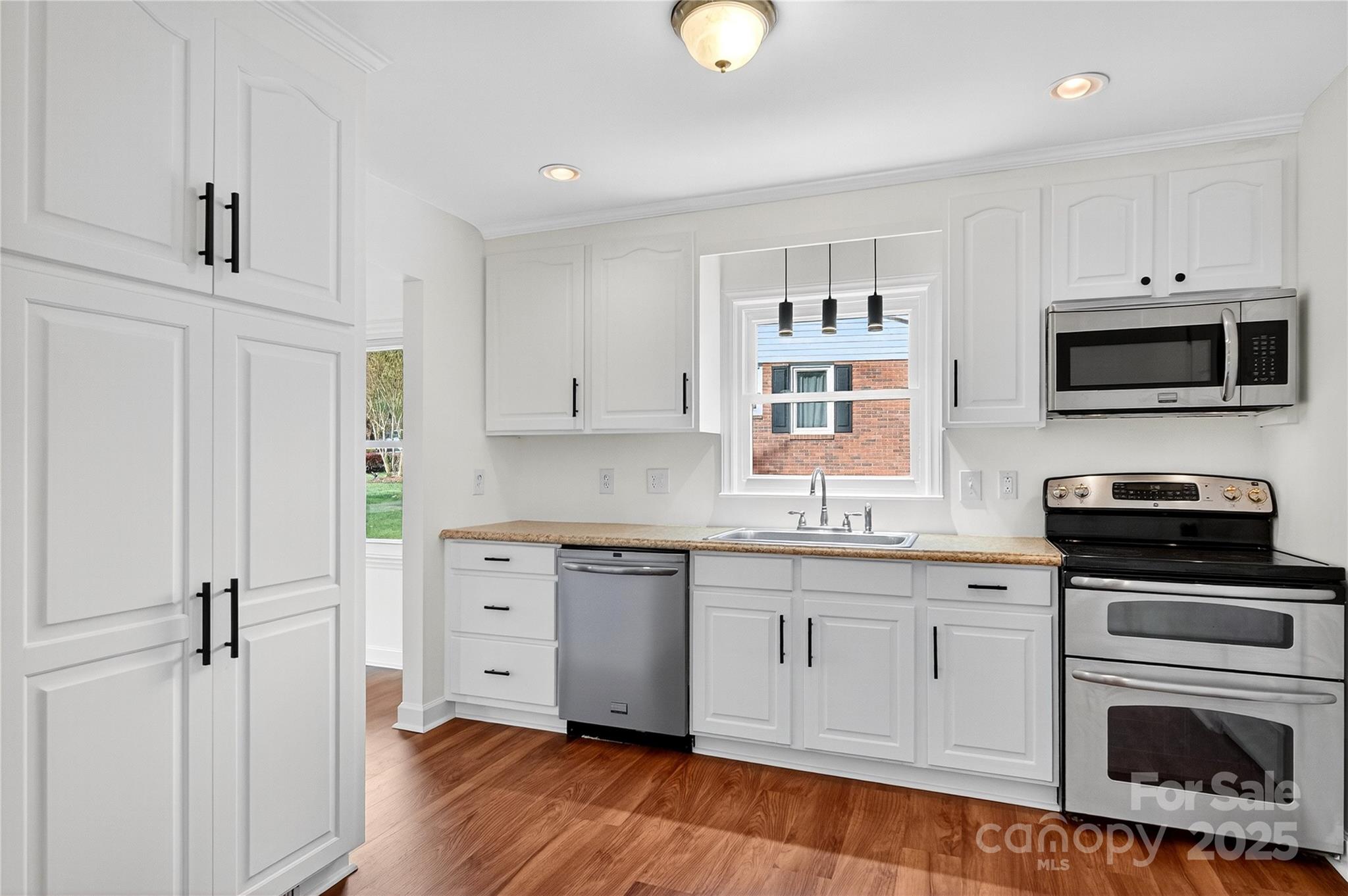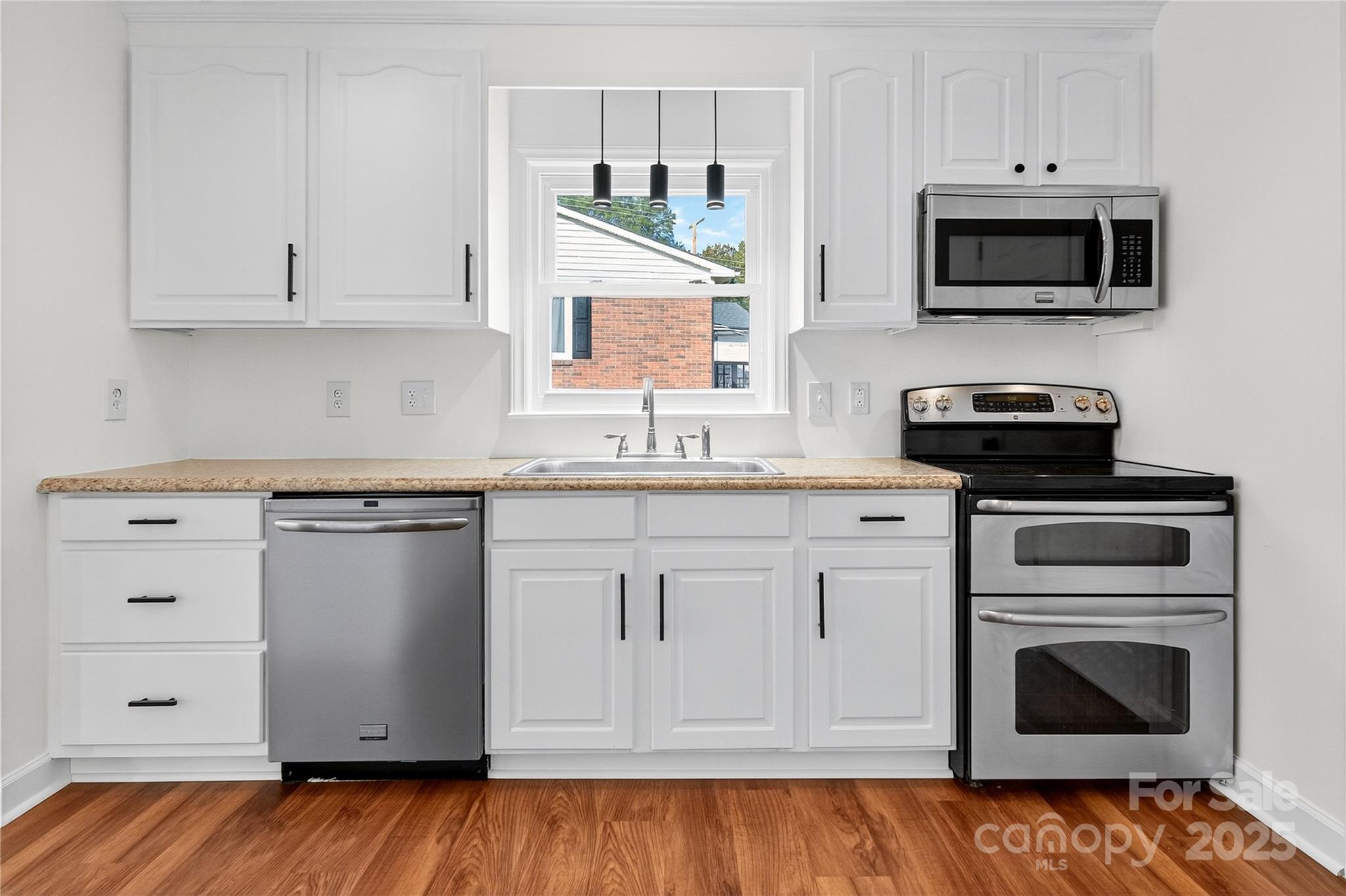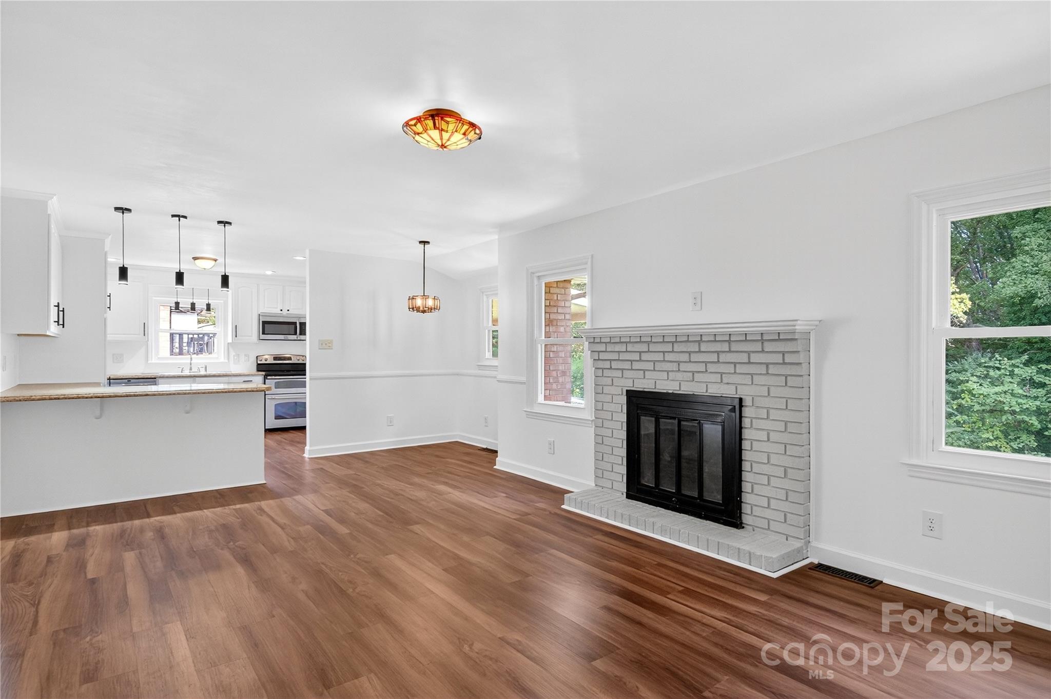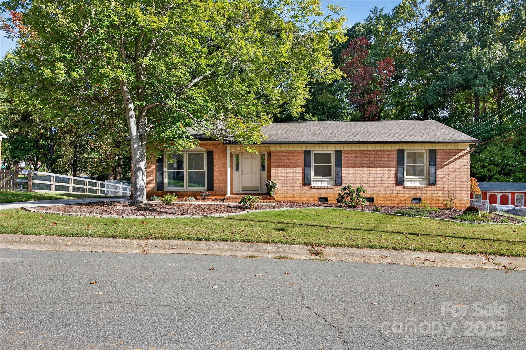 Cozy up around the fireplace in this beautifully maintained, traditional brick ranch home! Situated on a quiet street in a desirable neighborhood, this home is nestled on a private half acre lot with a fenced in backyard. The neighborhood is established with larger lots, trees and excellent proximity to parks & schools. No HOA so room to expand your footprint in the future! Great floor plan with front Living and Dining Room, with a Kitchen and casual Dining nook that opens to the Den, creating a comfortable atmosphere in the heart of the home. The Kitchen features painted oak cabinetry with decorative pulls and stainless steel appliances. Newly installed LVP flooring and freshly painted designer white throughout! This single level home features 3 spacious bedrooms and 1.5 bathrooms, including the an ensuite in the primary bedroom. Inside Laundry Room off the Kitchen. Spacious patio and large, fenced backyard with shed. Conveniently located near award-winning schools, just minutes from downtown shops, restaurants and local parks! Don't miss out on this move-in ready timeless classic home!