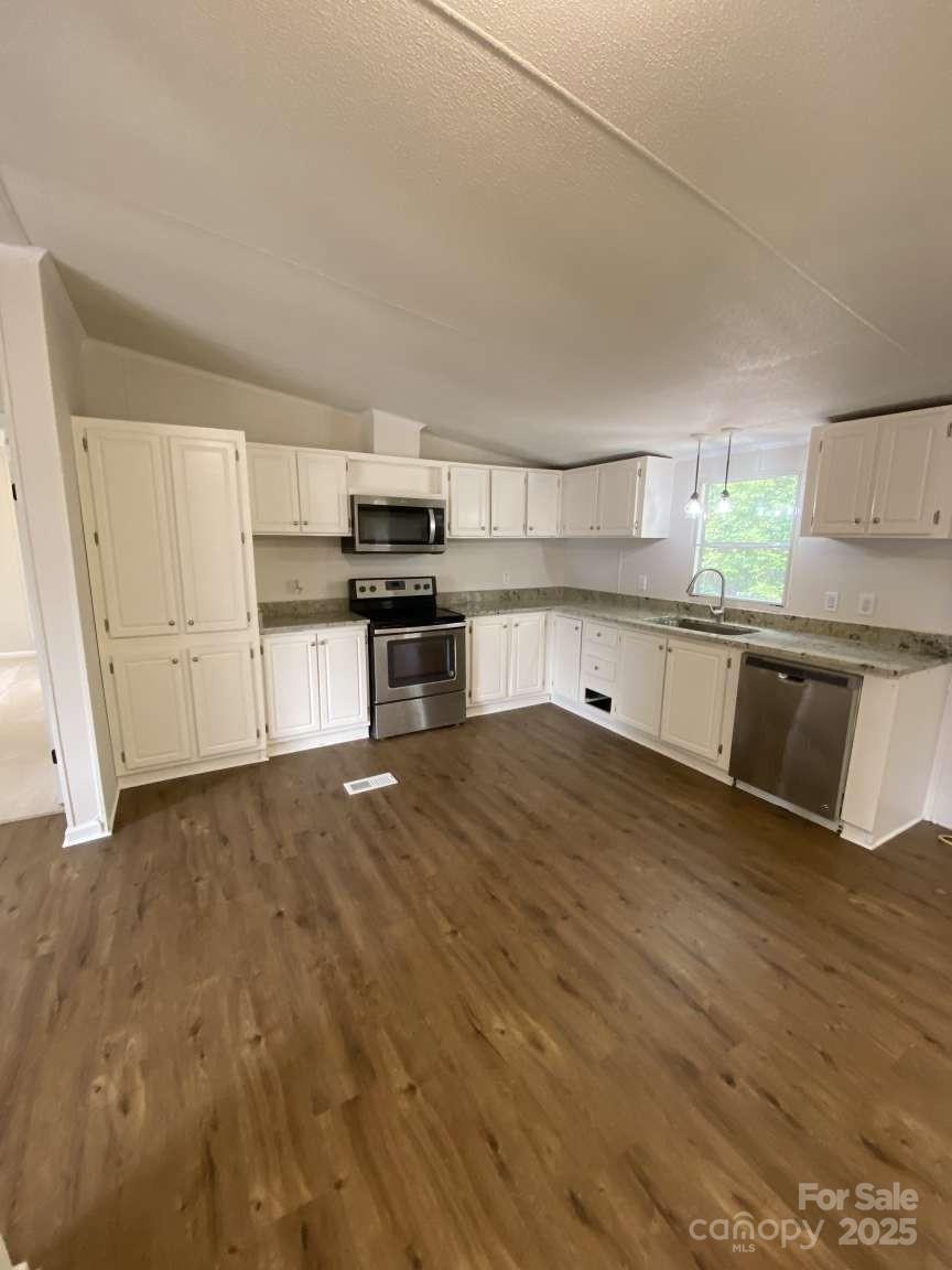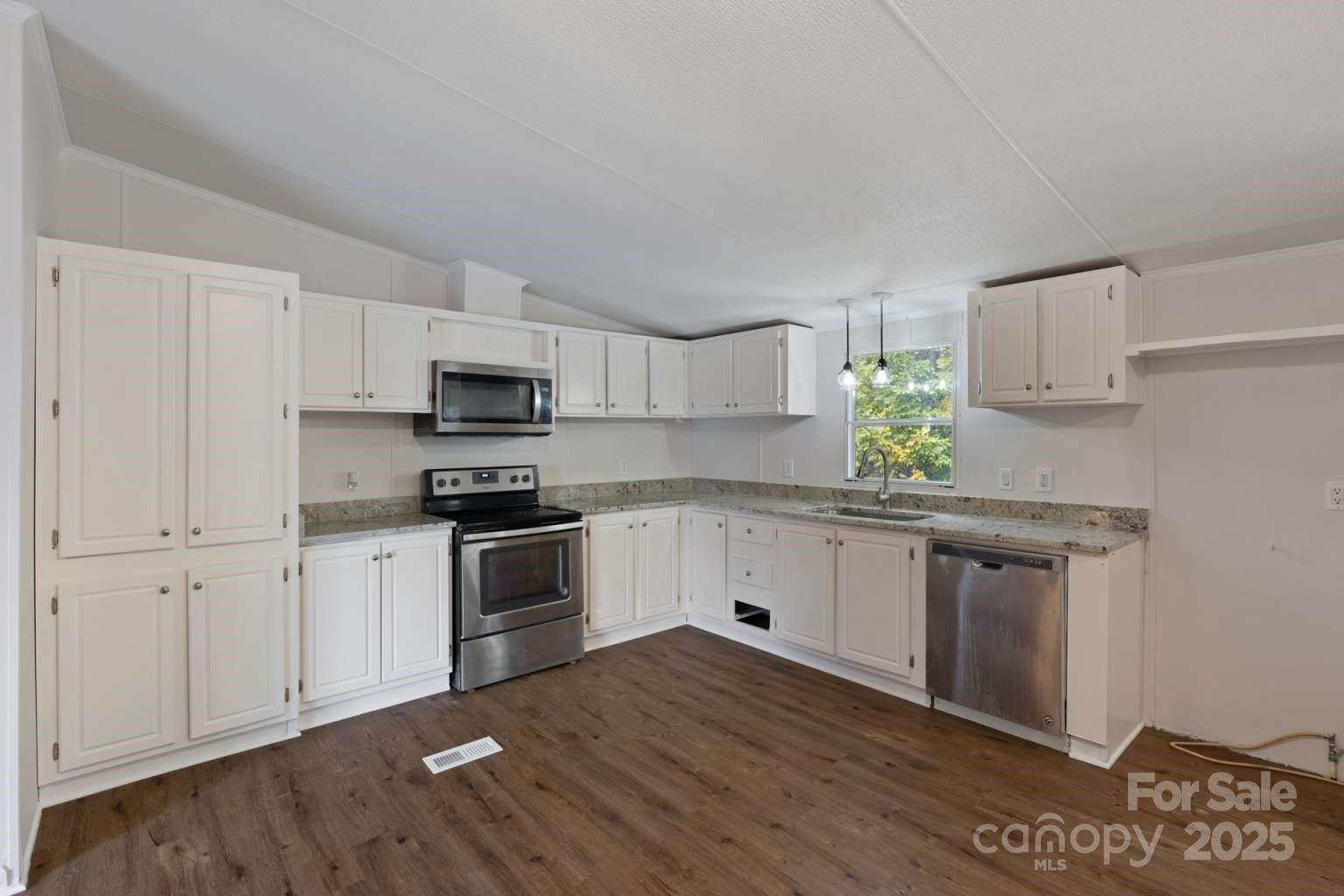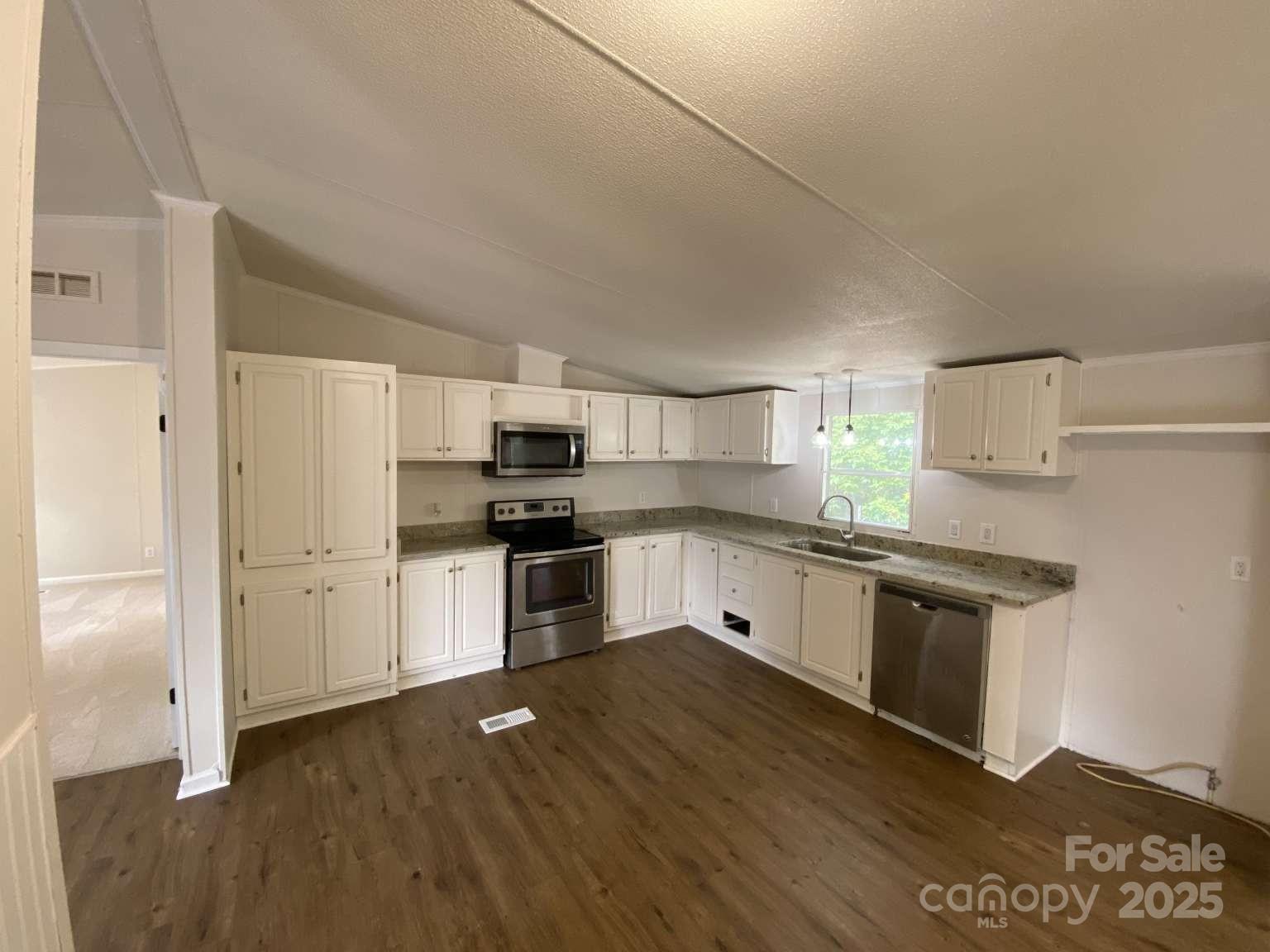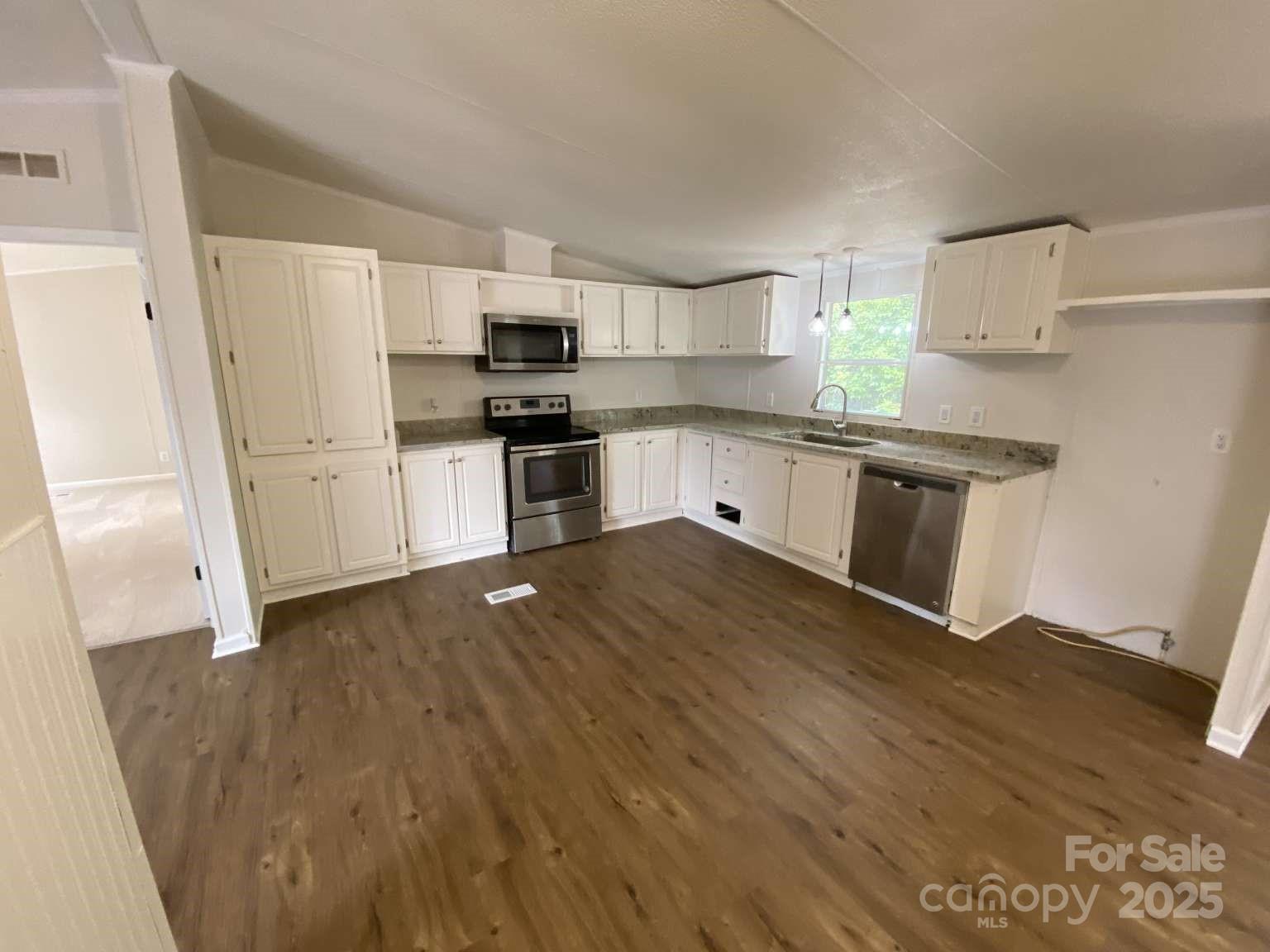 Welcome to 5107 Southbrook Dr, Kings Mountain, NC 28086 – a beautifully renovated manufactured home offering modern comfort and spacious living on a serene 1.38-acre wooded lot. This 2002-built gem spans 2,052 square feet with 4 bedrooms and 2 full baths, perfect for families or those seeking room to grow. Step inside to an open floor plan featuring fresh new paint throughout, brand-new flooring, and a completely updated kitchen boasting contemporary finishes, ample cabinetry, and open floor plan. The refreshed bathrooms provide a spa-like feel with modern fixtures and updates. Enjoy year-round comfort with a new HVAC system, ensuring efficient heating and cooling.The layout includes large bedrooms with walk-in closets, a generous living room, and a cozy den off the dining area. Additional highlights include a dedicated laundry, and wooded back yard. Conveniently located in Kings Mountain, just a short drive from Charlotte, this property won’t last long – schedule your showing today!