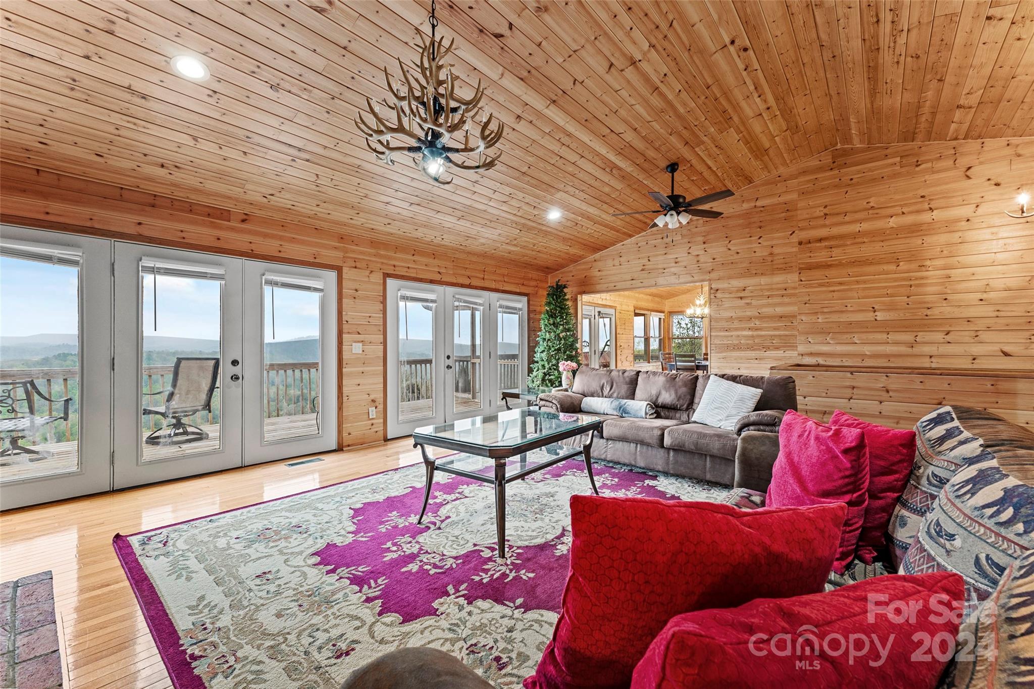 LONG RANGE MOUNTAIN VIEWS. Very well maintained home with sweeping entire valley views off the back triple decks. Inviting living space with vaulted ceiling in LR and Dining area, skylight, hardwood, tile flooring. Very comfortable bedrooms and baths to accommodate guests. 2 car garage on main level. Beautiful pine wood walls and ceiling. New generator installed. New furnace and AC/heat system was installed last year. Roof is only 5 years old! Lower level has family room and workshop. Awesome views from lower area as well.