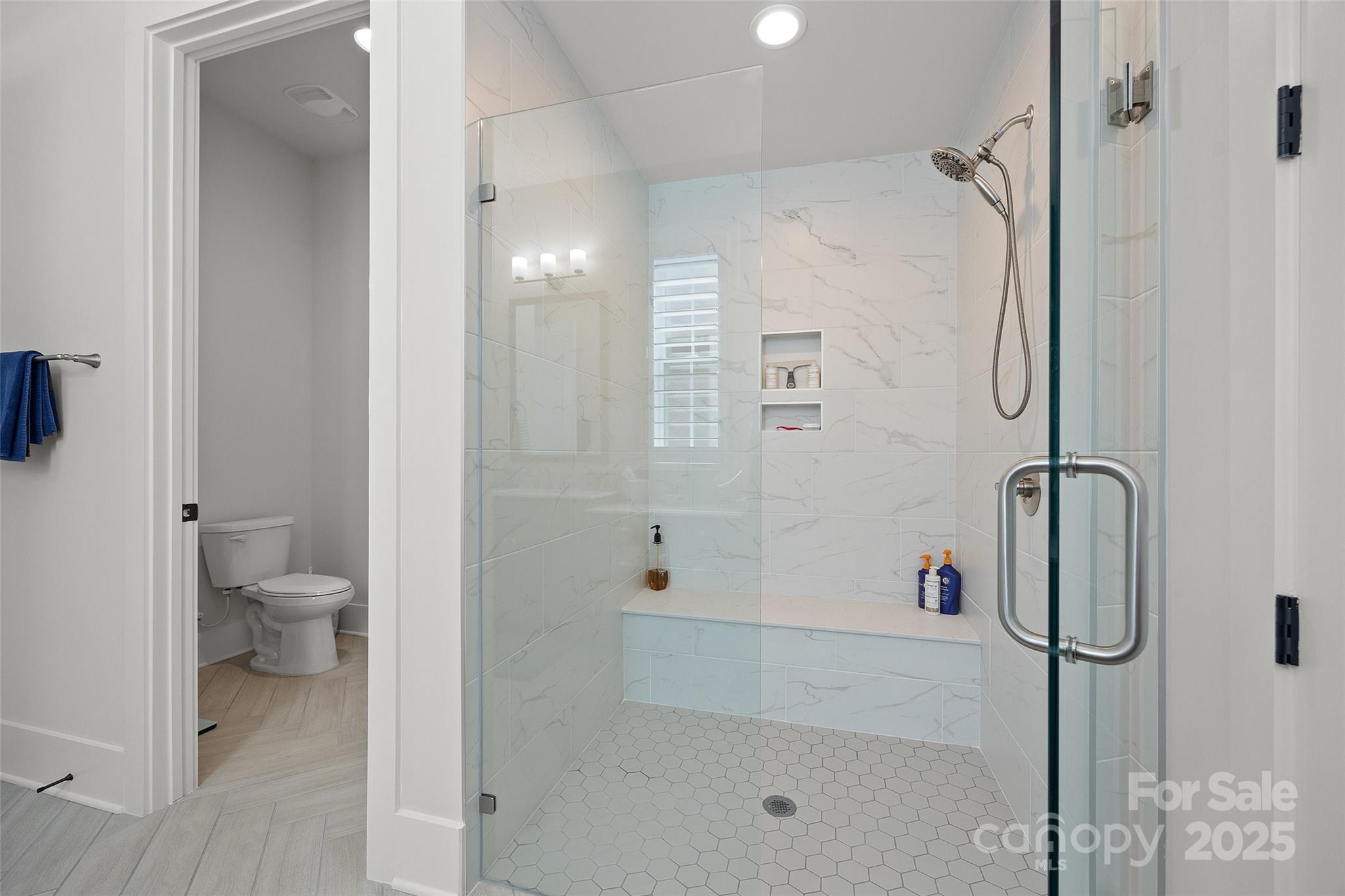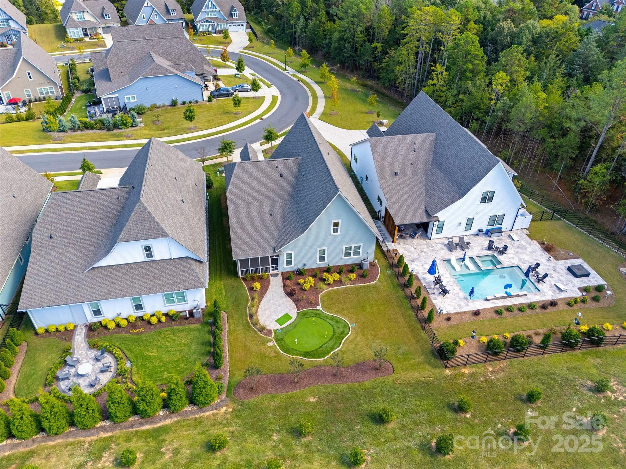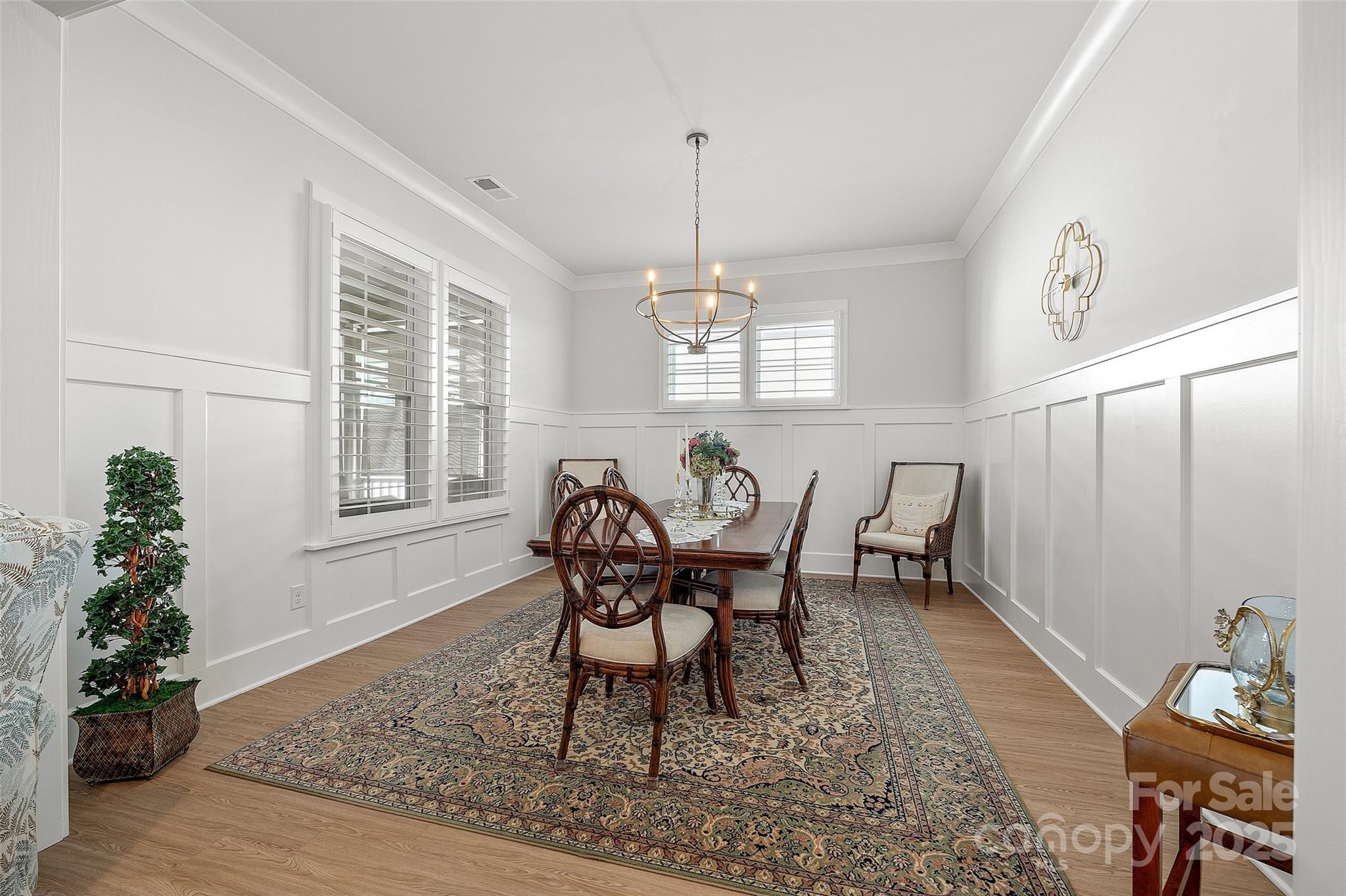 Experience refined living in this elegant, like-new 4-bedroom, 4.5-bath home, offering 3,101 sq. ft. of thoughtfully designed living space. Built with an eye for detail and upgraded features throughout, this residence blends modern sophistication with everyday comfort, creating the perfect retreat for discerning homeowners. From the moment you step inside, you’ll be greeted by soaring 10-foot ceilings on the main level, rich wood flooring that flows seamlessly through the downstairs living areas and bedrooms, and custom plantation shutters that add timeless charm. The living room centers around a vented gas log fireplace framed by built-in shelving on either side, while 7-inch crown molding runs throughout the downstairs—including the bedrooms—elevating every space with elegance. The dining room sets the stage for memorable gatherings, featuring 5-foot wainscoting and refined detailing. The oversized laundry room is both practical and stylish, complete with granite counters, a deep sink, cabinetry, and generous storage to keep everything organized. At the heart of the home, the chef’s kitchen impresses with quartz countertops, an extended herringbone backsplash carried all the way to the ceiling at the custom hood, and a stunning oversized farm sink. Upgraded cabinetry, stacked to the ceiling with crown molding, includes soft-close doors and hardwood drawers, pull-out trays, and full-depth shelving for optimal function. Added LED under-cabinet lighting creates a warm, inviting glow. The kitchen also boasts a walk-in pantry with MDF shelving, an upgraded microwave cabinet above the wall oven, and a large island with seating for four—perfect for casual meals or entertaining. The bathrooms have been equally upgraded with quartz countertops, elegant tile floors, and tile shower surrounds. The primary suite features a curb-less entry shower with a built-in bench, blending accessibility with spa-like design. The oversized garage is a dream, featuring a built-in workbench, abundant storage, and a durable poly-coated floor designed for both form and function. Step outside to your private oasis, where a professionally installed putting green awaits alongside upgraded landscaping and a full irrigation system in both the front and back yards. Relax or entertain on the covered screened porch, designed with a beautiful stone floor, pull-down shades, and a ceiling fan, offering a comfortable place to unwind year-round. Additional features include an inviting floor plan with four spacious bedrooms, each with its own bath for privacy, and a half bath for guests. The home’s craftsmanship, attention to detail, and upgrades throughout make it stand apart as a true luxury retreat. Located in a welcoming community that requires only one resident to be 55+ (but not necessarily the buyer), this home provides a wonderful opportunity to enjoy a low-maintenance lifestyle without sacrificing comfort or elegance. Blending timeless design with thoughtful upgrades and modern conveniences, this residence is more than a home—it’s a statement of style and sophistication.