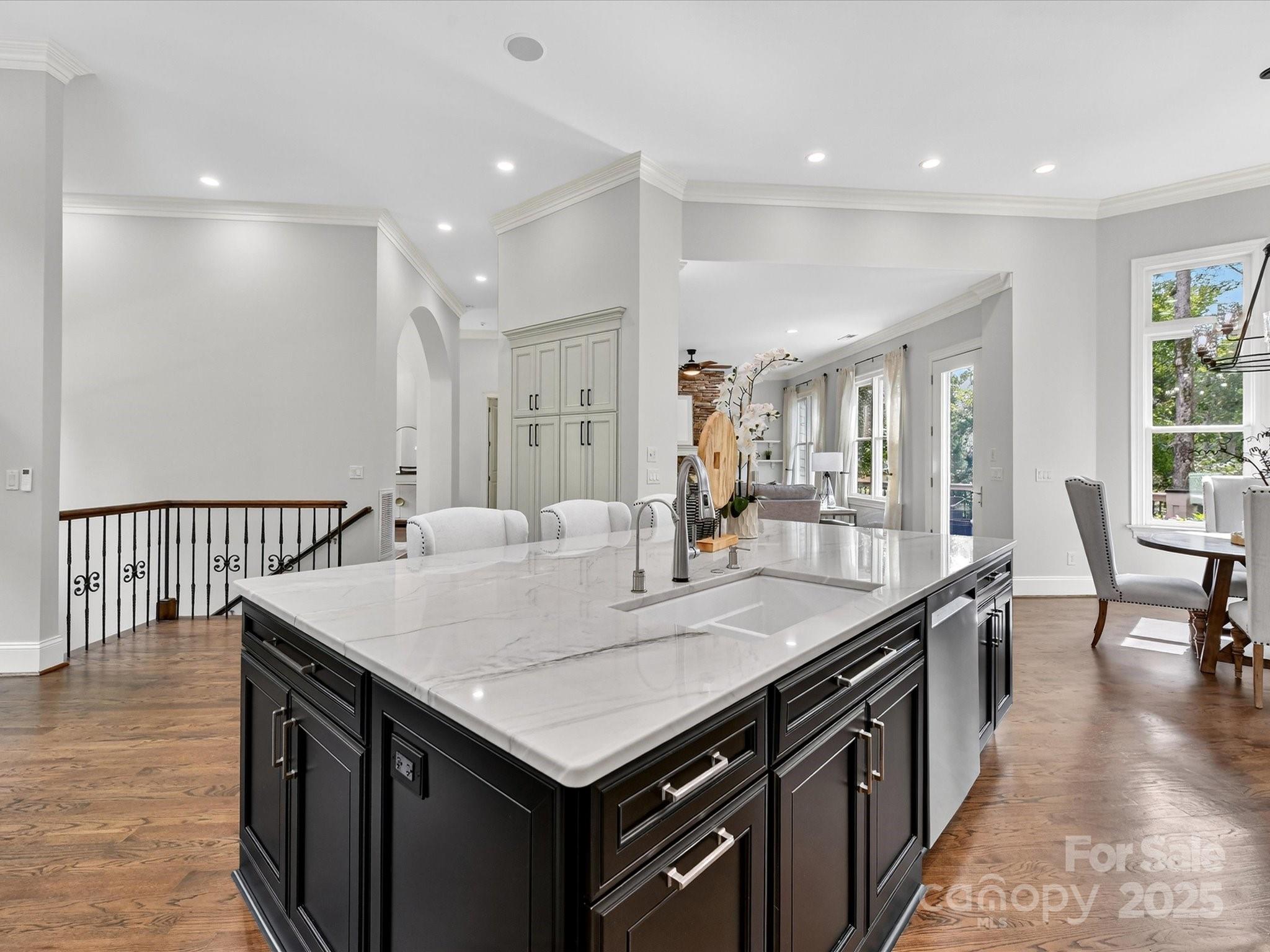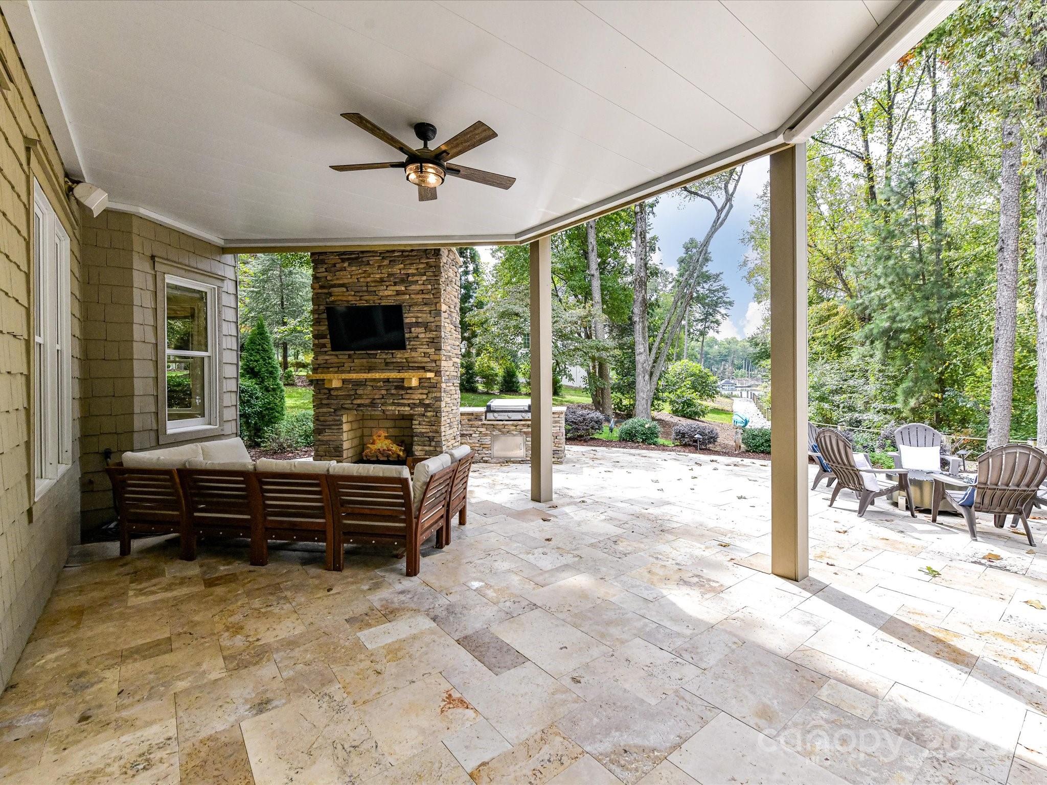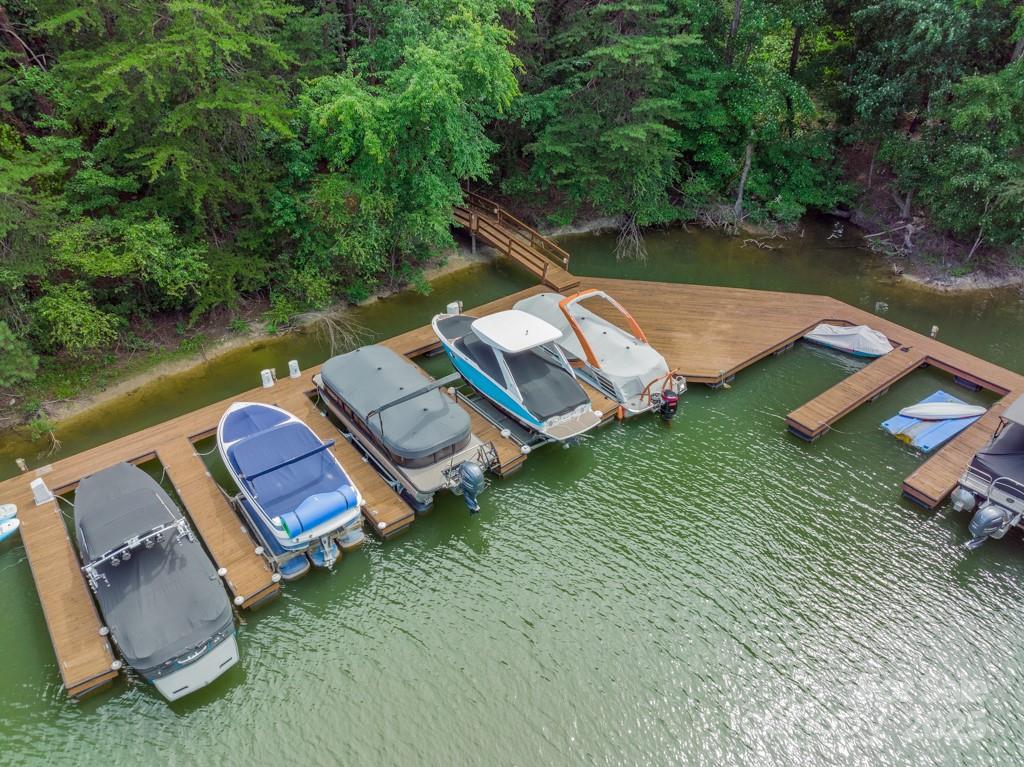 Welcome to 168 Brownstone Drive—an exquisite waterfront retreat in the heart of The Point, Mooresville’s premier lakefront community. Beautifully updated and meticulously maintained, this stunning ranch-style home with finished walk-out basement offers the ultimate blend of luxury, privacy, and access to the lake lifestyle—complete with a deeded boat slip just five doors down. Inside, you’ll find a reimagined gourmet kitchen with top-of-the-line appliances, custom cabinetry, quartzite countertops and expansive island perfect for entertaining. Freshly refinished hardwood floors, updated bathrooms, fresh paint, and designer finishes elevate every inch of the interior. The main level features an elegant primary suite with spa-like bath and generous walk-in closet, plus two additional bedrooms with en-suite access. The lower level is a true showstopper—ideal for multigenerational living or entertaining—with a sleek second kitchen/bar, high ceilings, a spacious rec room, private guest suite, two offices, and workshop space. It flows seamlessly out to a new travertine terrace with outdoor fireplace, built-in grilling station, and views of the peaceful cove. Enjoy evening strolls along your private boardwalk leading to the water, or imagine relaxing poolside with the included pool rendering offering a vision for your dream backyard oasis. Tucked on a lush, tree-lined lot, this home offers both serenity and proximity to The Point’s world-class amenities—golf, tennis, dining, and more (with separate TNG membership). Whether you’re seeking a full-time residence or lakefront retreat, this updated gem offers the space, style, and setting to live your best Lake Norman lifestyle.
