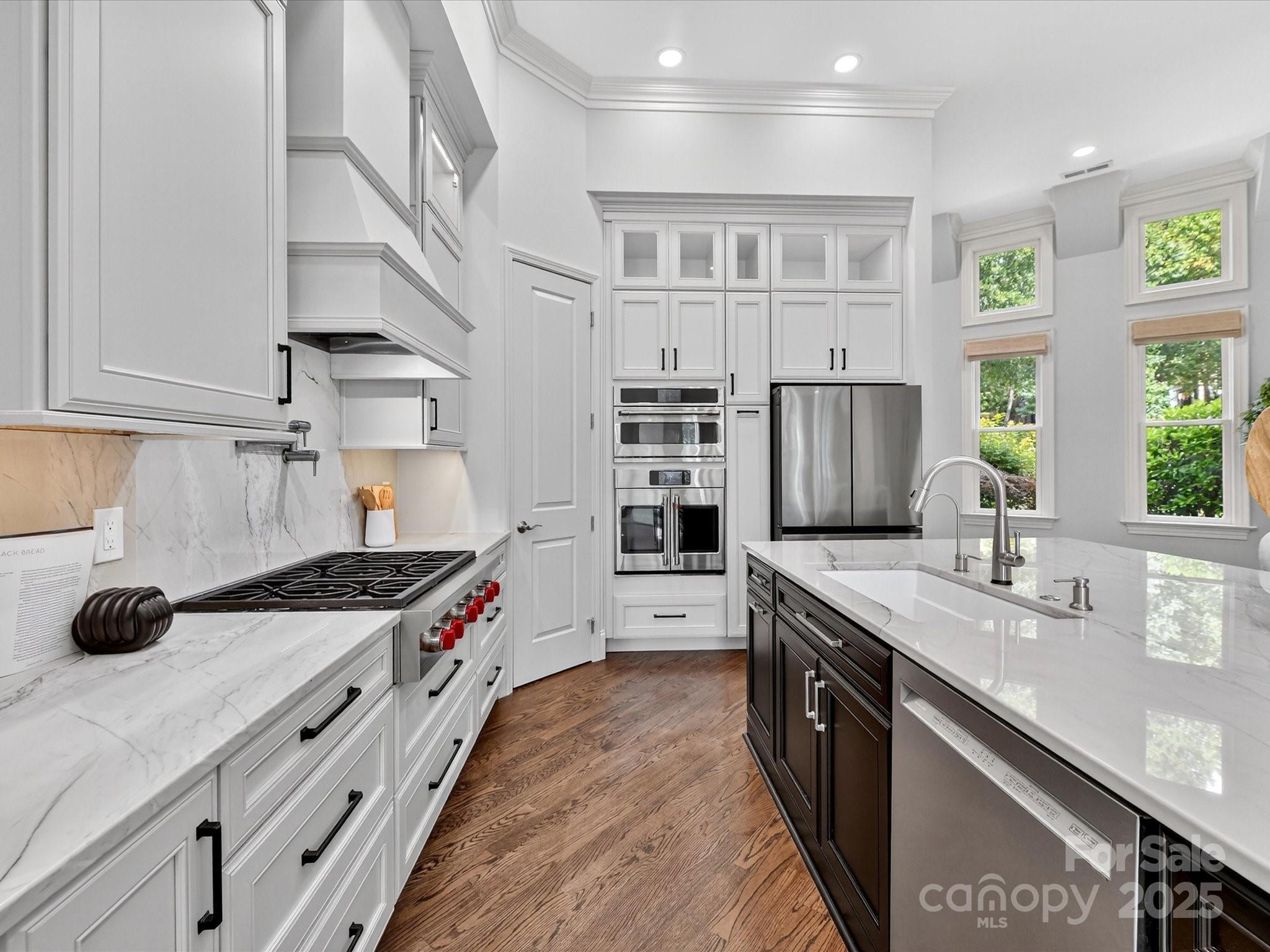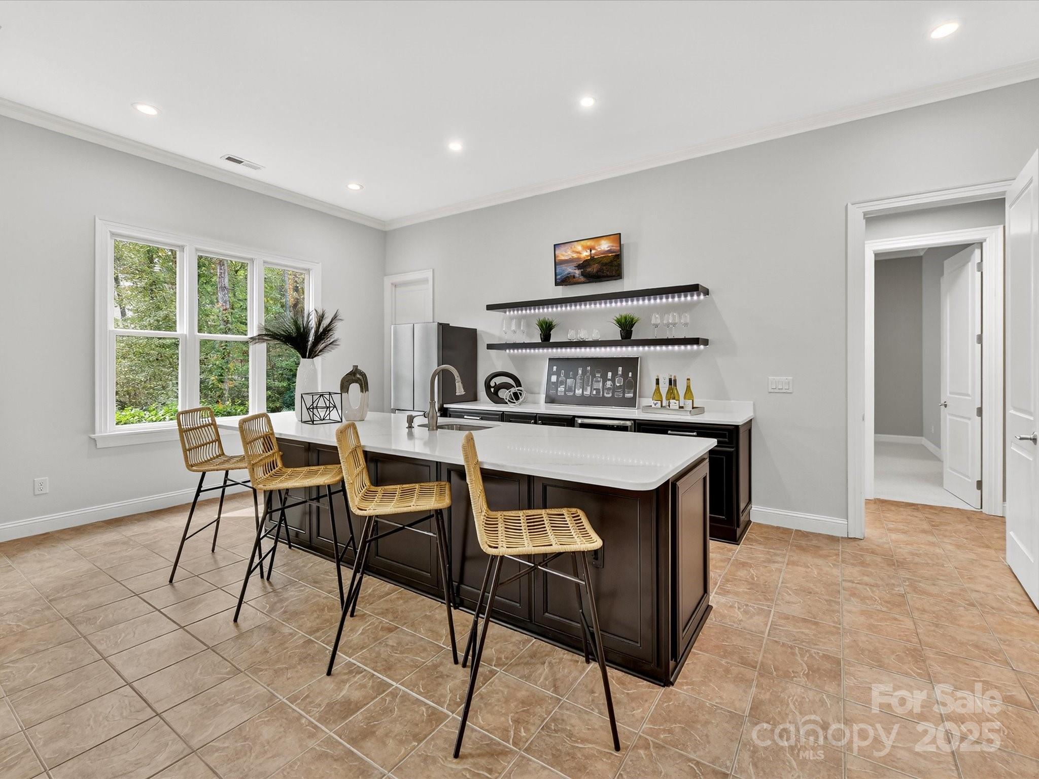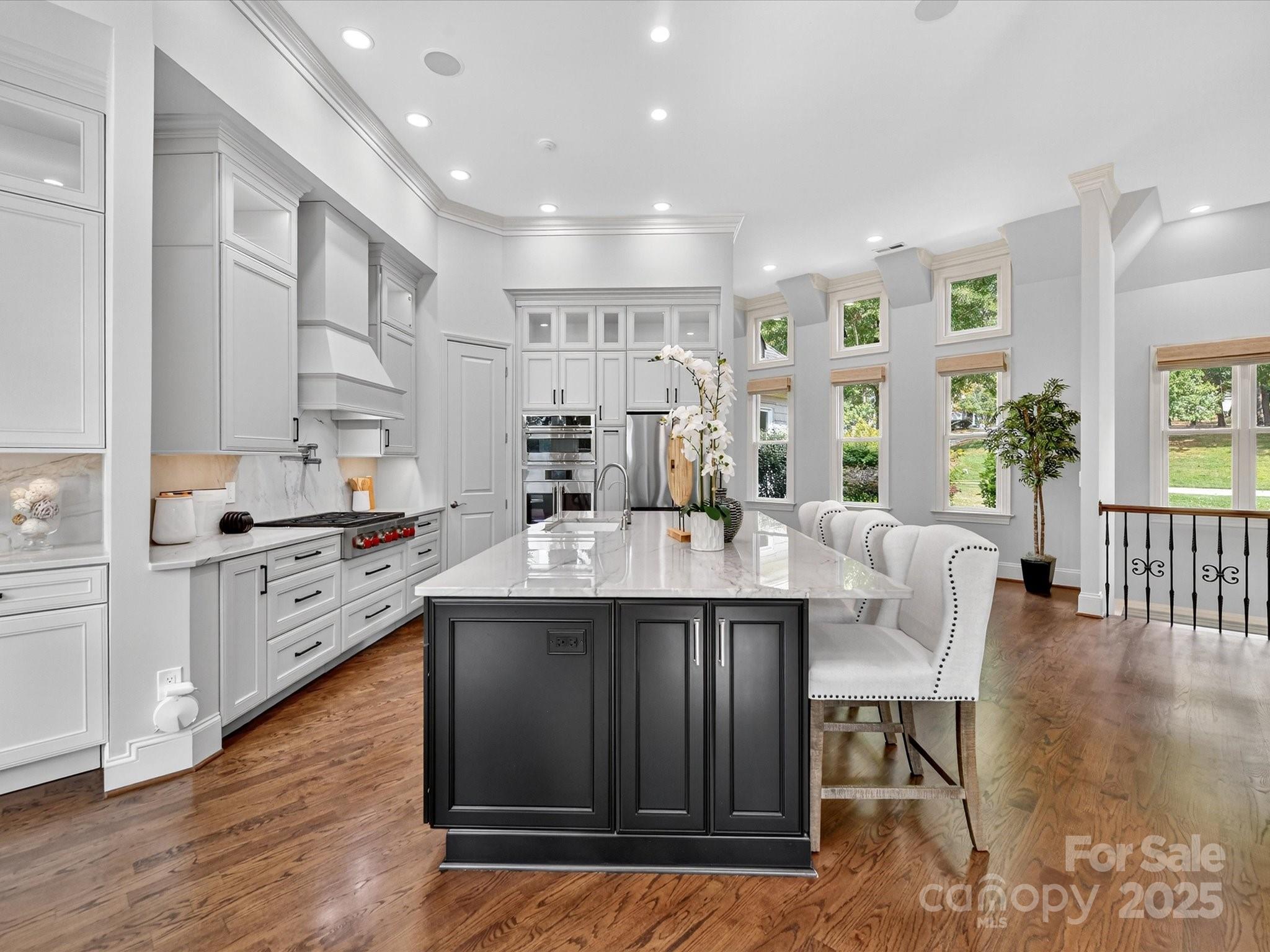 Welcome to 168 Brownstone Drive—an exquisite waterfront retreat in the heart of The Point, Mooresville’s premier lakefront community. Beautifully updated and meticulously maintained, this stunning ranch-style home with finished walk-out basement offers the ultimate blend of luxury, privacy, and access to the lake lifestyle—complete with a deeded boat slip just five doors down. Inside, you’ll find a reimagined gourmet kitchen with top-of-the-line appliances, custom cabinetry, quartzite countertops and expansive island perfect for entertaining. Freshly refinished hardwood floors, updated bathrooms, fresh paint, and designer finishes elevate every inch of the interior. The main level features an elegant primary suite with spa-like bath and generous walk-in closet, plus two additional bedrooms with en-suite access. The lower level is a true showstopper—ideal for multigenerational living or entertaining—with a sleek second kitchen/bar, high ceilings, a spacious rec room, private guest suite, two offices, and workshop space. It flows seamlessly out to a new travertine terrace with outdoor fireplace, built-in grilling station, and views of the peaceful cove. Enjoy evening strolls along your private boardwalk leading to the water, or imagine relaxing poolside with the included pool rendering offering a vision for your dream backyard oasis. Tucked on a lush, tree-lined lot, this home offers both serenity and proximity to The Point’s world-class amenities—golf, tennis, dining, and more (with separate TNG membership). Whether you’re seeking a full-time residence or lakefront retreat, this updated gem offers the space, style, and setting to live your best Lake Norman lifestyle.