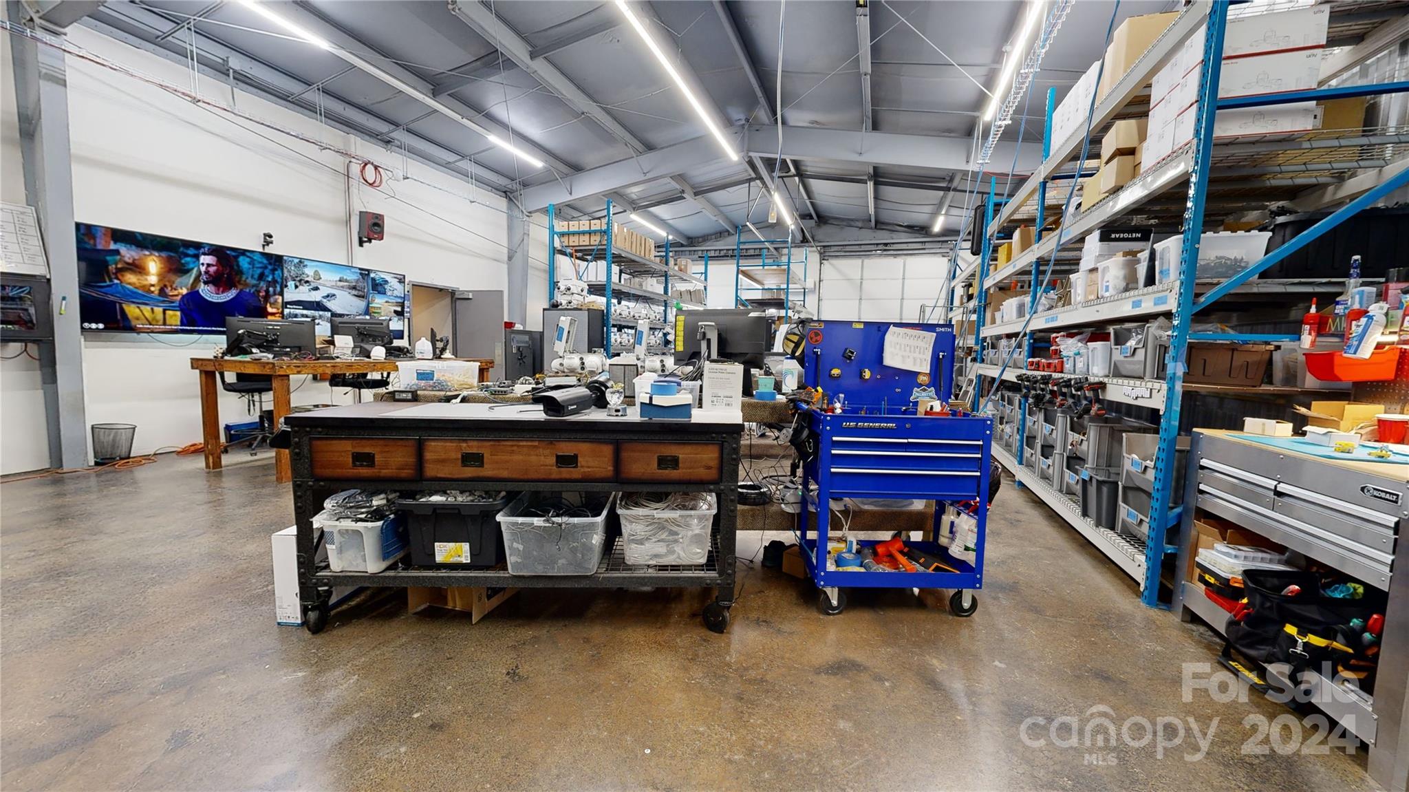 Great warehouse/Flex space minutes from downtown Asheville at the intersection of I-240, I-40, and Highway 74A. Currently being used for the manufacture of tech equipment. The building is on .64 acres with an additional 1.97 acres available for a total of $2,000,000. The site has city water and sewer. The interior is stylish and updated with a break room, 2 employee bathrooms, and an owner's bathroom with a shower. Heating includes heat pumps, mini splits, and lp ceiling heat. There are 2 14' rollup doors and 2 12' rollup doors. The entire building is insulated.