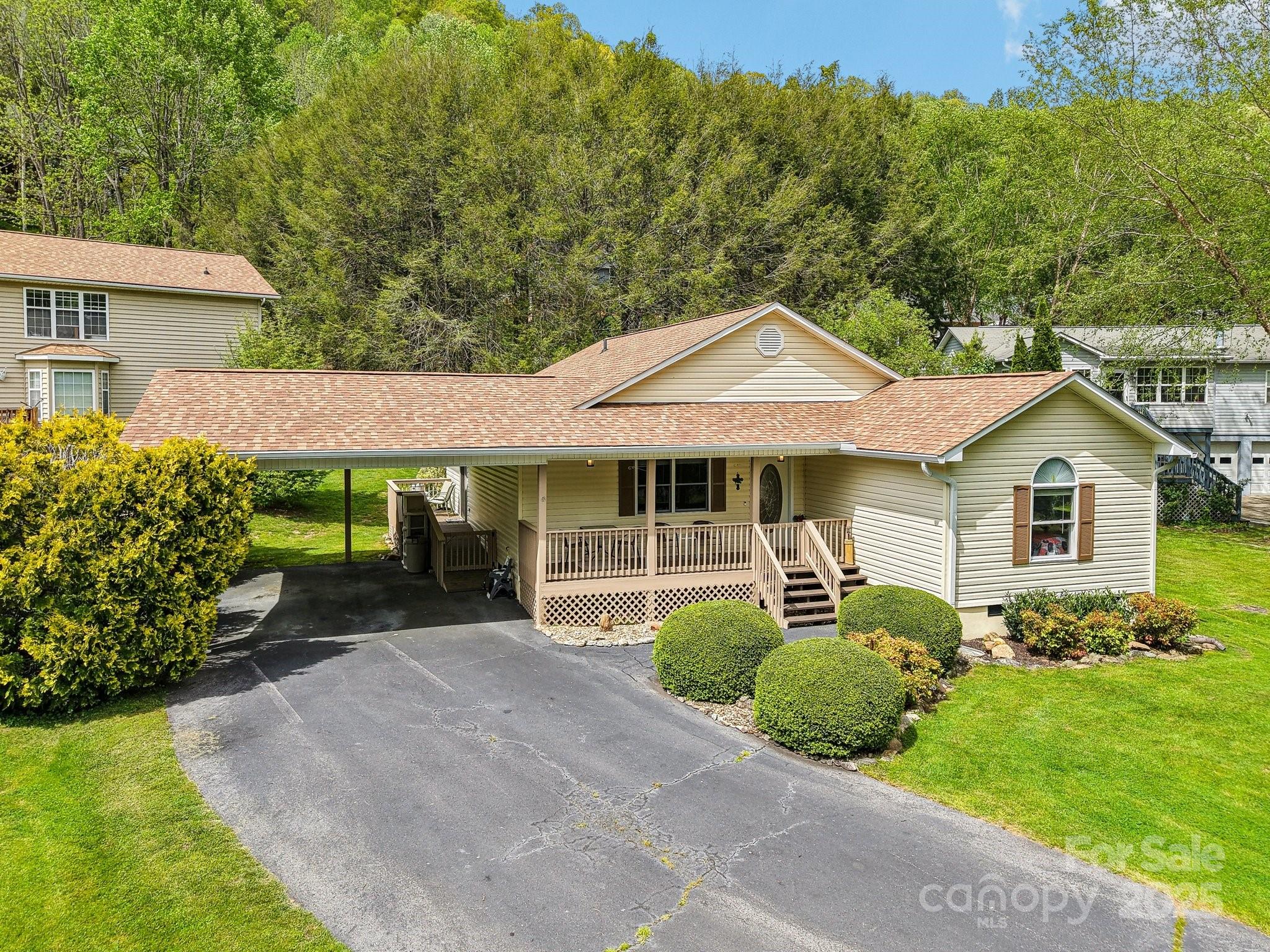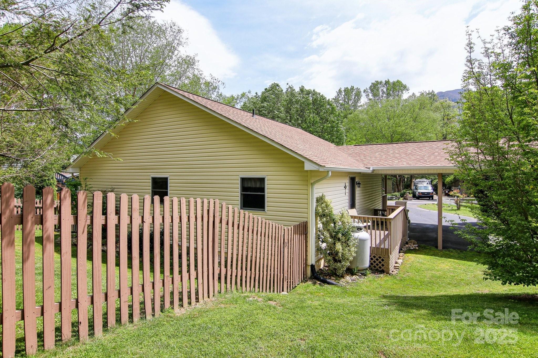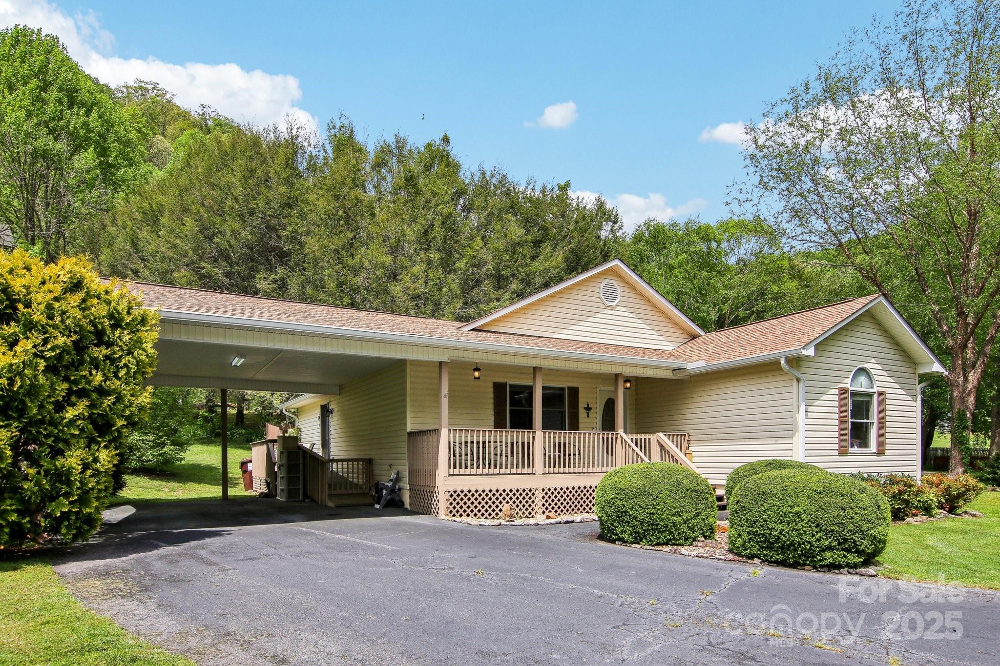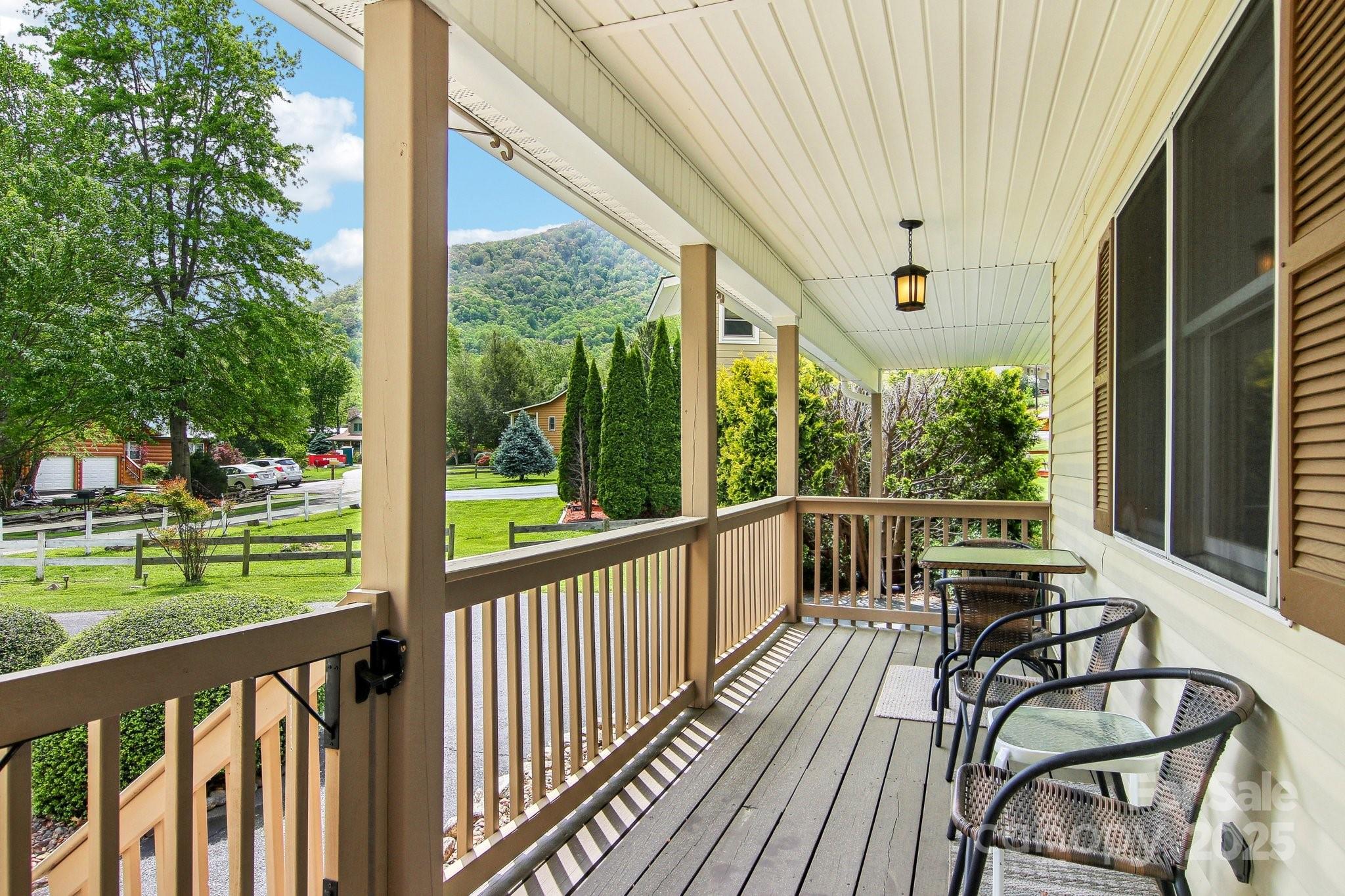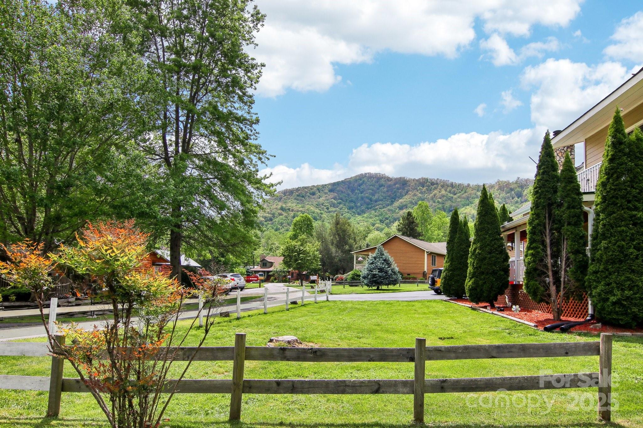 Charming 3BR/2BA one-level home just a short stroll to the heart of Maggie Valley! Enjoy easy, paved access & a level lot w/ city water/sewer. Fenced backyard is perfect for pets or play, covered front porch & an open side deck for relaxing outdoors. Inside, you'll find an open floor plan w/ wood floors, cozy gas fireplace, & a spacious kitchen featuring newer stainless steel appliances. The large primary suite offers generous closet space & a private bath. The laundry is next to the primary bedroom. The home has been very well maintained, & recent updates include new roof, water heater (2023) & new heat pump (25). Easy-maintenance siding & an attached carport complete this low-maintenance, move-in-ready home. Located in the Valley Creek Run subdivision, there are sounds of rushing Jonathan Creek & views of the surrounding mountains. Close enough to walk to restaurants or a short drive to the Blue Ridge Parkway. A side ramp offers easy accessibility as needed. Agent related to seller.