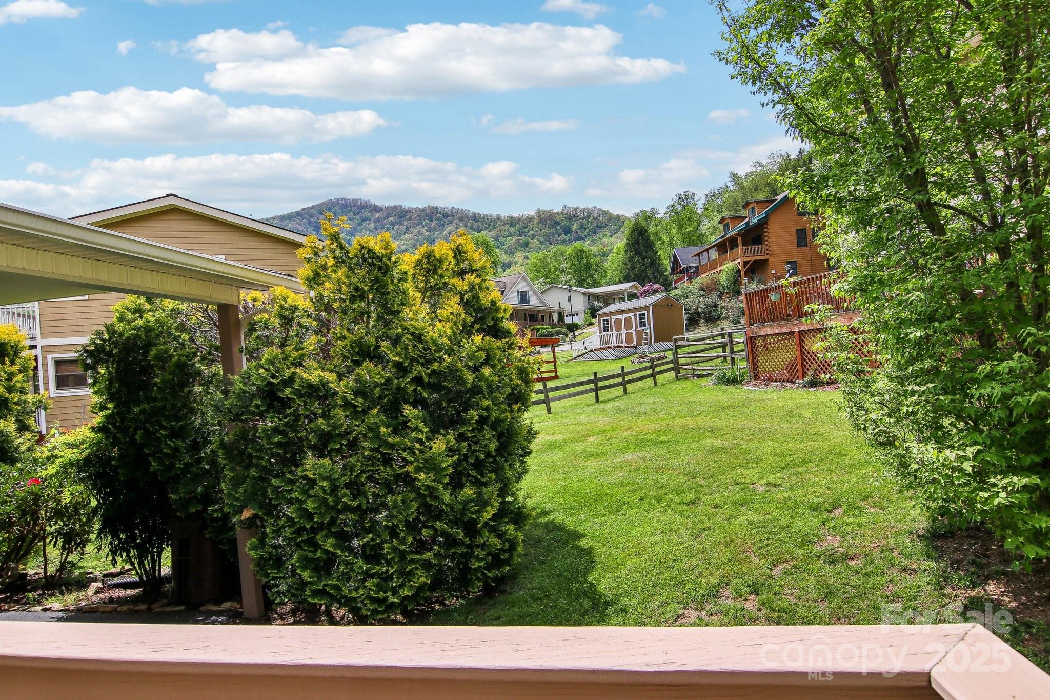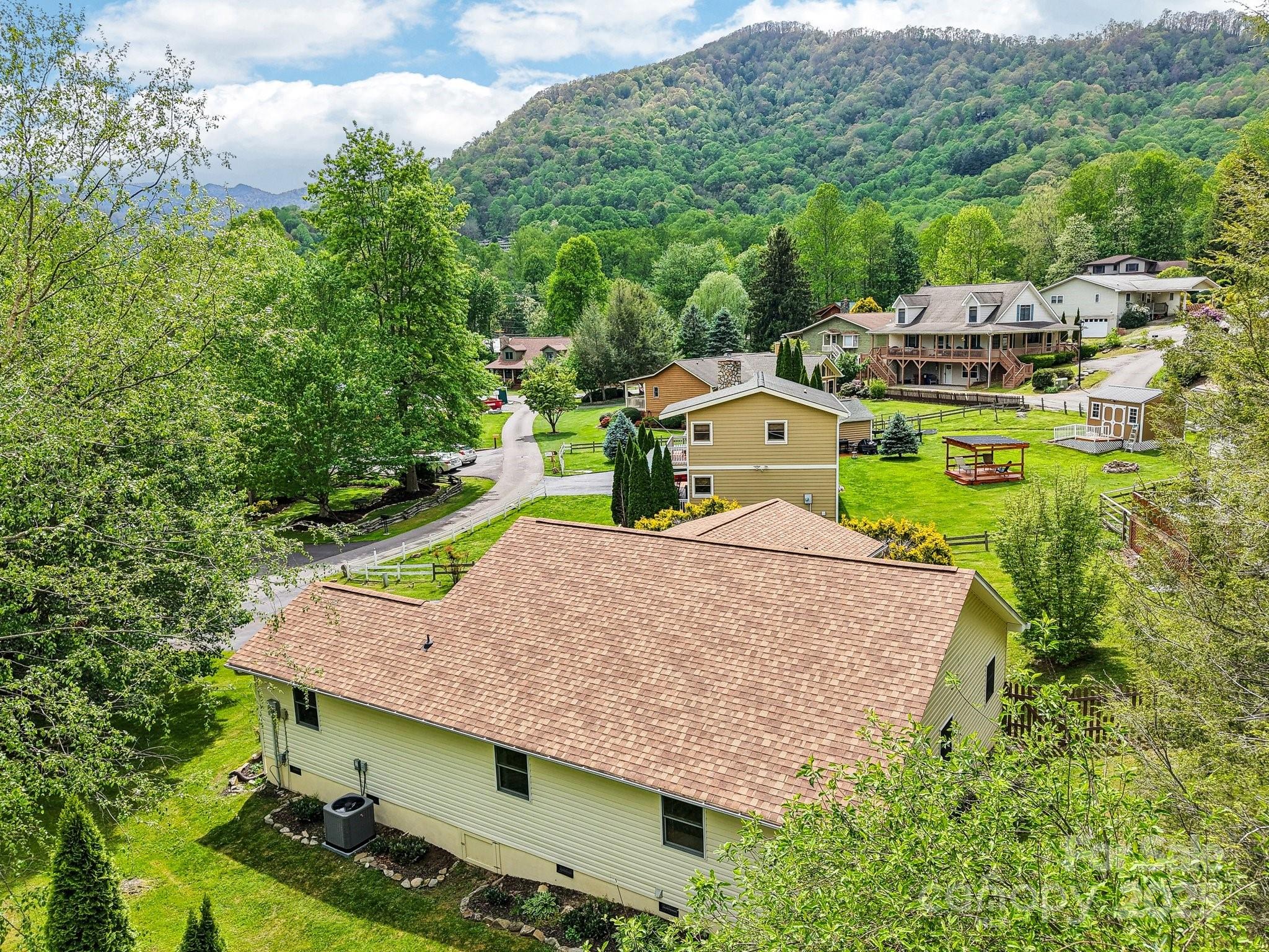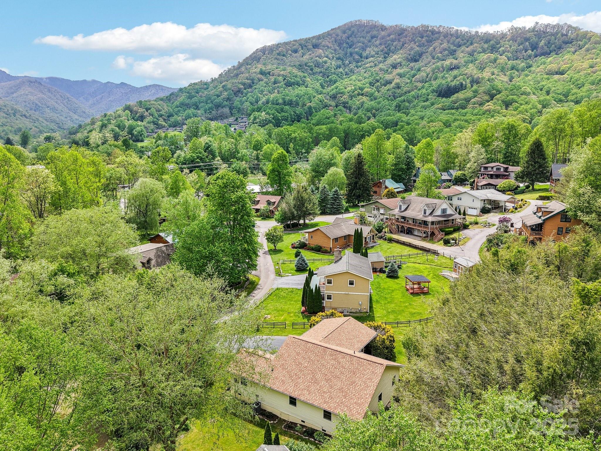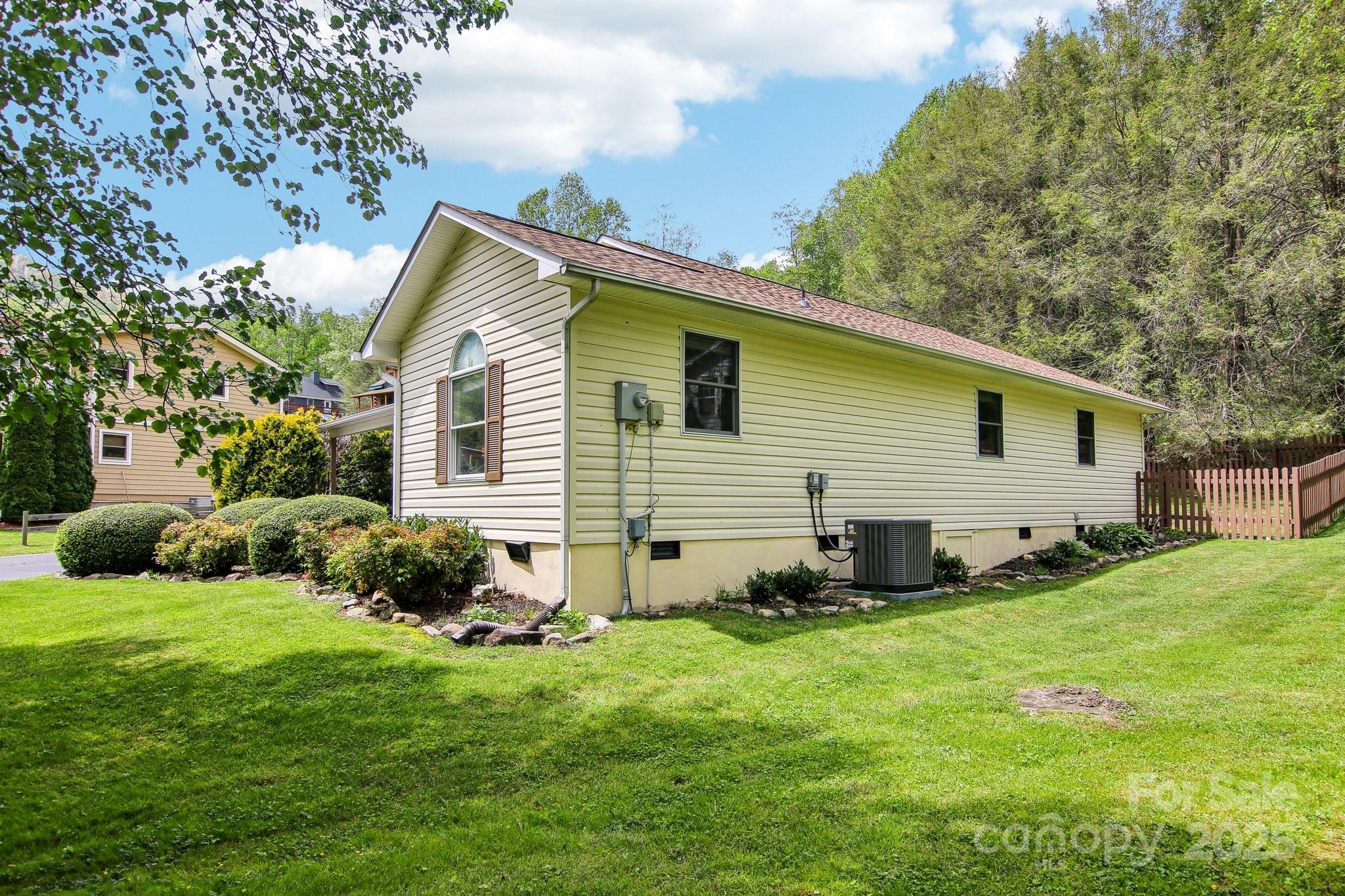 Charming 3BR/2BA one-level home just a short stroll to the heart of Maggie Valley! Enjoy easy, paved access & a level lot w/ city water/sewer. Fenced backyard is perfect for pets or play, covered front porch & an open side deck for relaxing outdoors. Inside, you'll find an open floor plan w/ wood floors, cozy gas fireplace, & a spacious kitchen featuring newer stainless steel appliances. The large primary suite offers generous closet space & a private bath. The laundry is next to the primary bedroom. The home has been very well maintained, & recent updates include new roof, water heater (2023) & new heat pump (25). Easy-maintenance siding & an attached carport complete this low-maintenance, move-in-ready home. Located in the Valley Creek Run subdivision, there are sounds of rushing Jonathan Creek & views of the surrounding mountains. Close enough to walk to restaurants or a short drive to the Blue Ridge Parkway. A side ramp offers easy accessibility as needed. Agent related to seller.