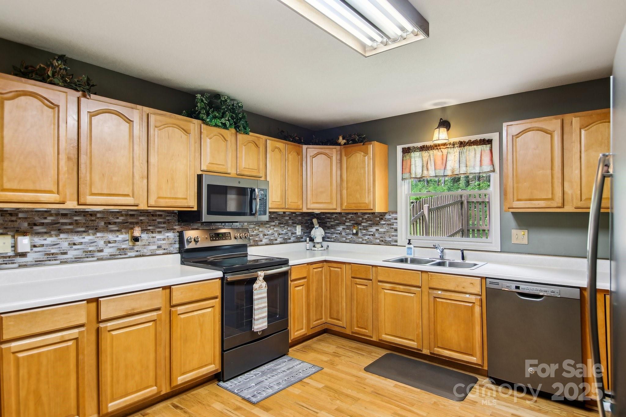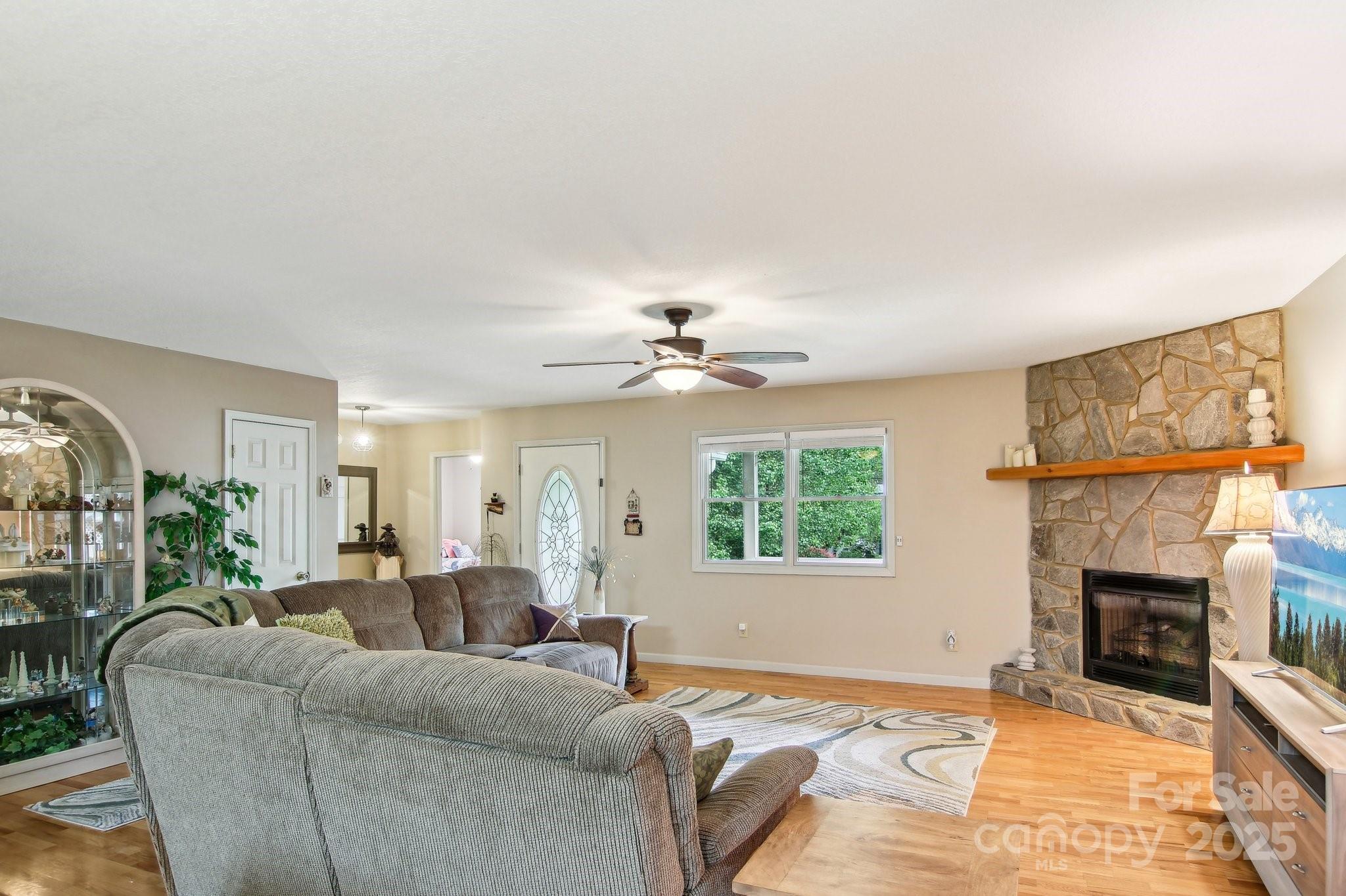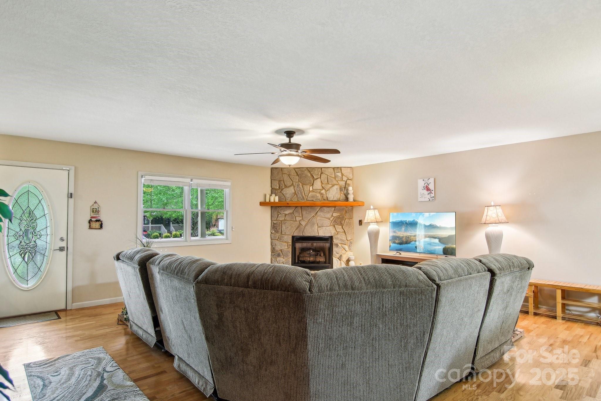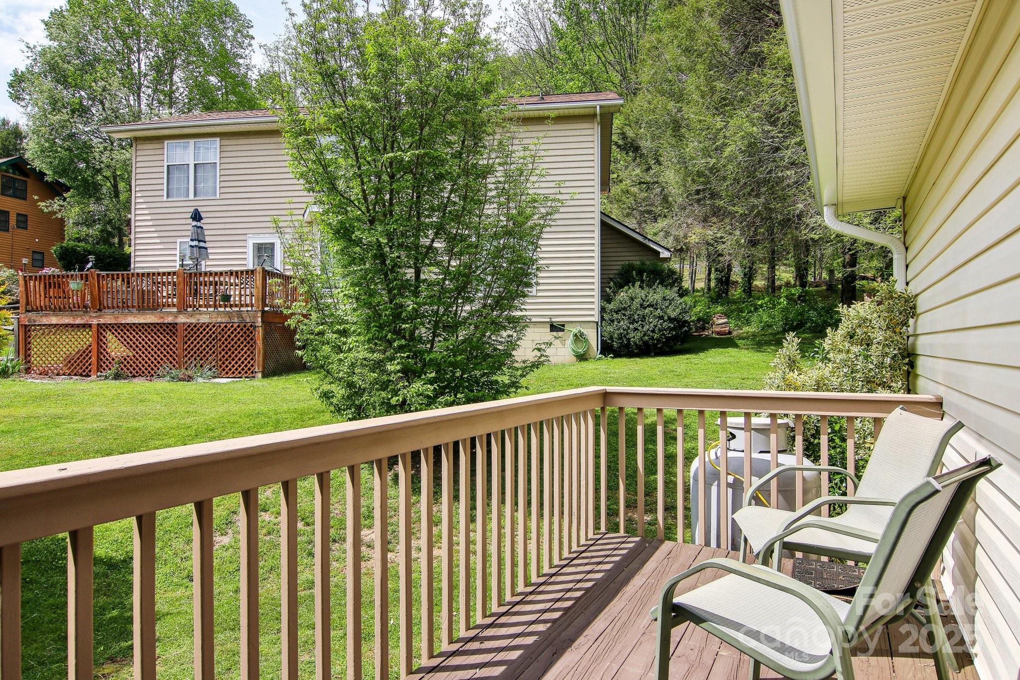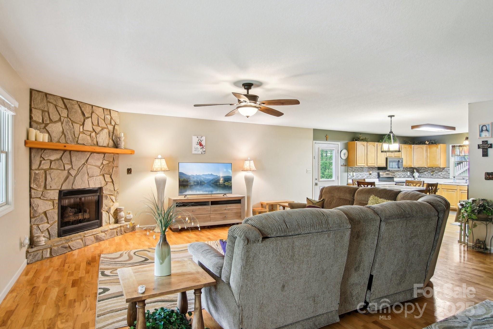Charming 3BR/2BA one-level home just a short stroll to the heart of Maggie Valley! Enjoy easy, paved access & a level lot w/ city water/sewer. Fenced backyard is perfect for pets or play, covered front porch & an open side deck for relaxing outdoors. Inside, you'll find an open floor plan w/ wood floors, cozy gas fireplace, & a spacious kitchen featuring newer stainless steel appliances. The large primary suite offers generous closet space & a private bath. The laundry is next to the primary bedroom. The home has been very well maintained, & recent updates include new roof, water heater (2023) & new heat pump (25). Easy-maintenance siding & an attached carport complete this low-maintenance, move-in-ready home. Located in the Valley Creek Run subdivision, there are sounds of rushing Jonathan Creek & views of the surrounding mountains. Close enough to walk to restaurants or a short drive to the Blue Ridge Parkway. A side ramp offers easy accessibility as needed. Agent related to seller.