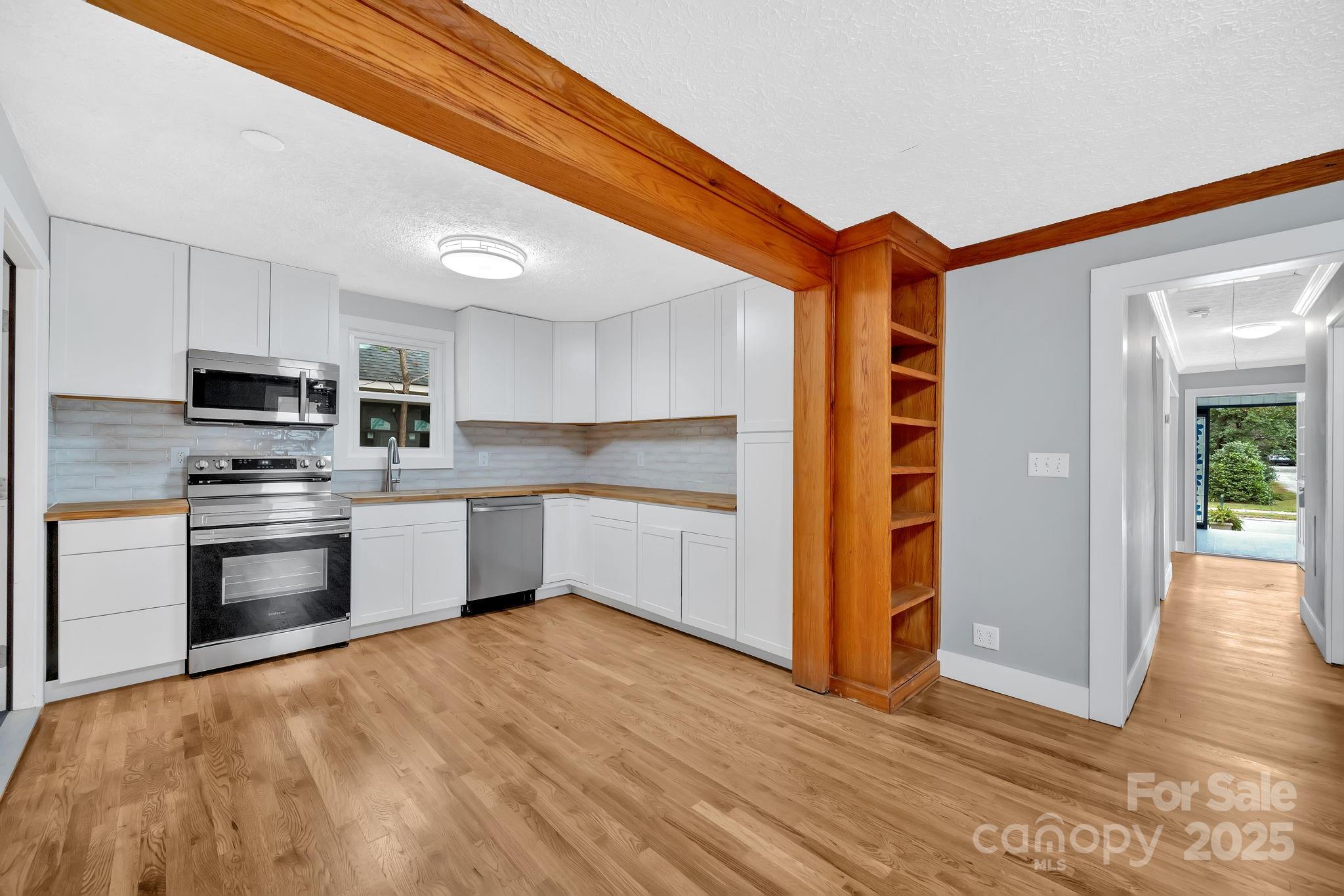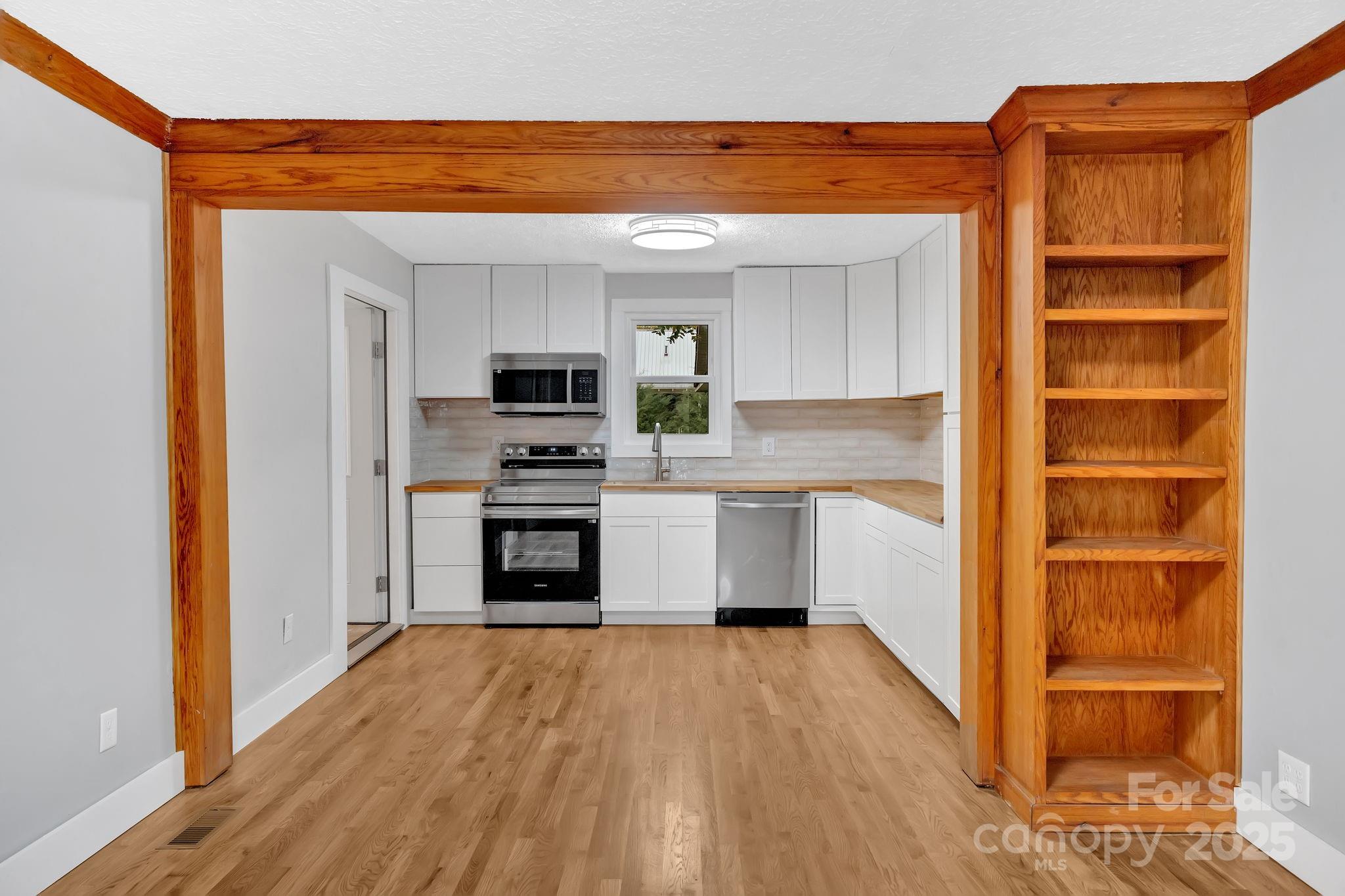 Professionally remodeled and almost everything new! Step into Brevard’s early days—beautifully reimagined for today. This 1910s bungalow at 95 Whitmire Street sits on one of the town’s most historic corridors, laid out in 1894 by the Whitmire family as Brevard grew alongside its new railroad depot. What was once a street of mill workers and merchants now offers walkable access to downtown cafés, the College, and The Lumberyard—still humming with small-town charm. Inside, you’ll find 1,133 square feet of thoughtfully restored living space, where modern systems meet timeless character. Perfect for your primary home, your short-term rental (STR), or even office space! The interior exudes warmth and craftsmanship, from the antique red oak moulding by Tom Kline, a millwork artisan known for projects like Steve Martin’s Brevard home and the HGTV Dream Home, to the cozy gas log fireplace in the living room. Light filters through updated windows onto refinished floors, a refreshed kitchen, and a clean, airy layout that makes this bungalow feel larger than its footprint. Brand-new appliances as well! The foundation and structural supports were professionally repaired by Carolina Foundation Solutions, with new subfloors, sistered joists, and a vapor barrier installed for peace of mind. Major updates—roof, windows, electrical, insulation, and HVAC ductwork—were completed around six years ago. Outside, every detail tells a story. The landscaping stones were hand-collected by the seller decades ago when an old post office (now an urgent care site) was torn down—each rock a piece of Brevard history. When regrading the driveway, the original century-old gravel base was uncovered and reused beneath the new decorative stone. Mature fruit trees—a cherry, fig and apple—still flourish out back, alongside new fencing posts ready to complete the private backyard vision.