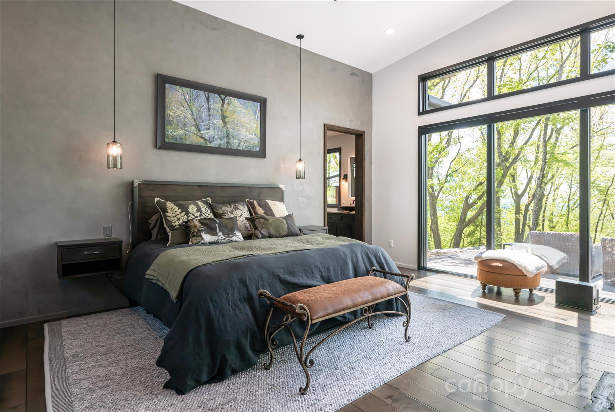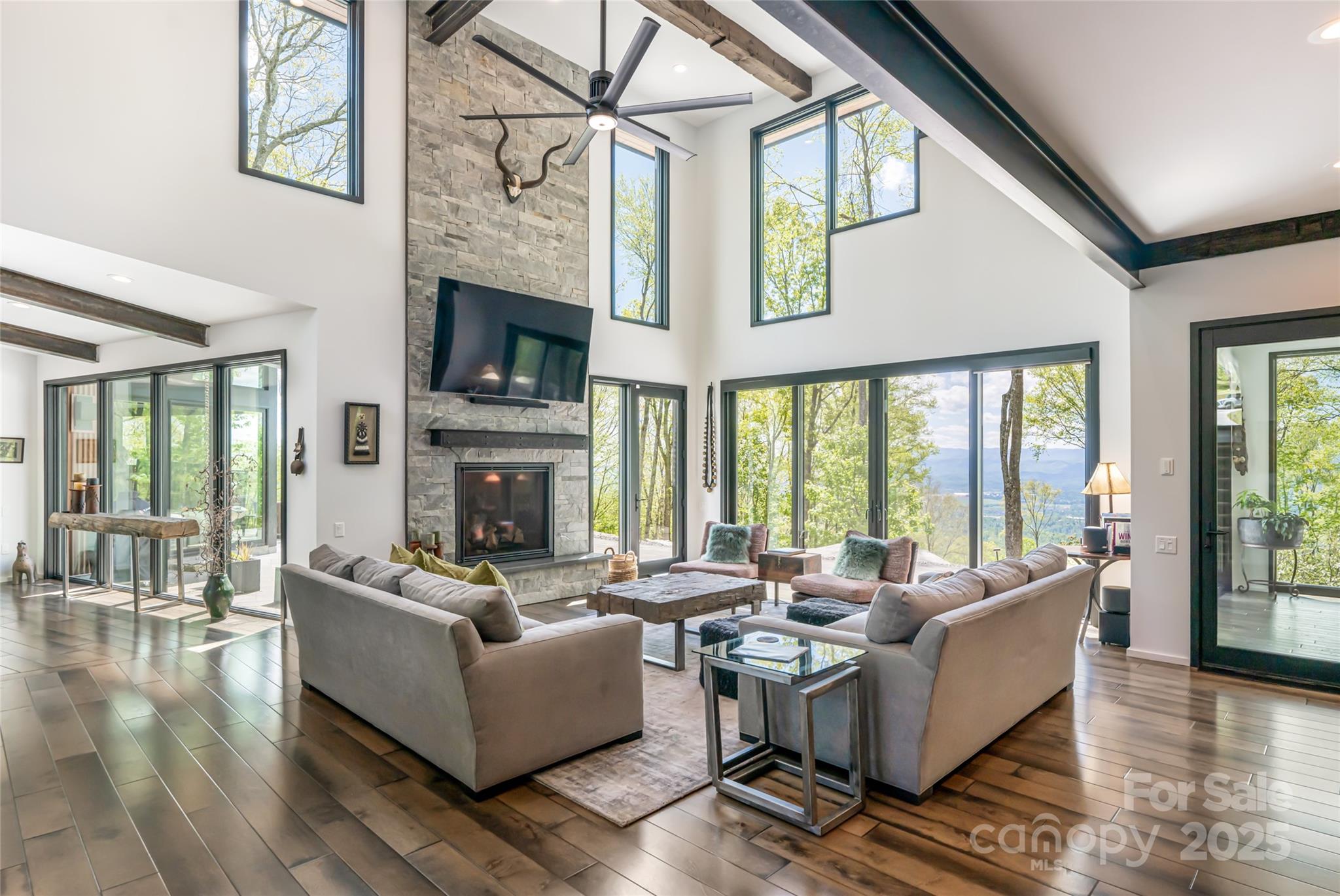 Embrace refined mountain living in this breathtaking contemporary estate where tranquility meets sophistication. Inside, vaulted ceilings soar, showcasing exquisite 125-year-old reclaimed barnwood beams, while expansive windows frame the majestic mountain landscape. The gourmet kitchen is a culinary masterpiece, featuring premium stainless steel Thermador appliances, Italian Quartzite countertops, and bespoke rustic alder cabinetry. The serene primary suite on the main level is a private oasis, with an oversized shower and a custom walk-in closet. Upstairs, two ensuite bedrooms showcase artisanal tile and thoughtful design. Outside, both lots are rare top-of-the-mountain flat lots with gentle topography. Nature and luxury intertwine amid extensive landscaping, natural rock stairs, trails, and commanding boulders. Discover vibrant flower gardens, a fenced vegetable garden with raised beds and berry bushes—an eco-conscious, masterfully crafted retreat where elegance and nature coexist.